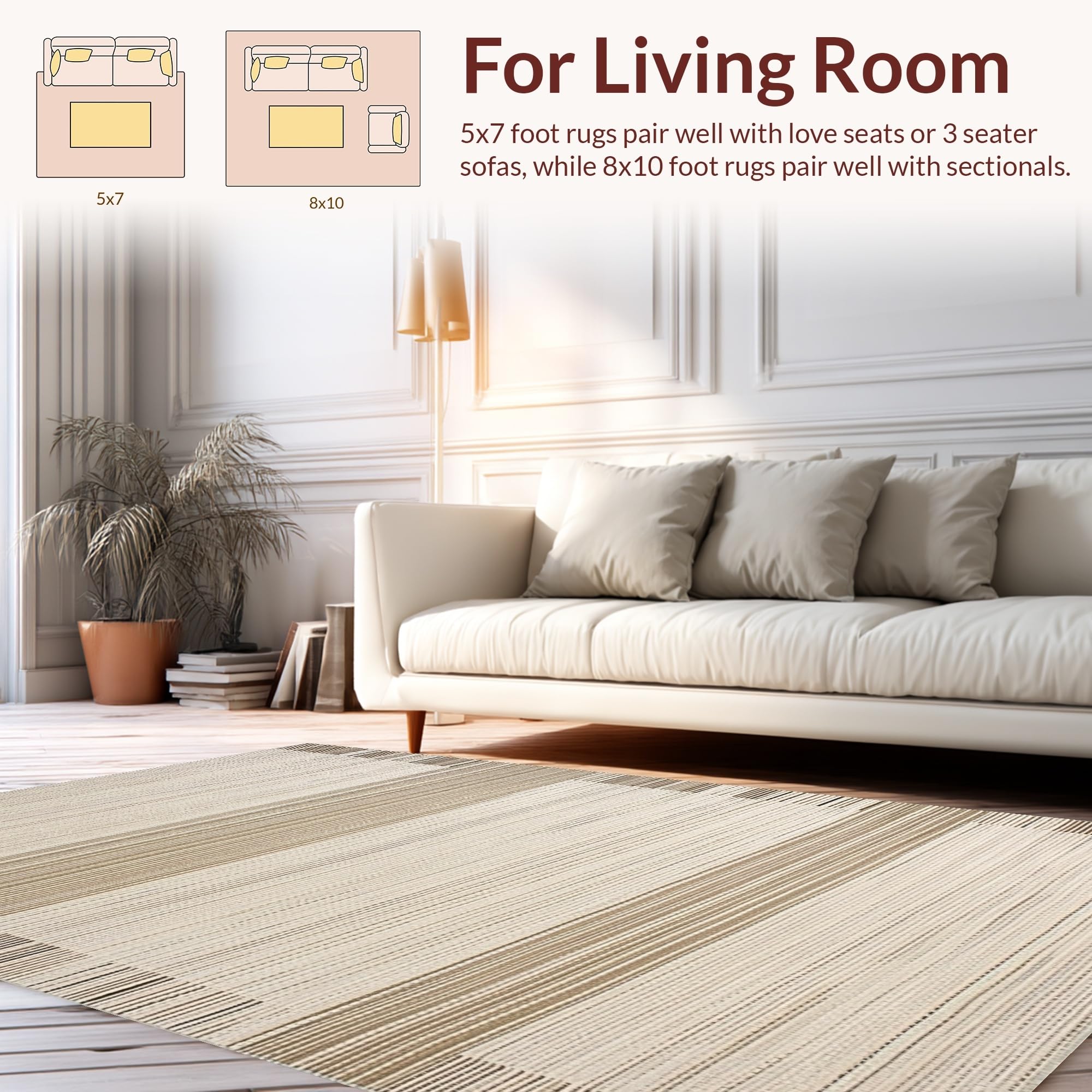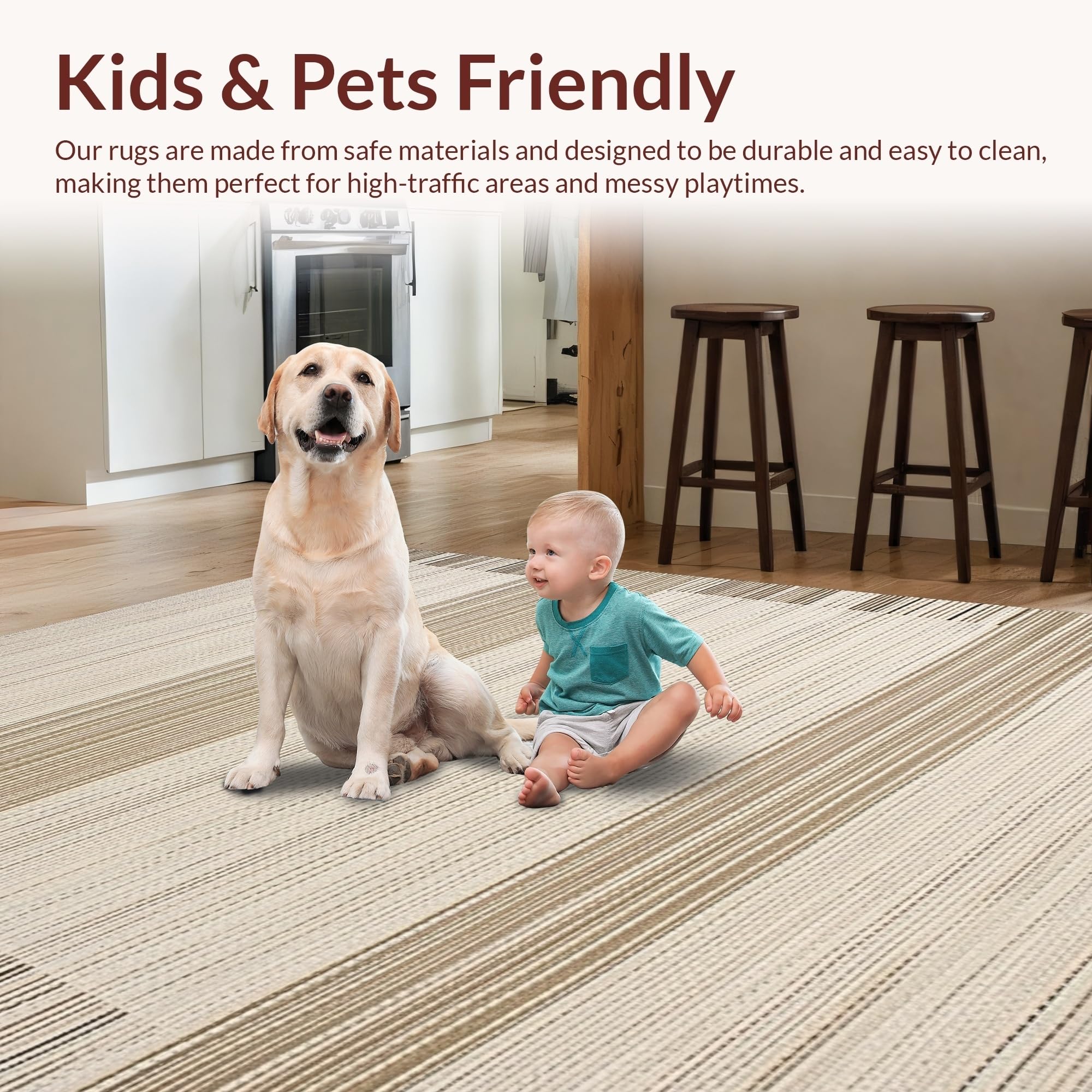 Ultra Soft Area Rug, Non Slip, Stain Resistant, Washable Area Rugs for Living Room, Bedroom, Inviting Earthy Layered Composition(Beige) Overview: