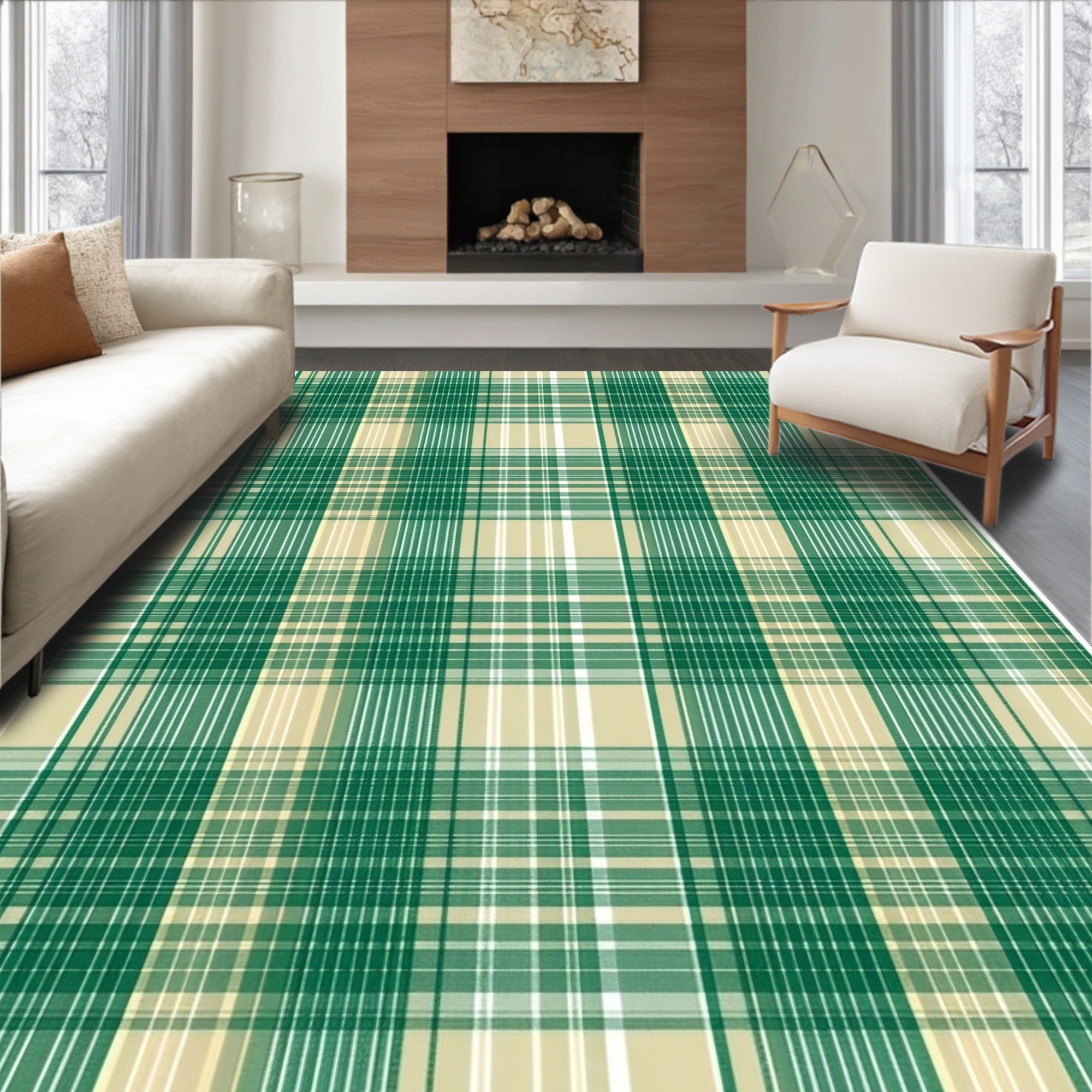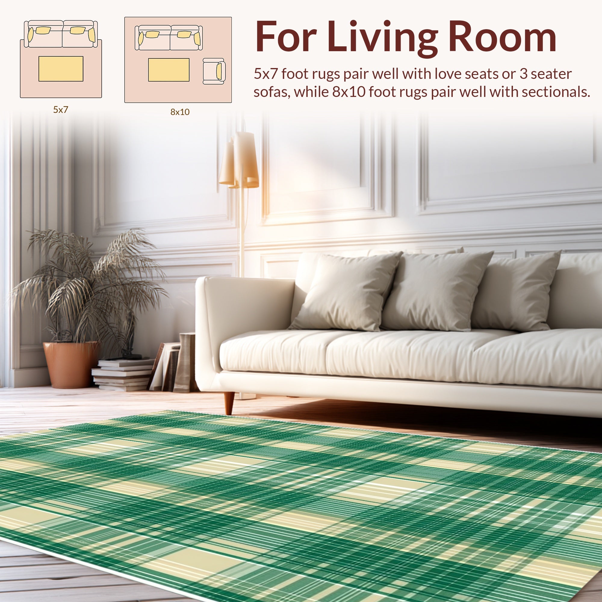 Flatwoven High Traffic Area Rug, Inviting Farmhouse Plaid Aesthetic Touch, Non Slip, Stain Resistant, Washable Area Rugs for Living Room, Bedroom (Beige) Overview:
