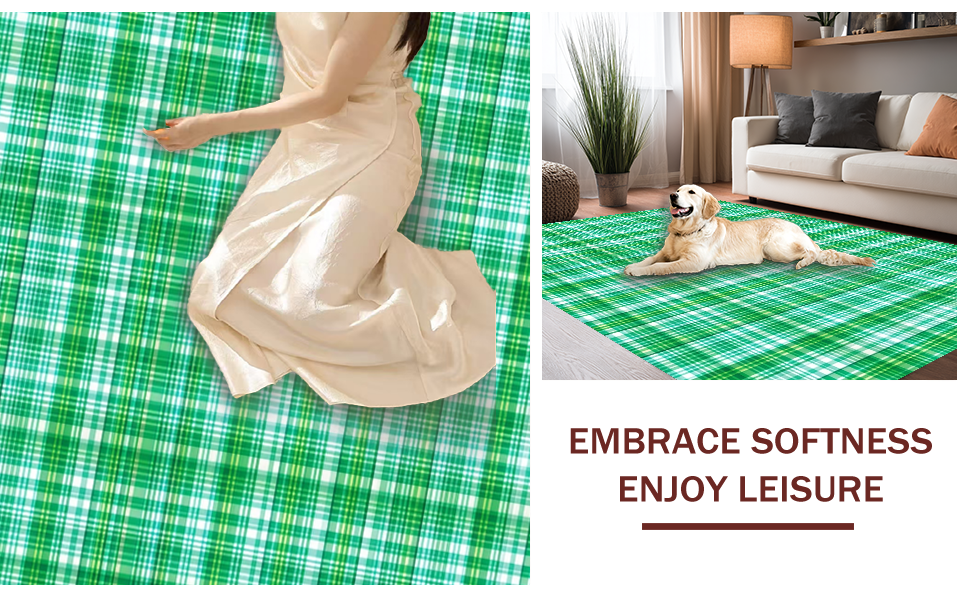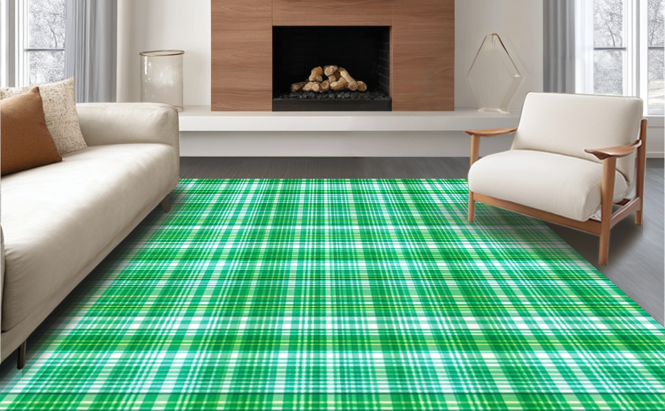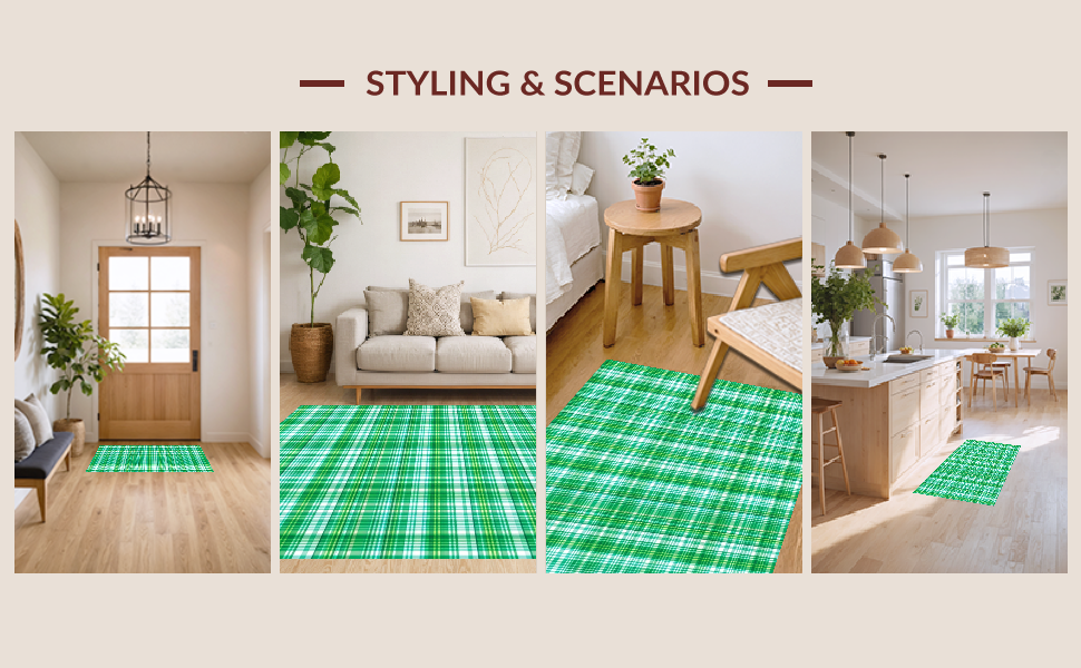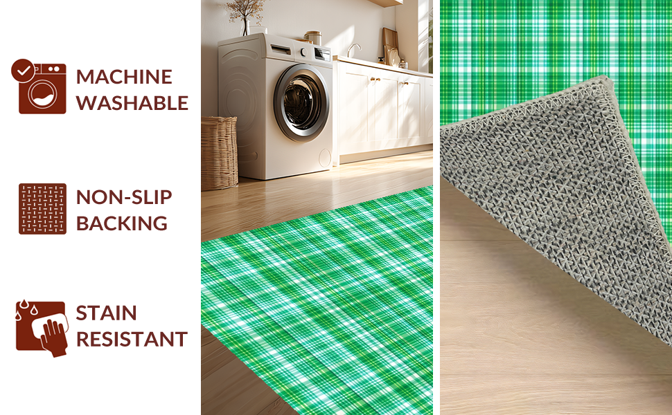 Ultra Soft Area Rug, Non Slip, Stain Resistant, Washable Area Rugs for Living Room, Bedroom, Inviting Farmhouse Striped Visual(Green) Overview: