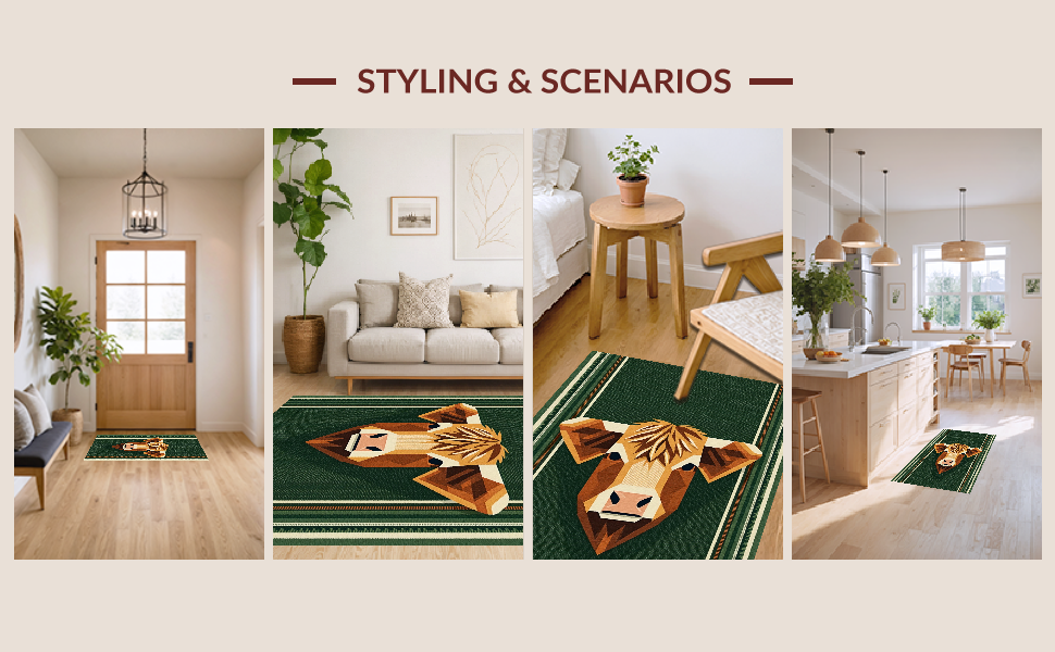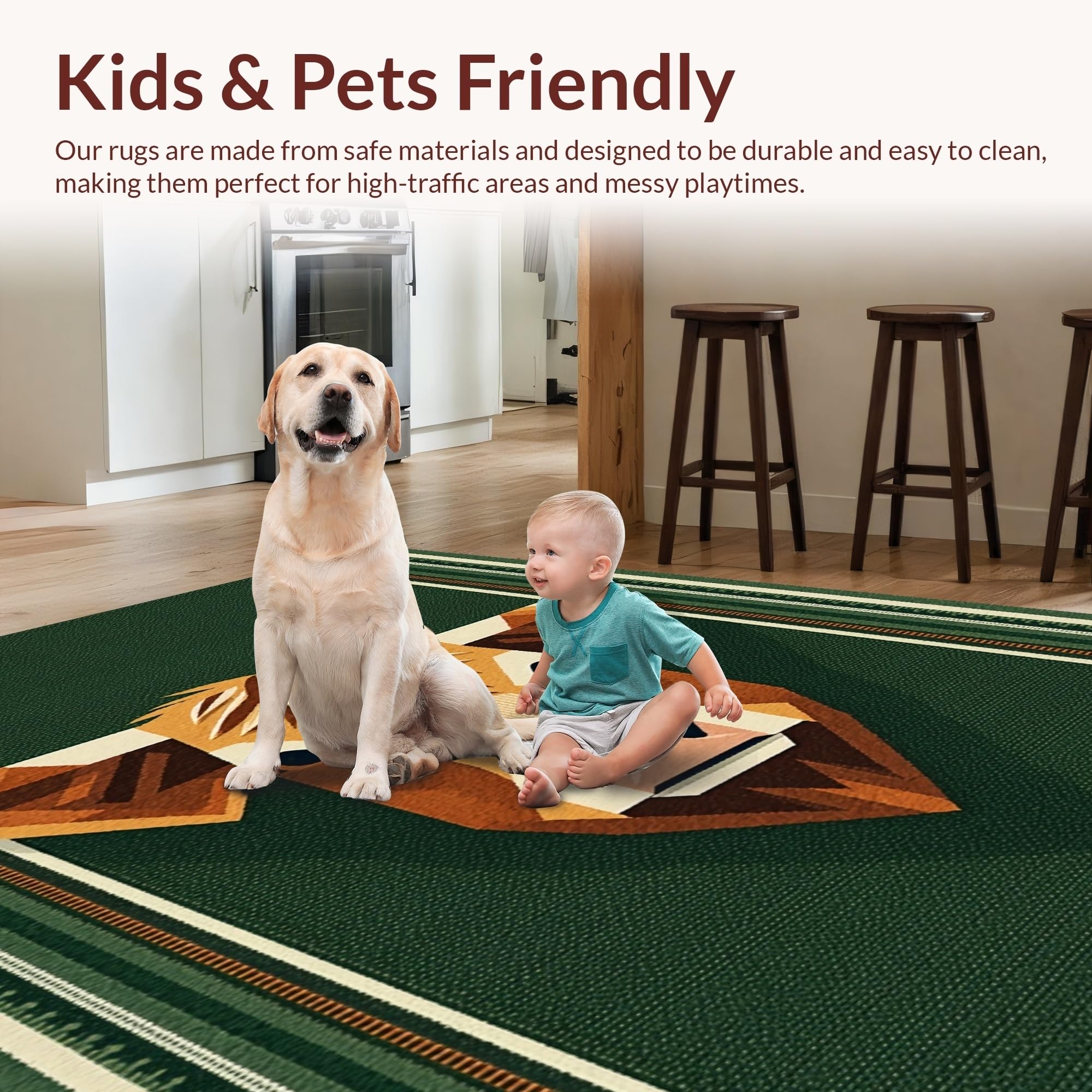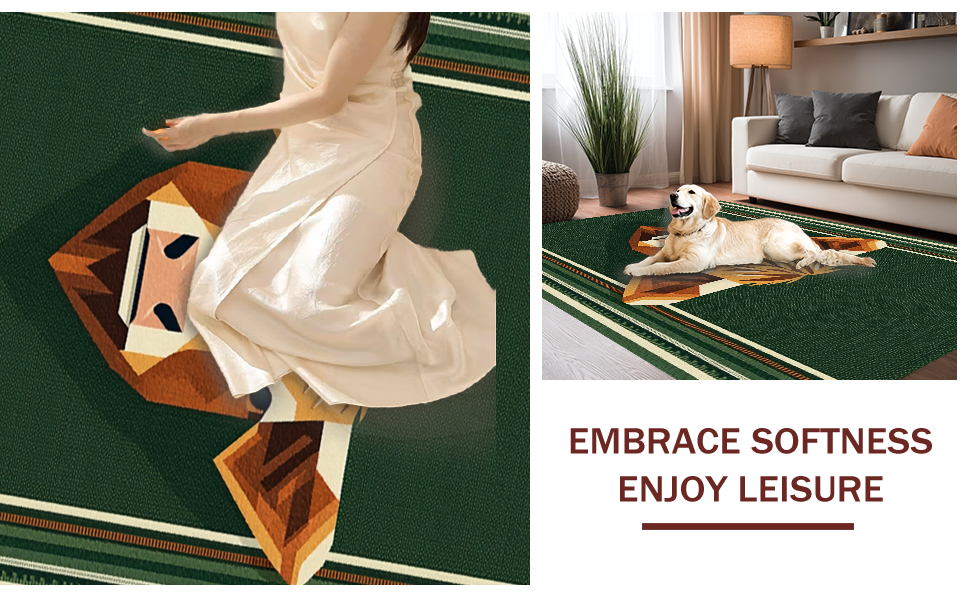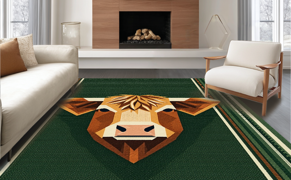 Ultra Soft Area Rug, Non Slip, Stain Resistant, Washable Area Rugs for Living Room, Bedroom, Inviting Highland Graphic Style(Green) Overview: