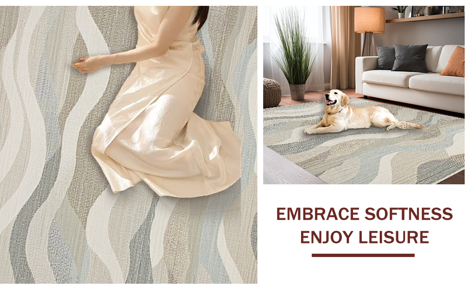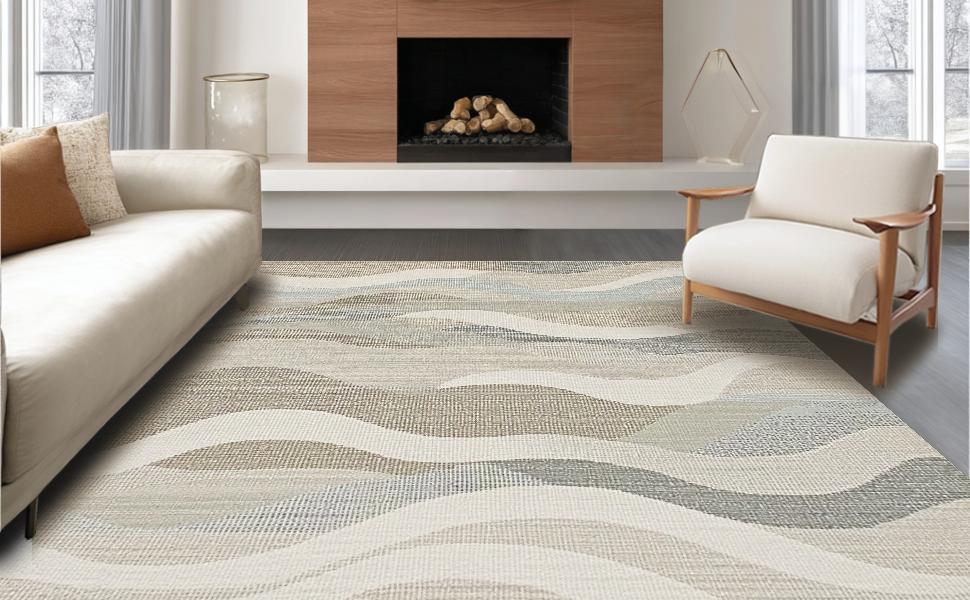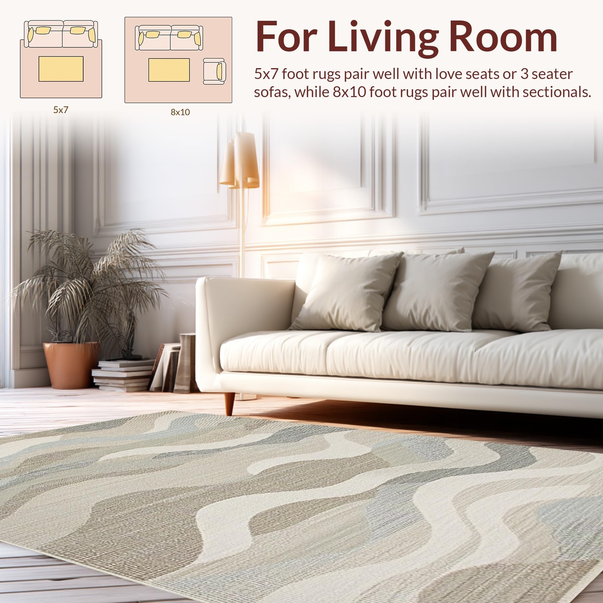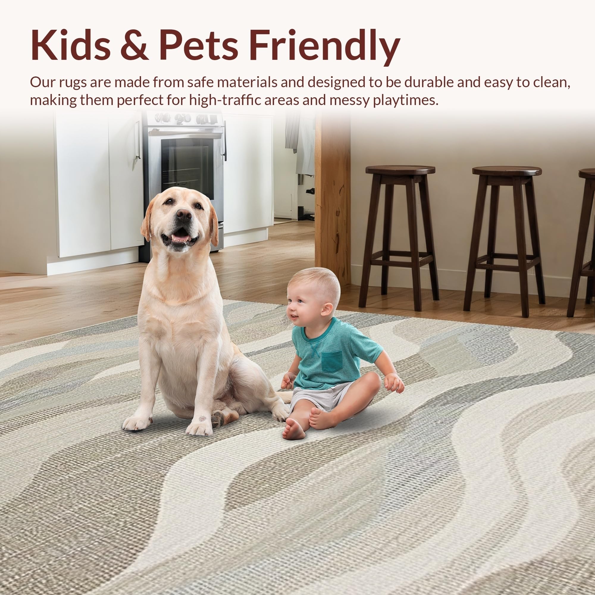 Ultra Soft Area Rug, Non Slip, Stain Resistant, Washable Area Rugs for Living Room, Bedroom, Inviting Softly Curved Geometric Style(Beige) Overview: