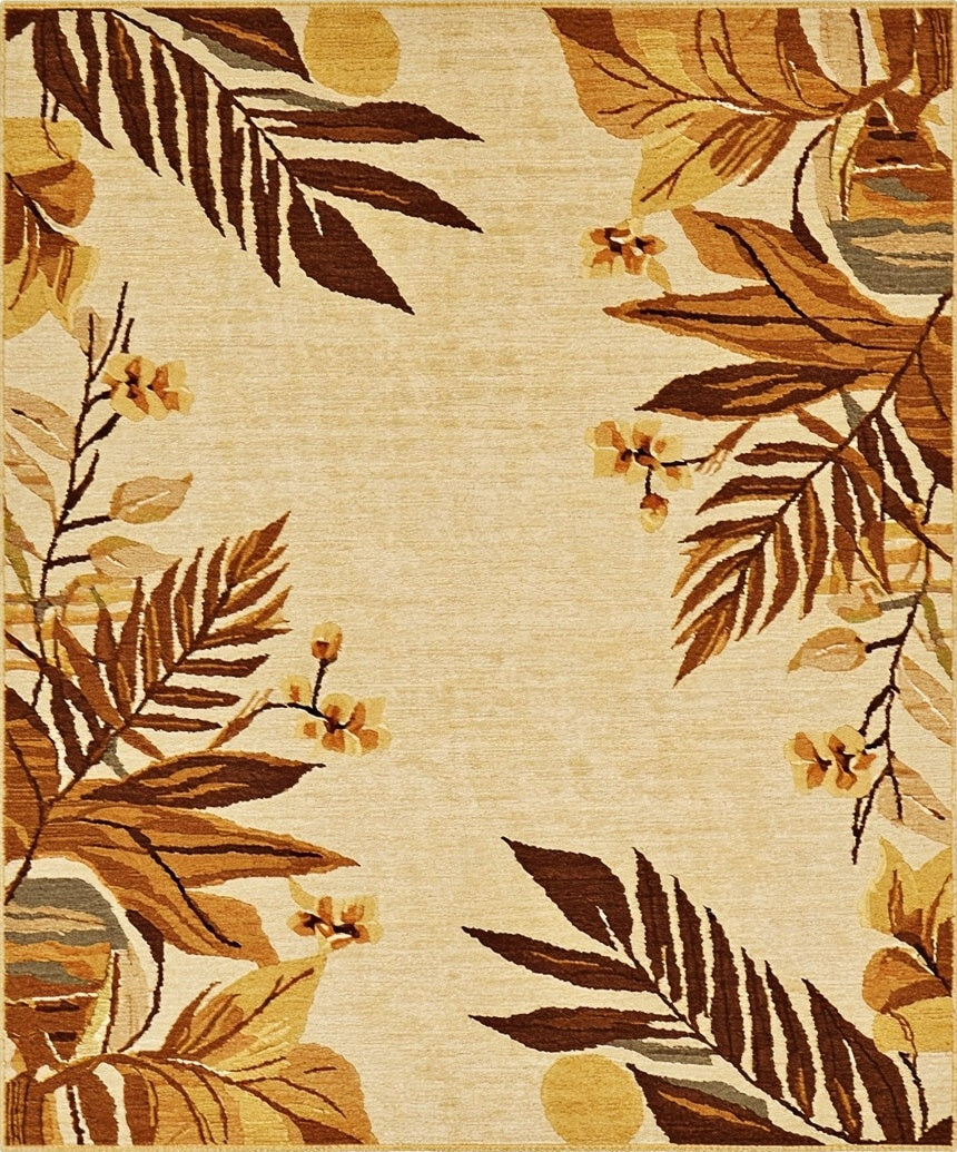 Island Breeze Weatherproof Area Rug With Decorative Botanical Pattern(Beige)