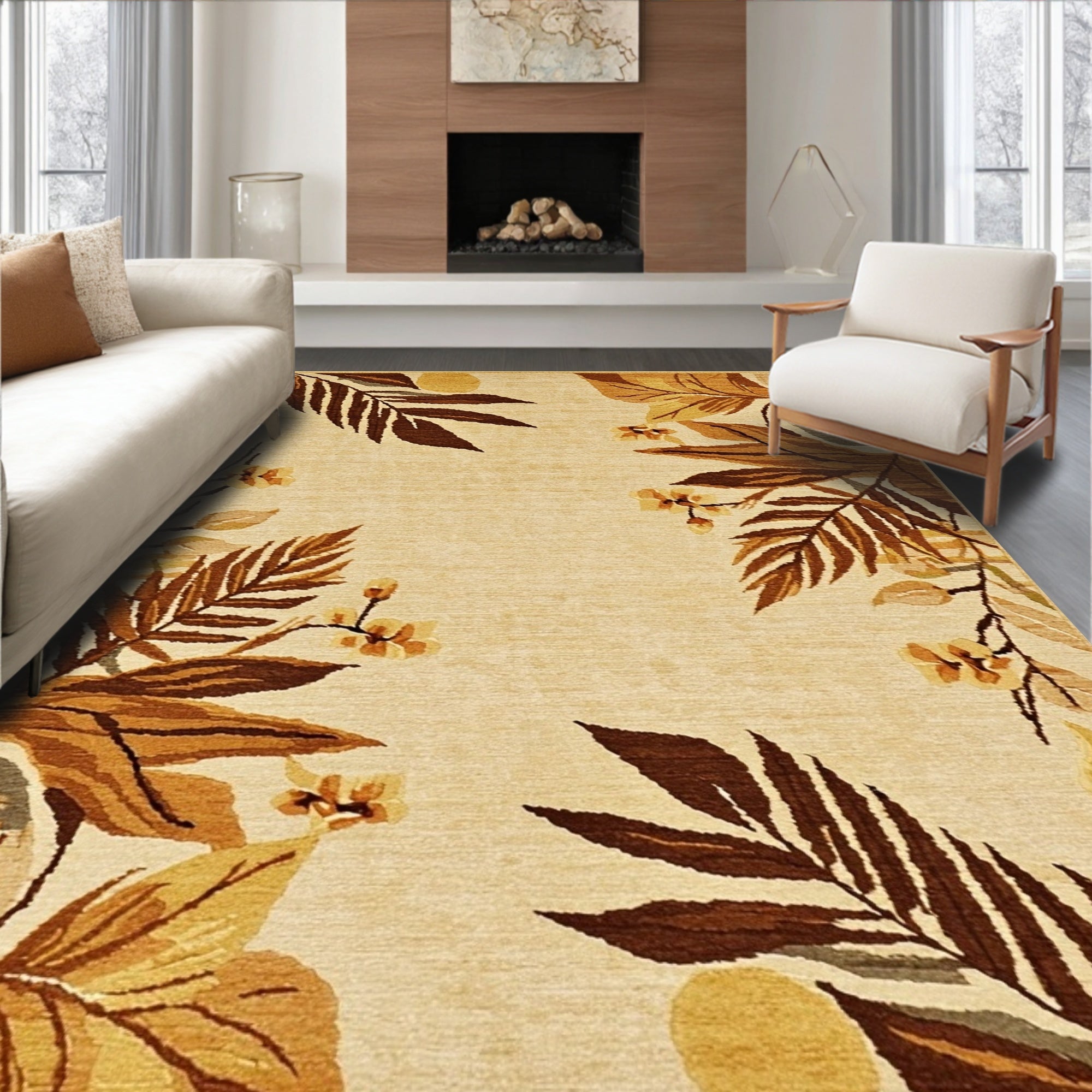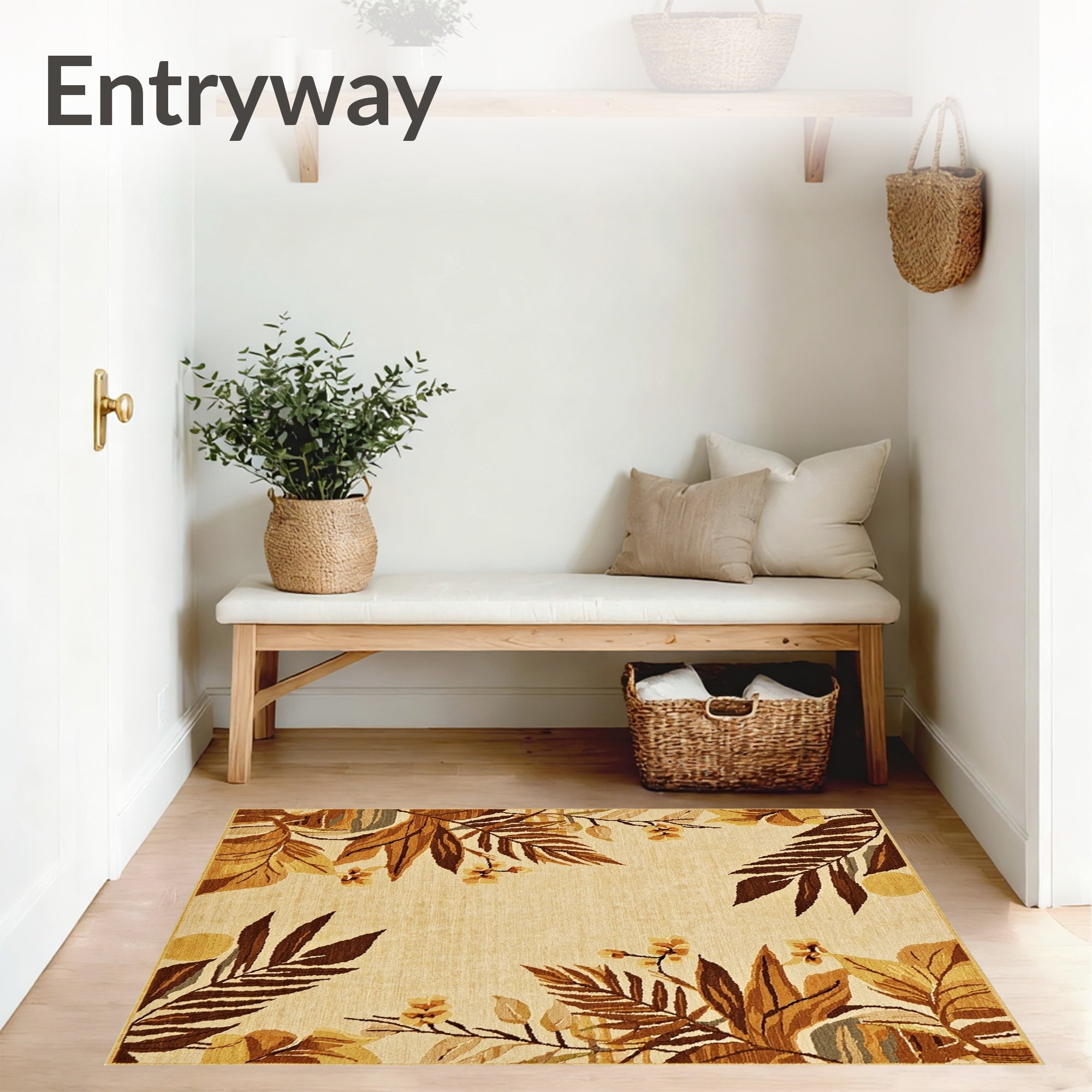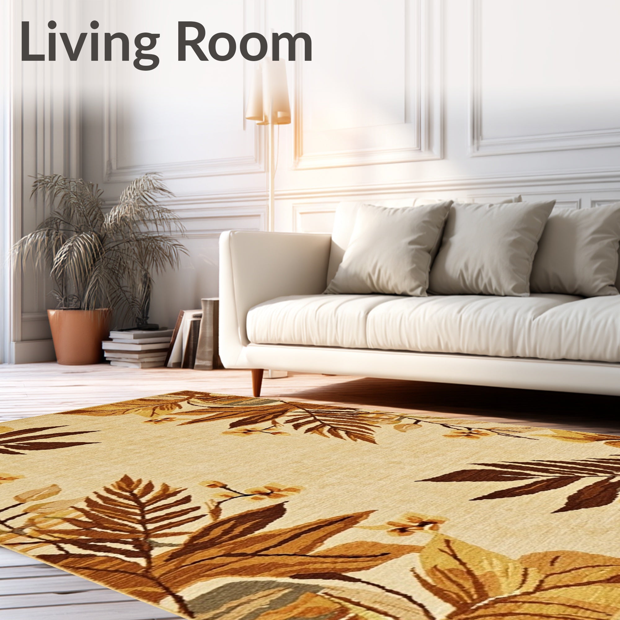 Ultra Soft Area Rug, Non Slip, Stain Resistant, Washable Area Rugs for Living Room, Bedroom, Island Breeze Weatherproof Area Rug With Decorative Botanical Pattern(Beige) Overview: