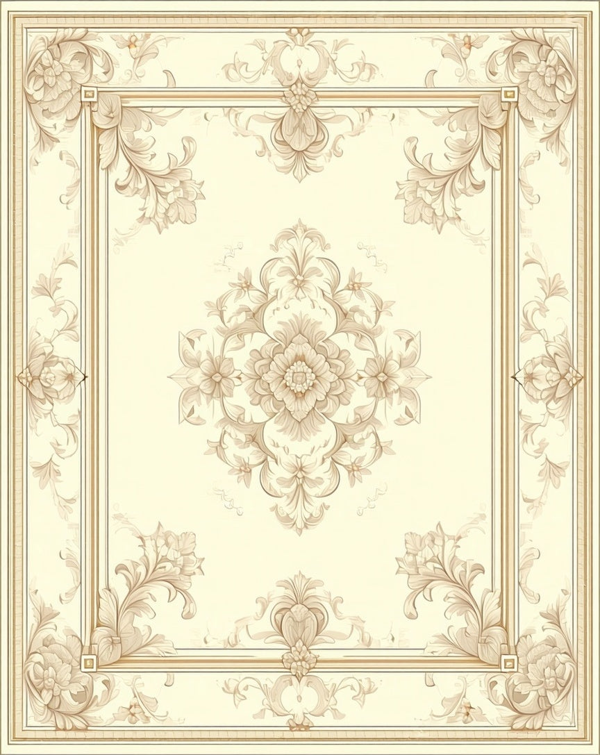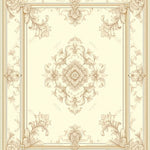 Ivory Beige Baroque Medallion Decorative Scroll Motifs(Beige)