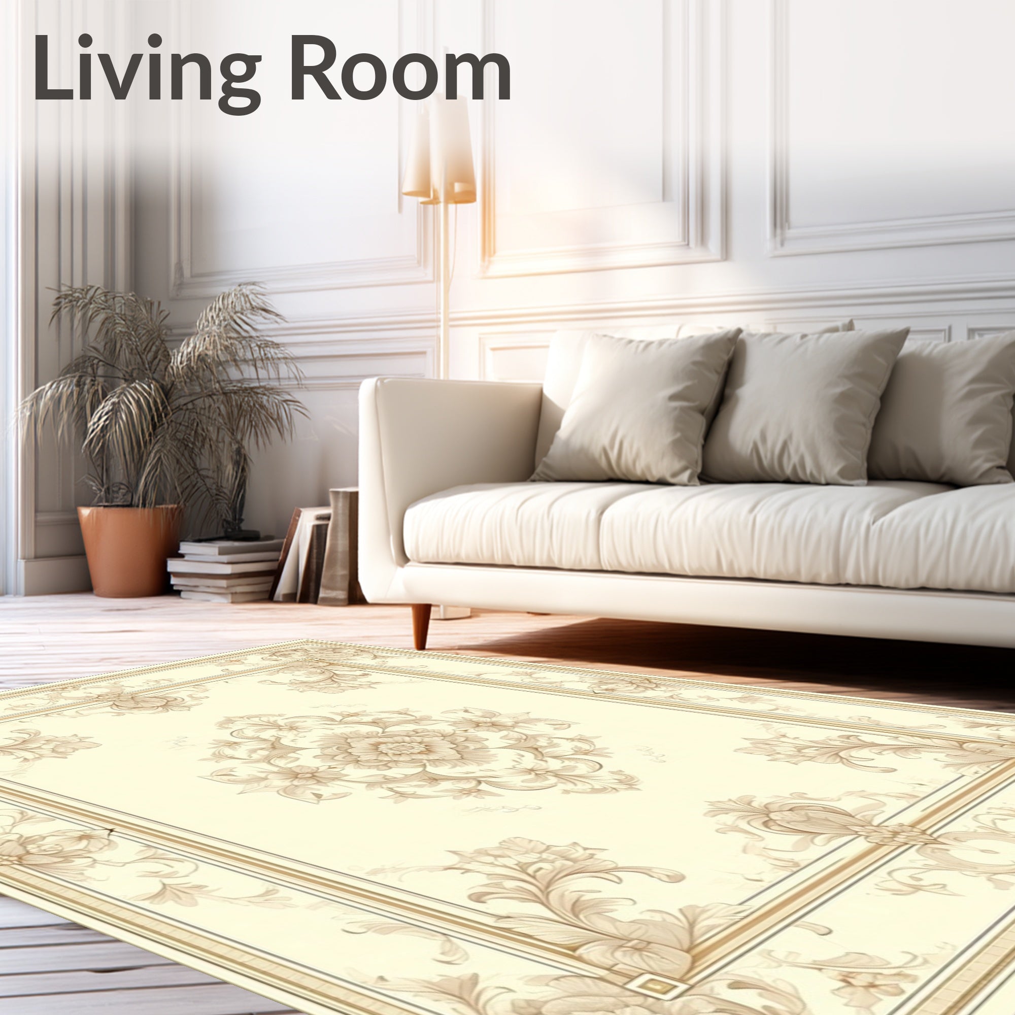 Flatwoven High Traffic Area Rug, Ivory Beige Baroque Medallion Decorative Scroll Motifs, Non Slip, Stain Resistant, Washable Area Rugs for Living Room, Bedroom (Beige) Overview: