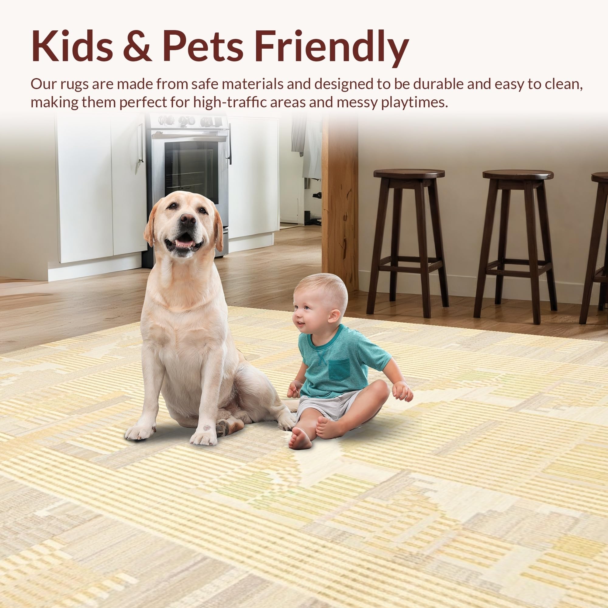 Ultra Soft Area Rug, Non Slip, Stain Resistant, Washable Area Rugs for Living Room, Bedroom, Ivory Rustic Tiled Appeal(Beige) Overview: