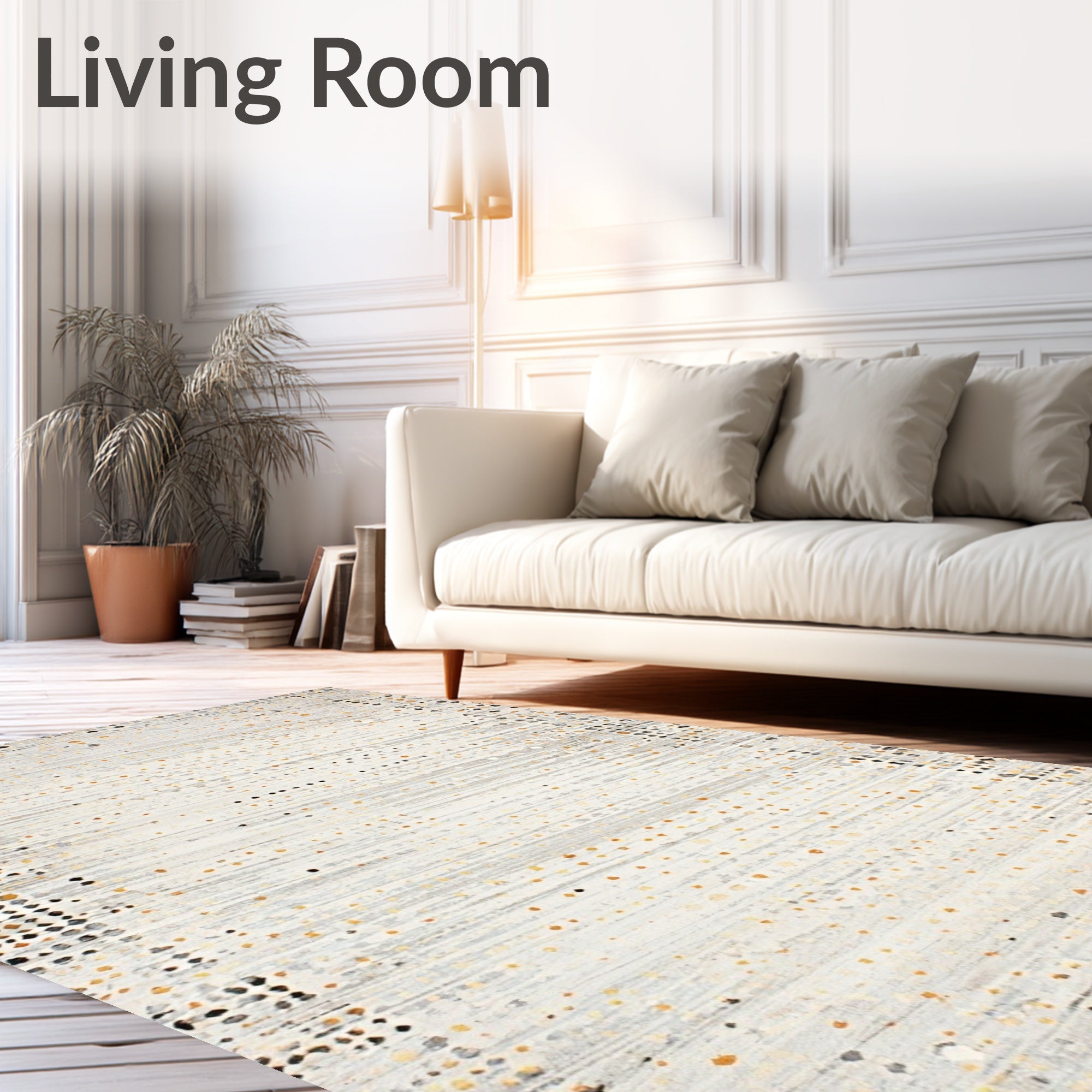 Ultra Soft Area Rug, Non Slip, Stain Resistant, Washable Area Rugs for Living Room, Bedroom, Ivory with Geometric Spotted(White) Overview: