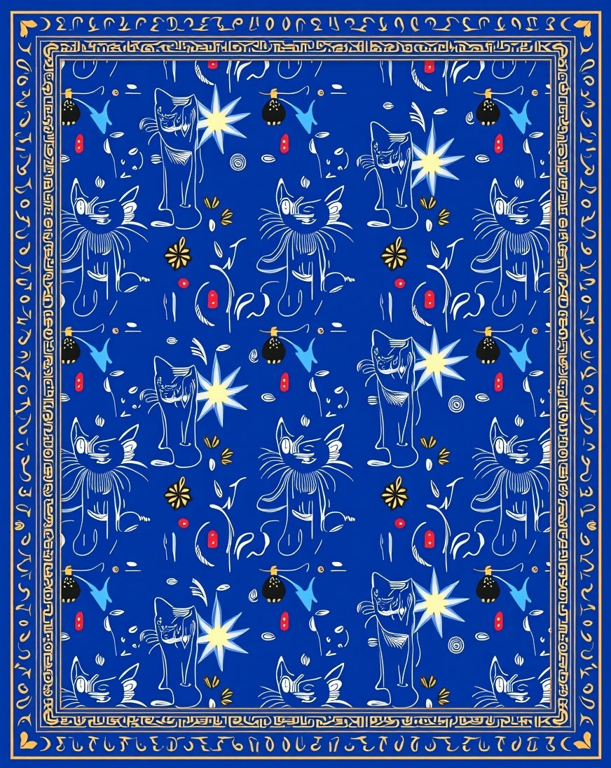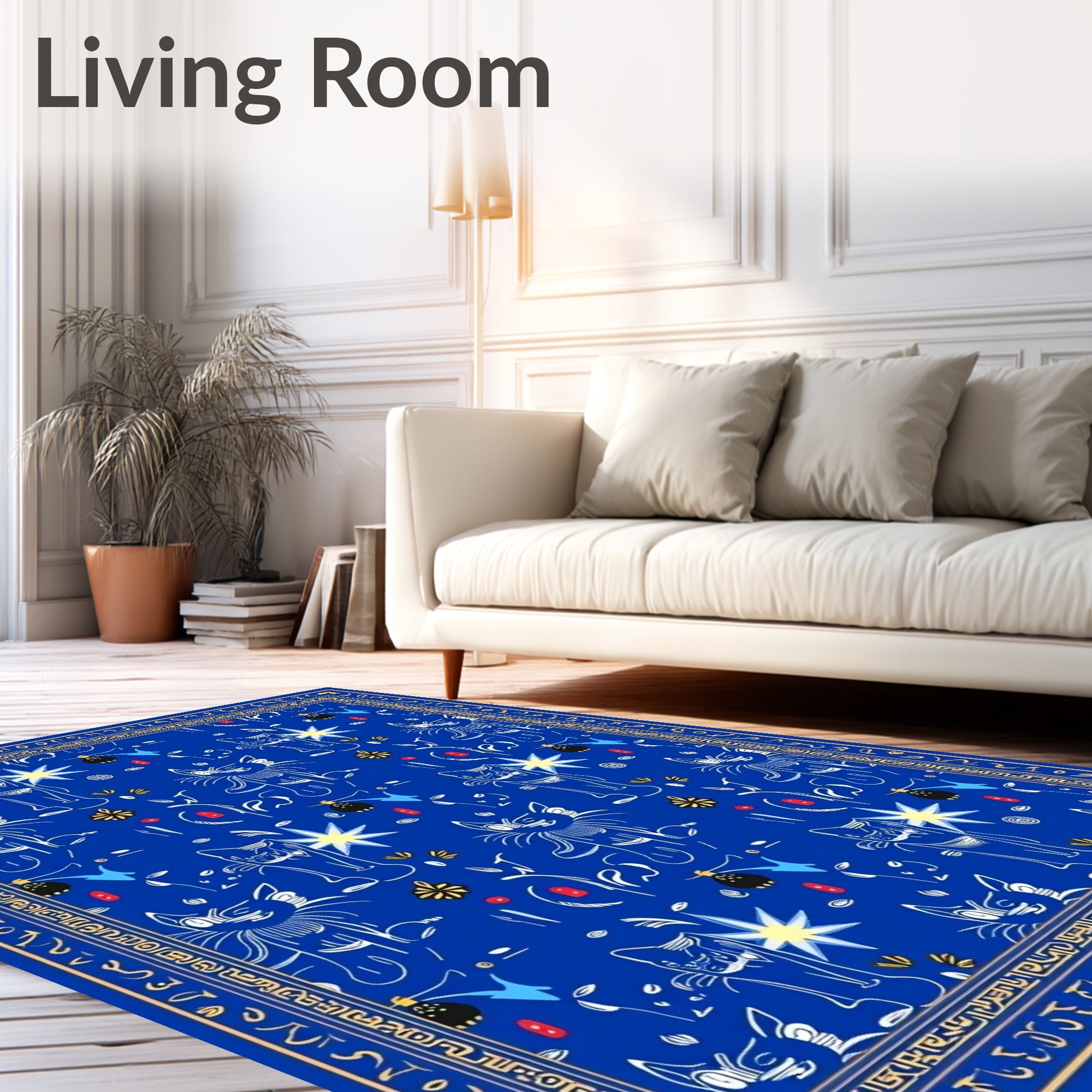 Ultra Soft Area Rug, Non Slip, Stain Resistant, Washable Area Rugs for Living Room, Bedroom, Jolly Cats Posing with Illuminated Christmas Baubles(Blue) Overview: