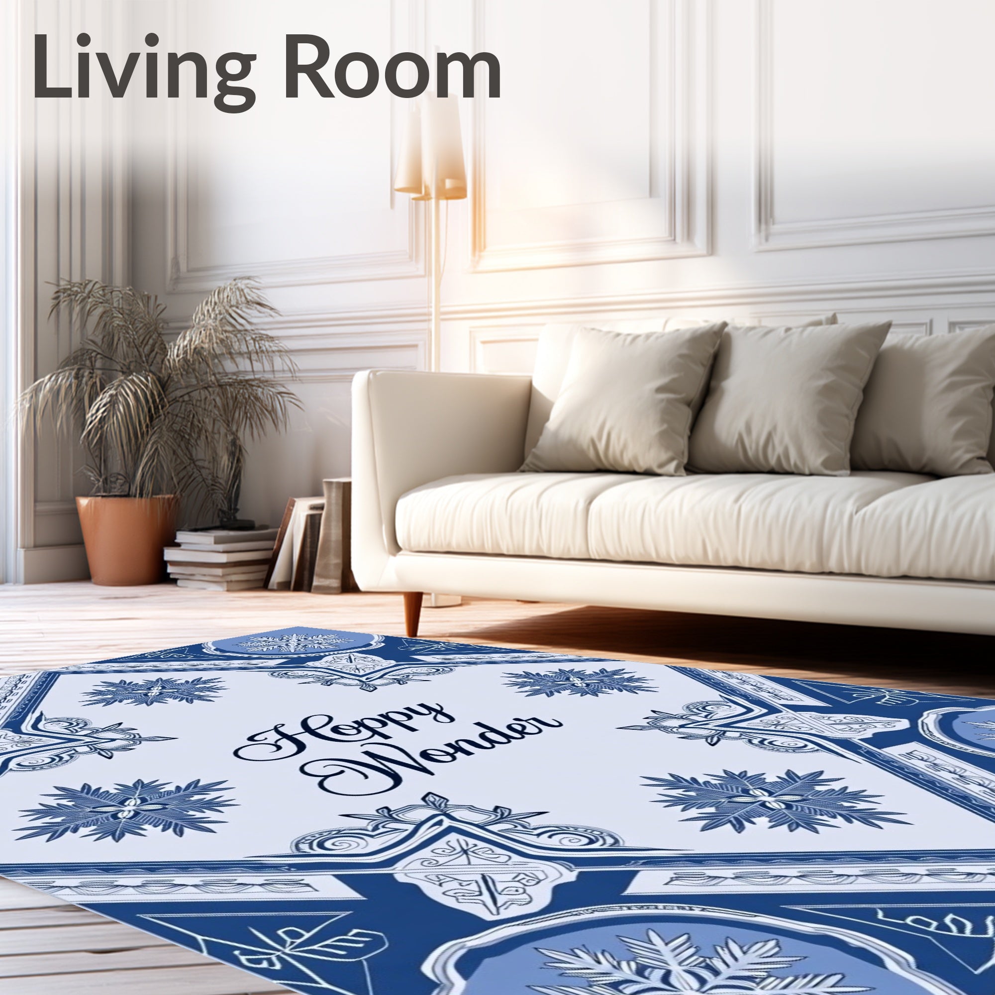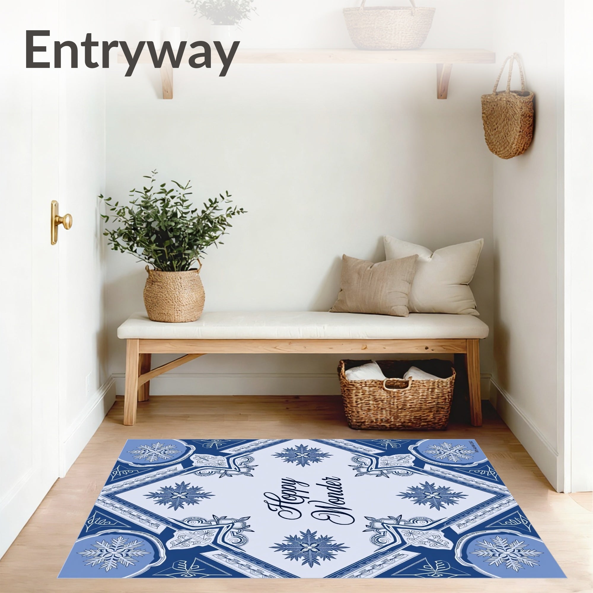 Ultra Soft Area Rug, Non Slip, Stain Resistant, Washable Area Rugs for Living Room, Bedroom, Jolly Snowflake Wonderland Magical Entrance Statement(Blue) Overview: