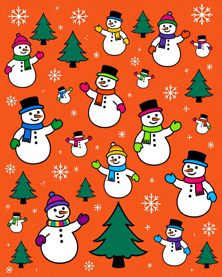 Jolly Snowman Family Scene Holiday with Pine Tree Accents(Orange)