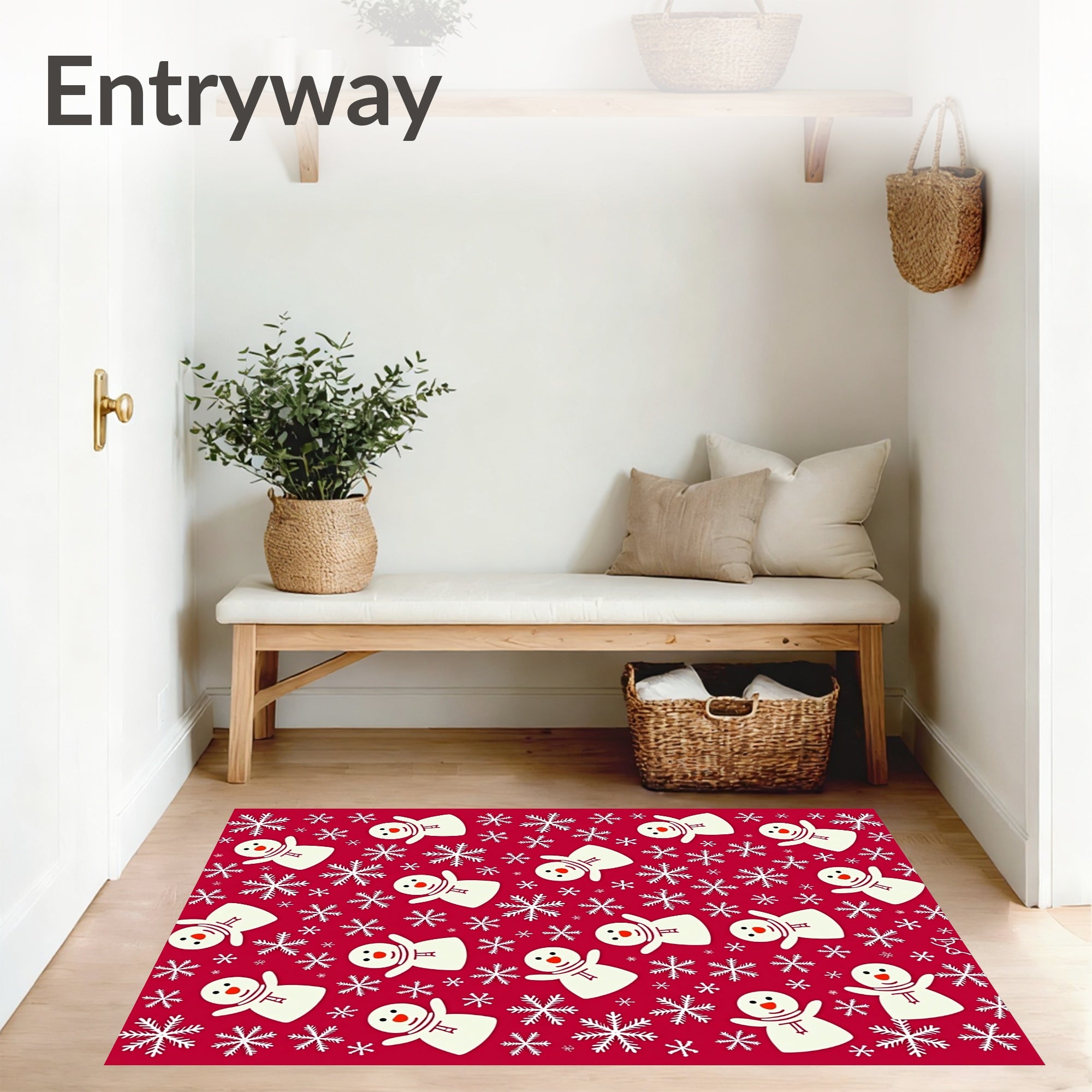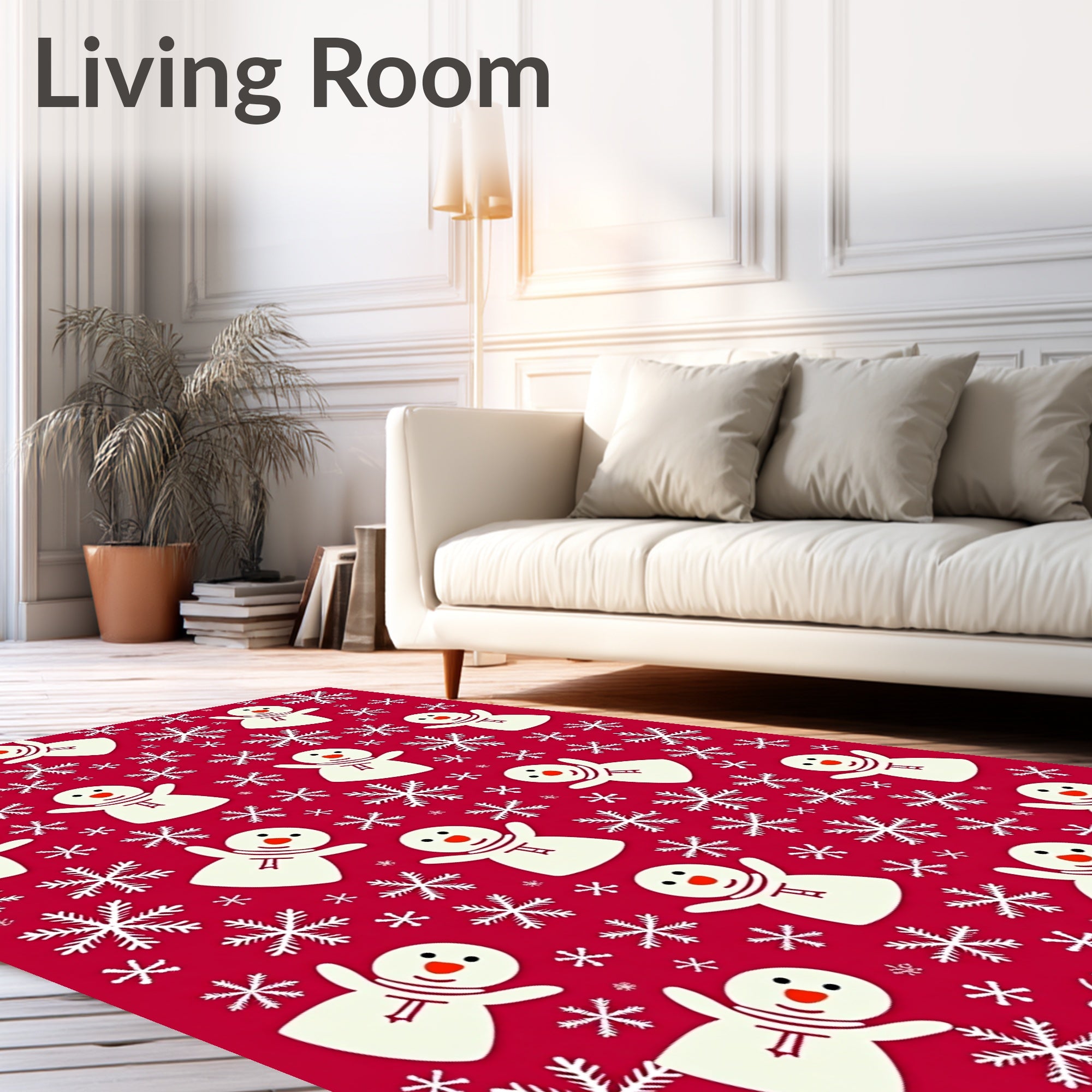 Ultra Soft Area Rug, Non Slip, Stain Resistant, Washable Area Rugs for Living Room, Bedroom, Jolly Snowy Friends Merry Gathering Seasonal Jubilation Spectacle(Red) Overview: