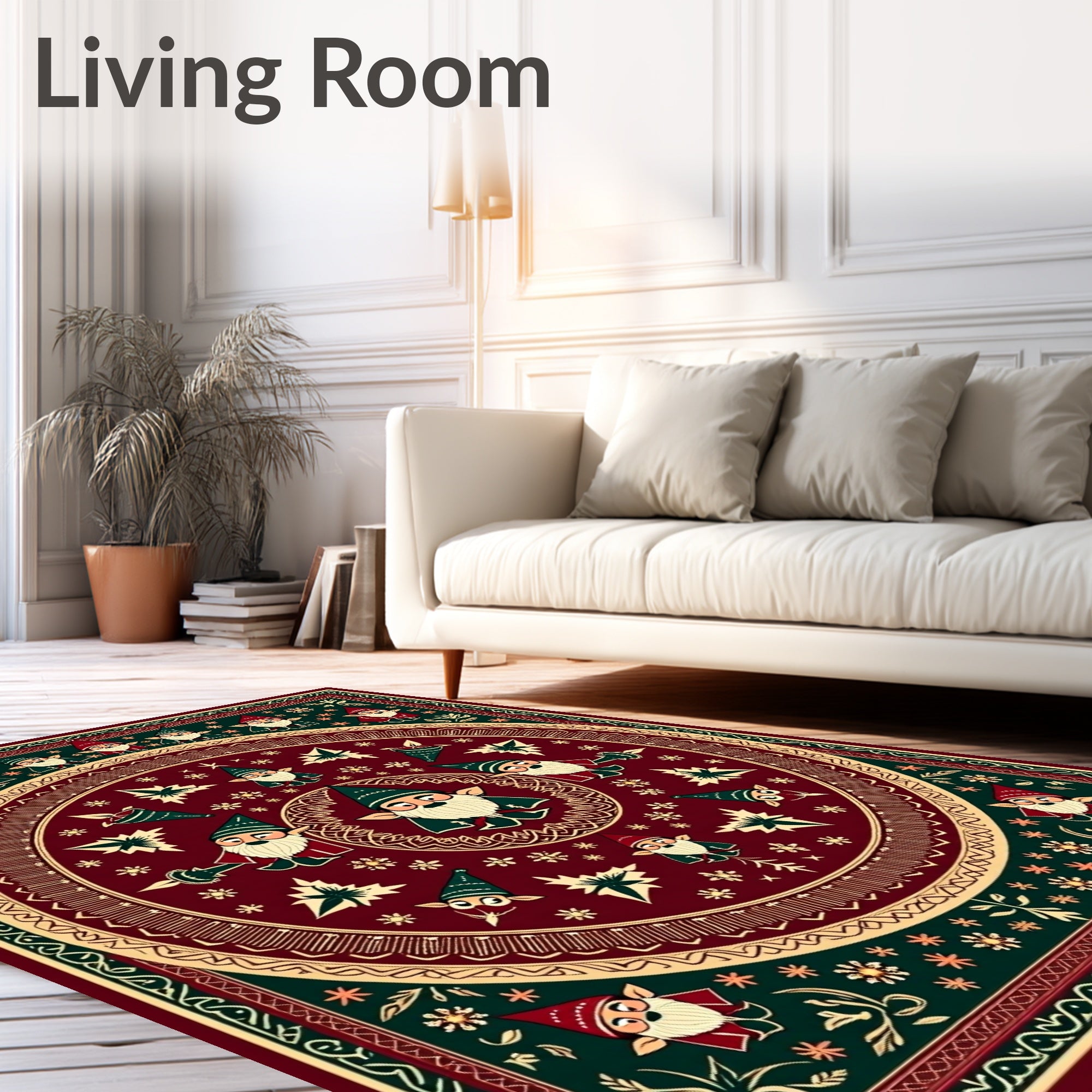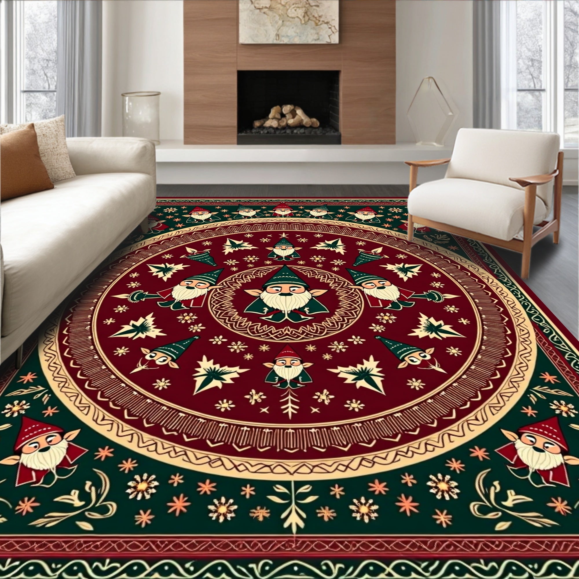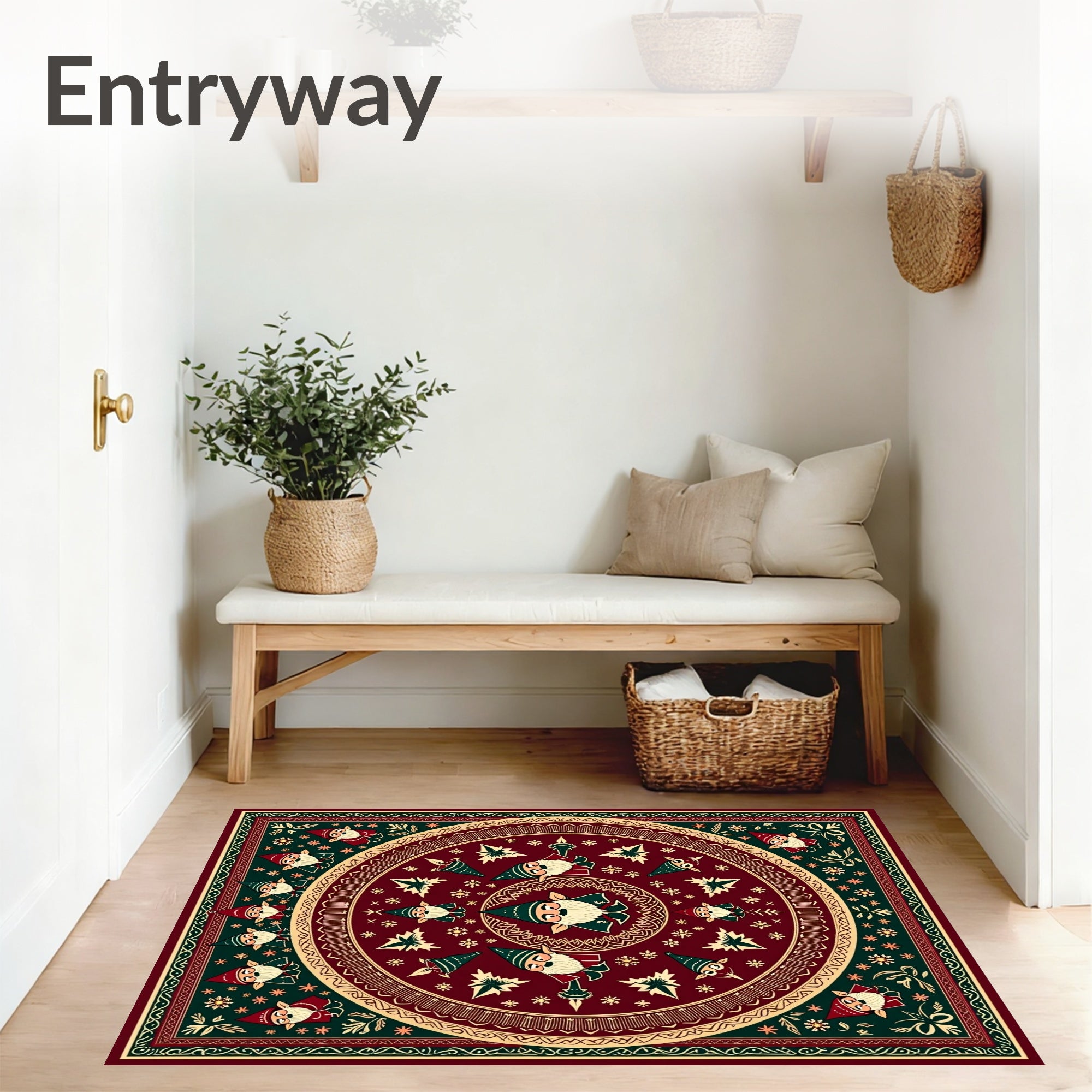 Ultra Soft Area Rug, Non Slip, Stain Resistant, Washable Area Rugs for Living Room, Bedroom, Jolly Tomte Enchanted Welcome Sparkling Flurry Decoration(Red) Overview: