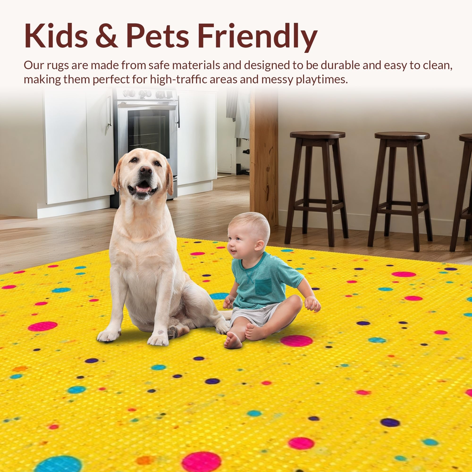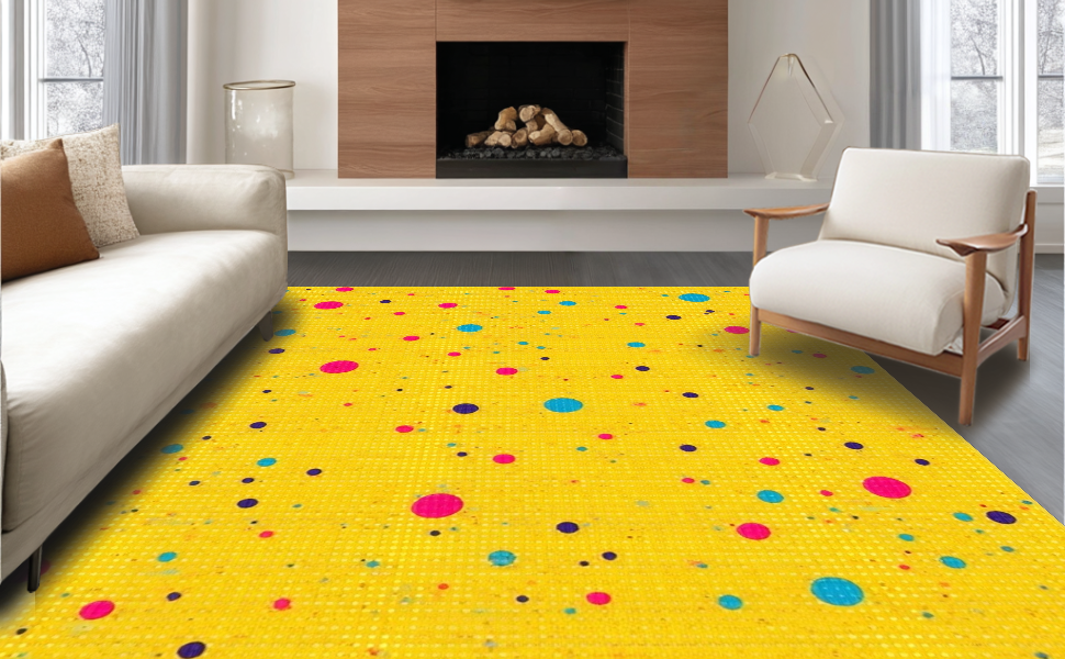 Ultra Soft Area Rug, Non Slip, Stain Resistant, Washable Area Rugs for Living Room, Bedroom, Joyful Abstract Color Splash Motif(Yellow) Overview: