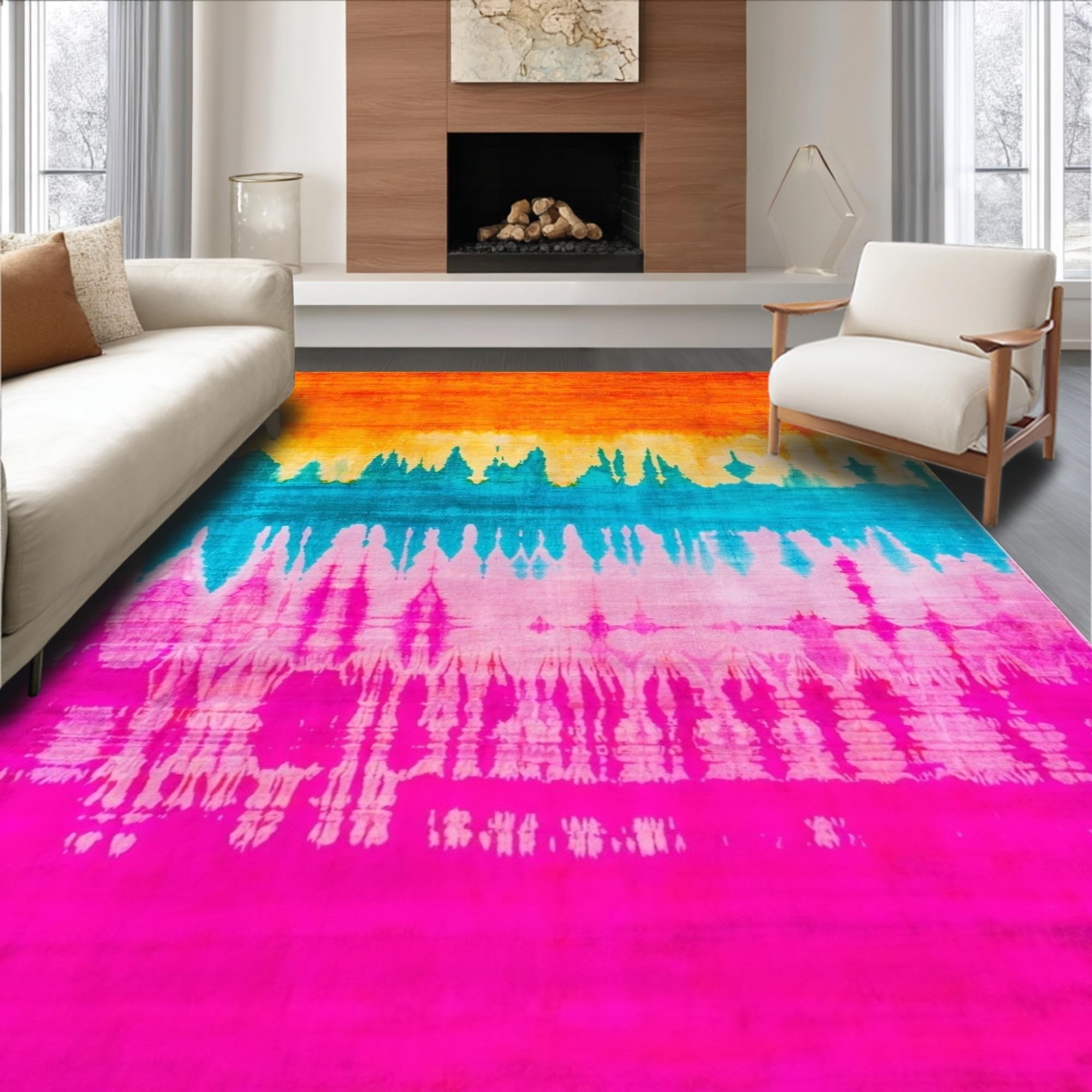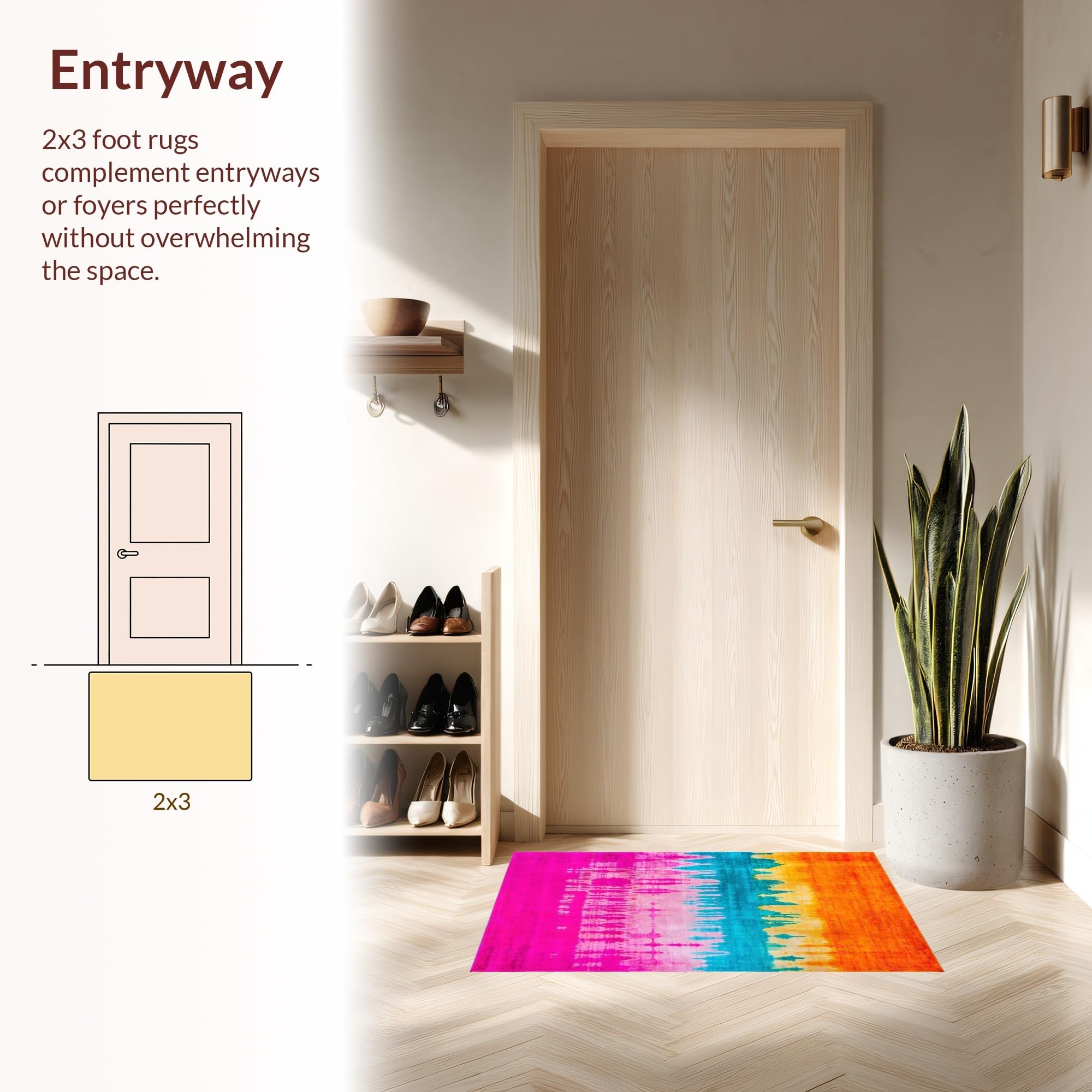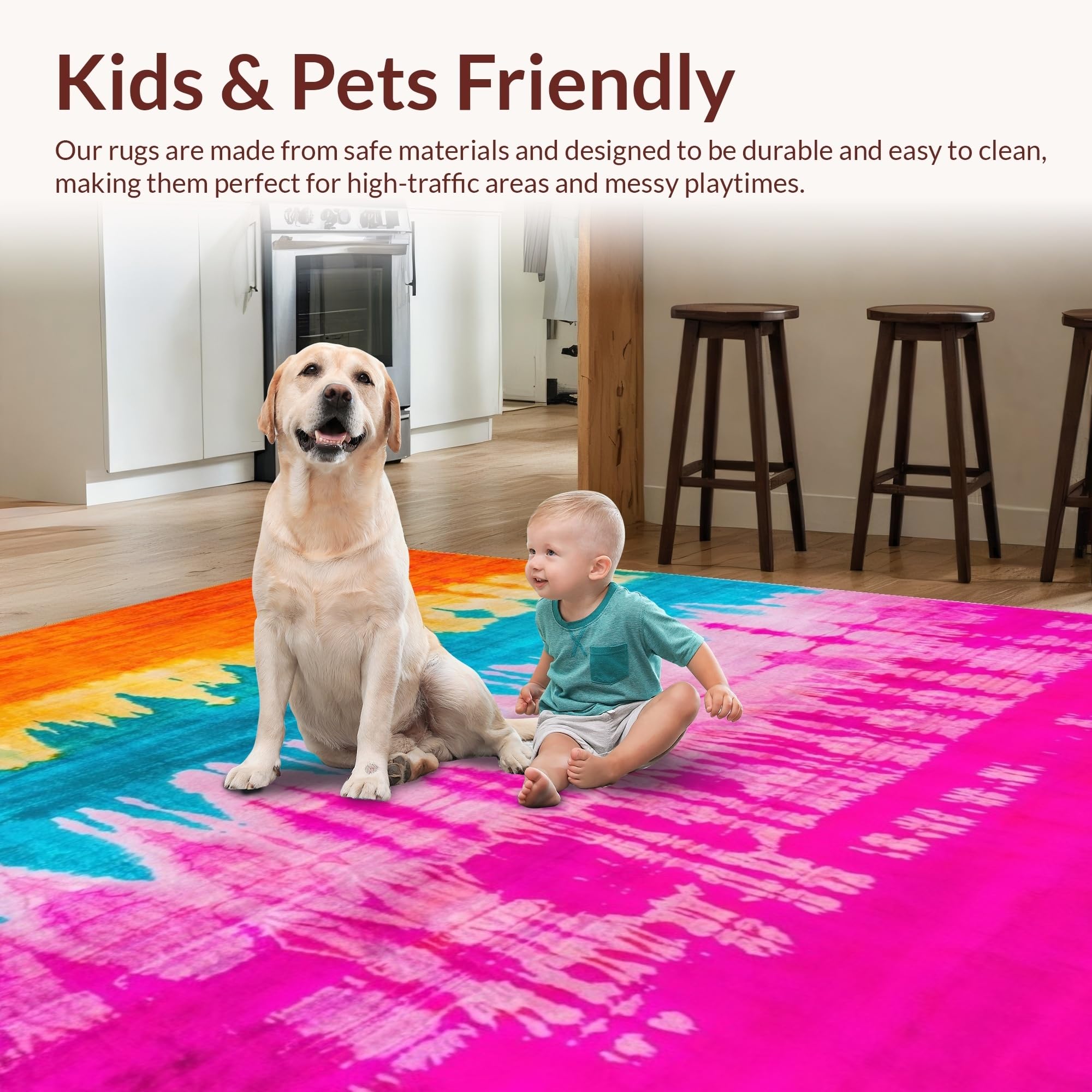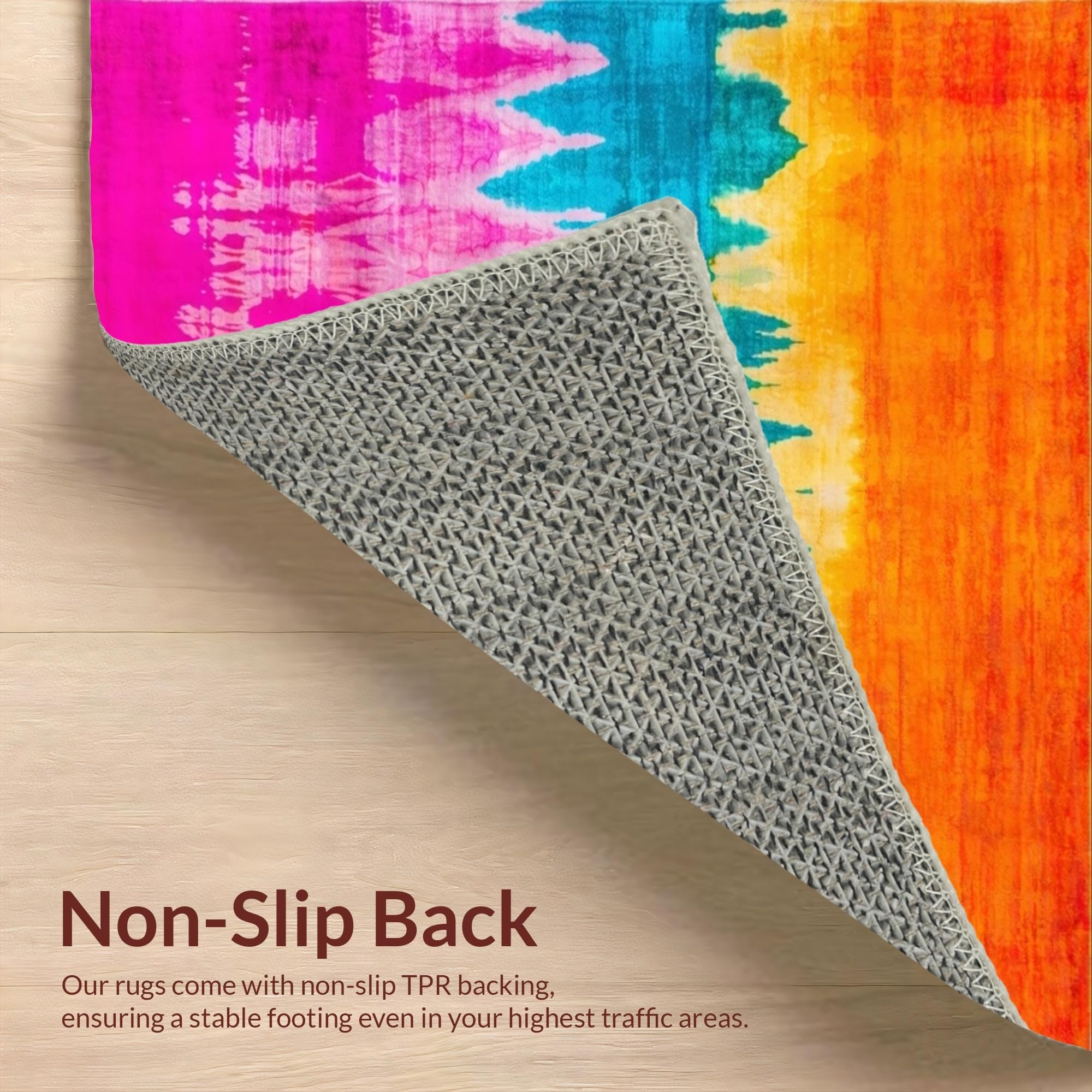 Ultra Soft Area Rug, Non Slip, Stain Resistant, Washable Area Rugs for Living Room, Bedroom, Joyful Eclectic Circular Shapes Theme(Orange) Overview: