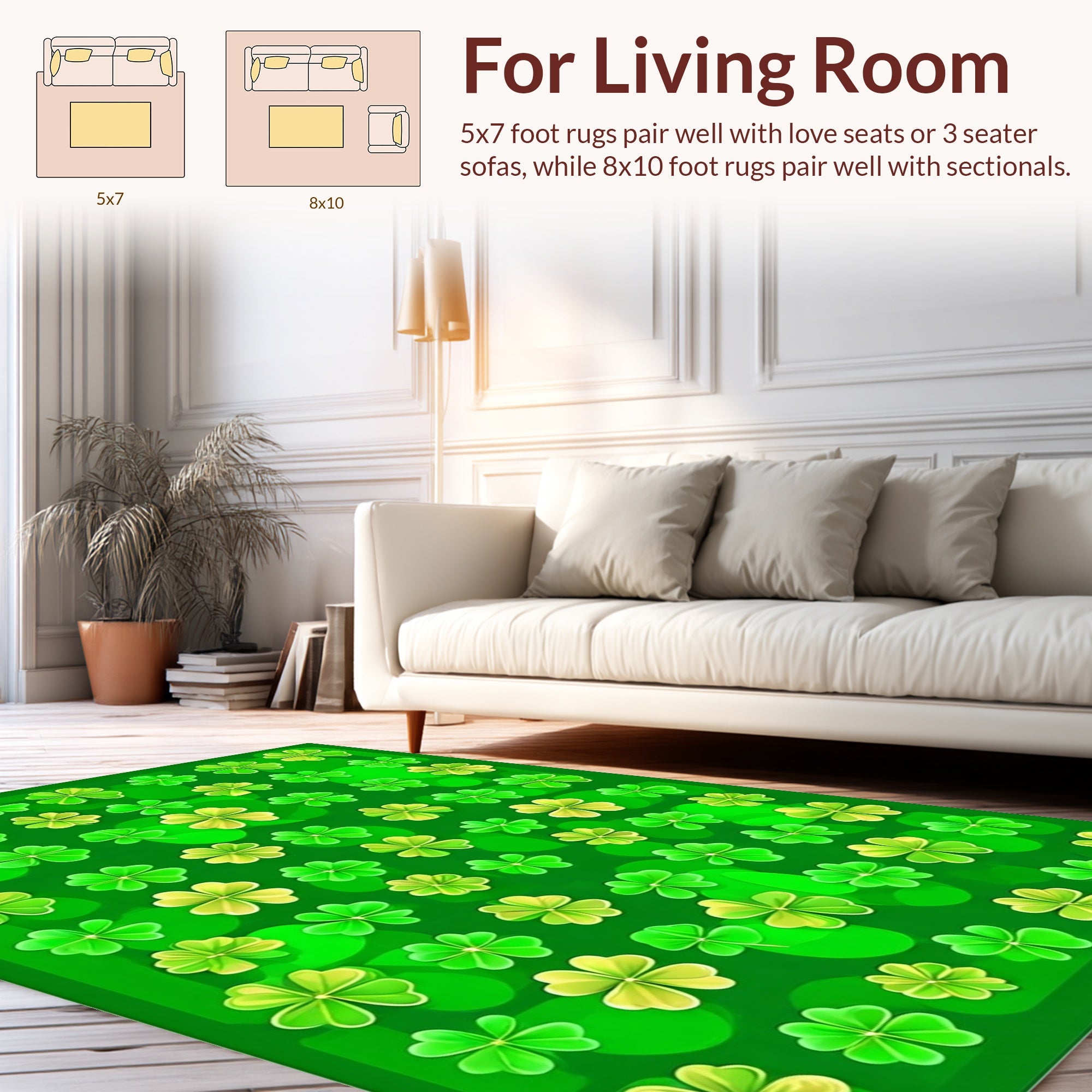 Flatwoven High Traffic Area Rug, Joyful Green Plant Imagery, Non Slip, Stain Resistant, Washable Area Rugs for Living Room, Bedroom (Green) Overview: