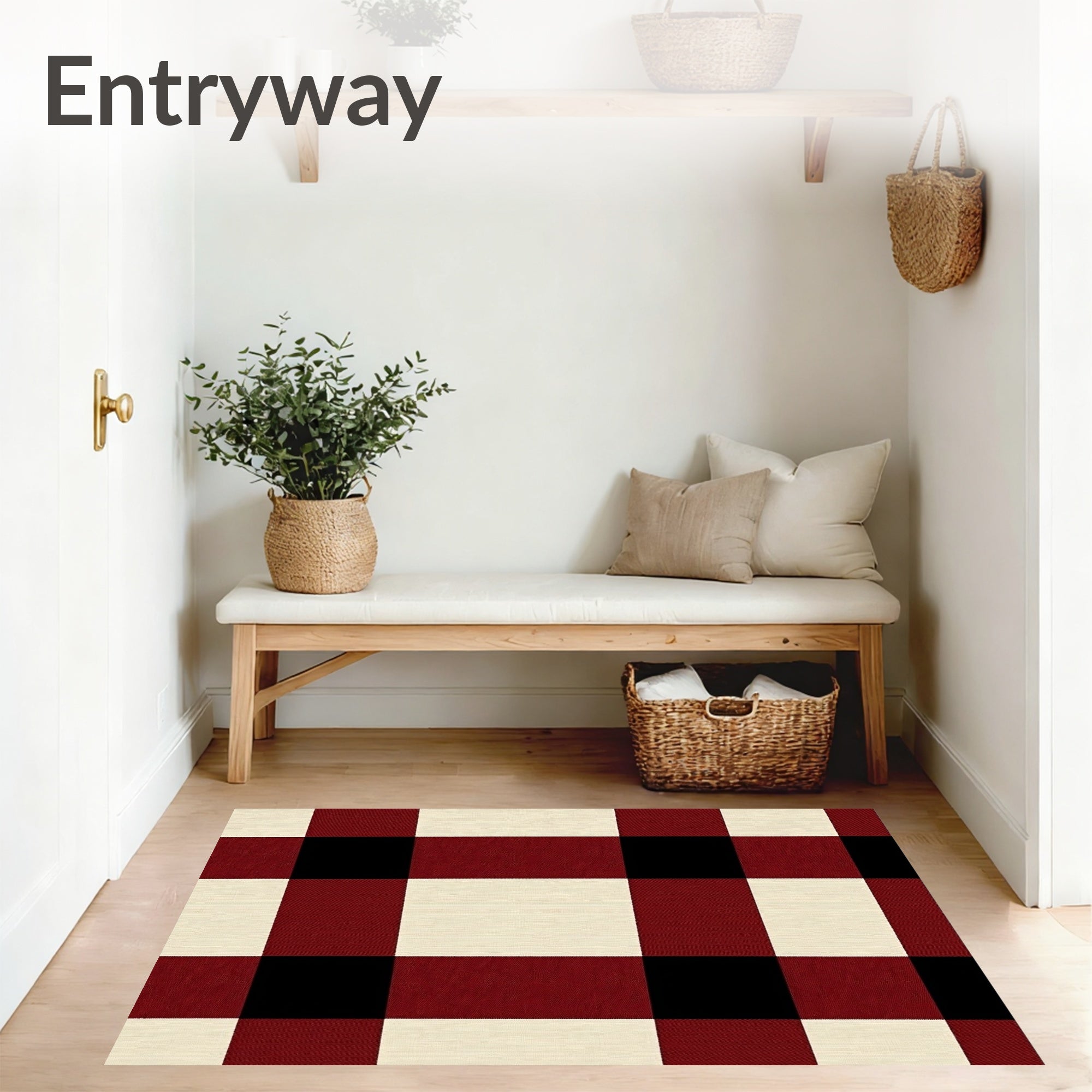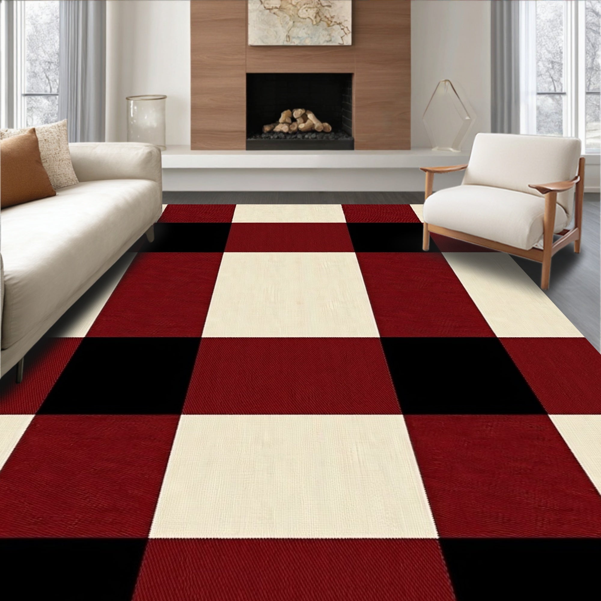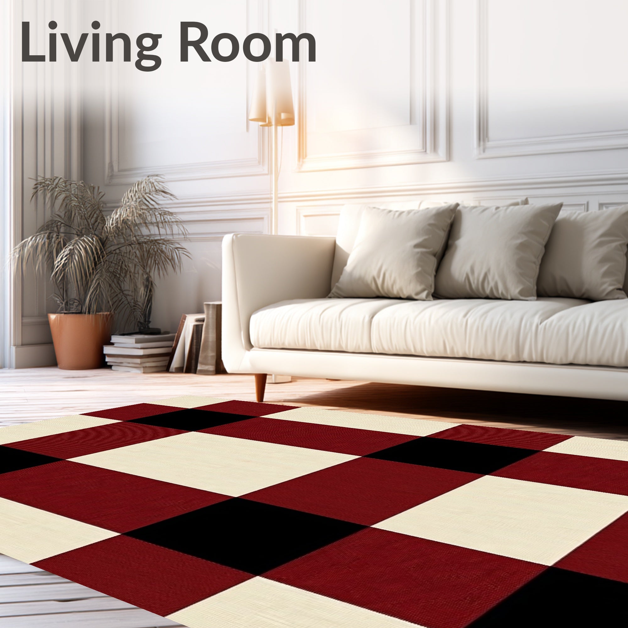 Ultra Soft Area Rug, Non Slip, Stain Resistant, Washable Area Rugs for Living Room, Bedroom, Joyful Lumberjack Homespun Countryside Seasonal Accent(Beige) Overview: