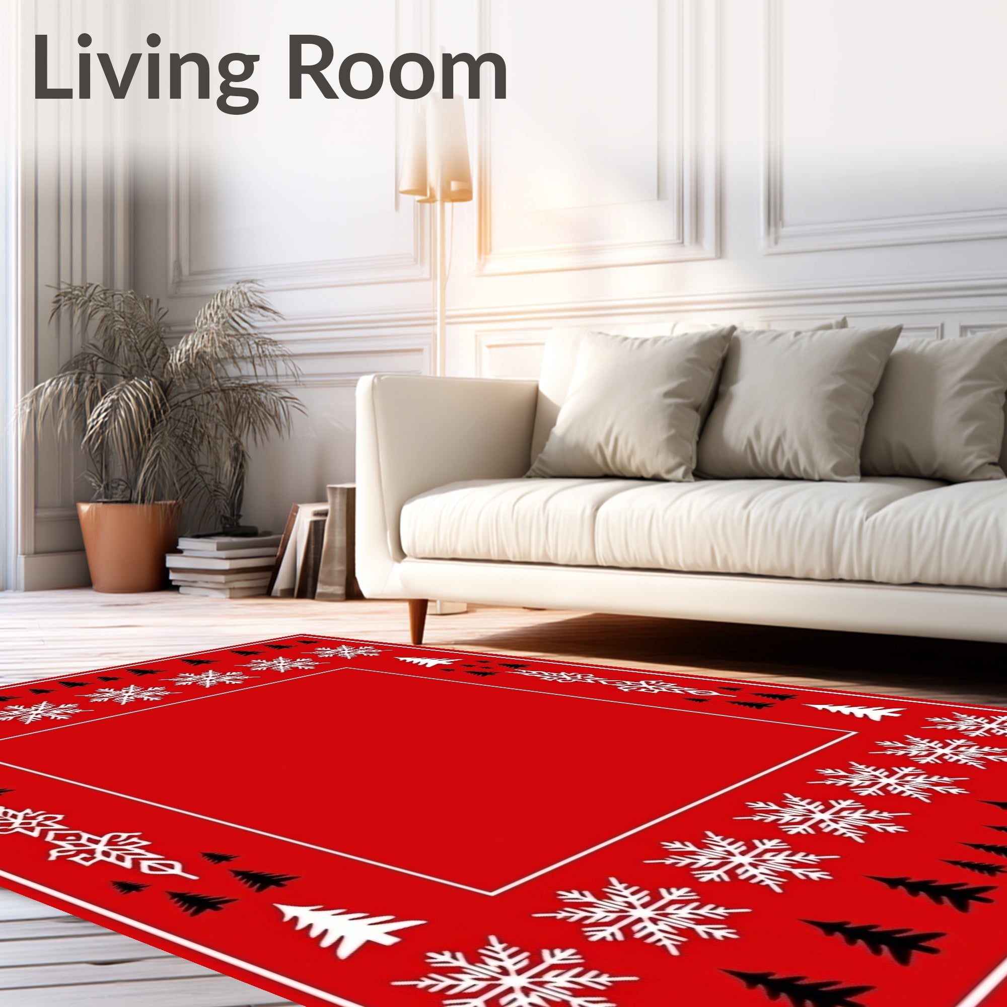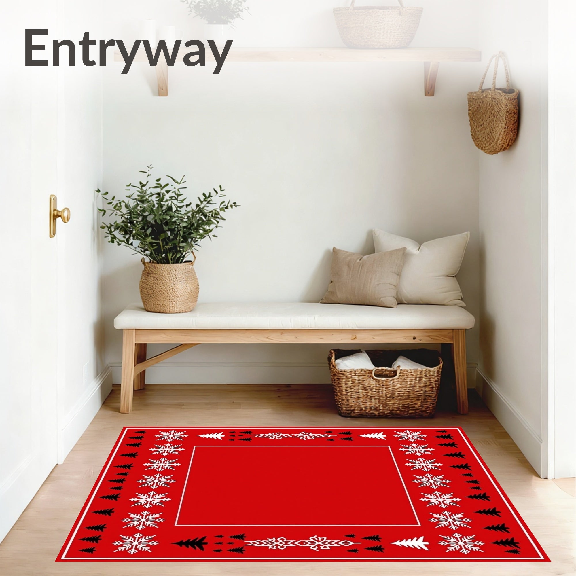 Flatwoven High Traffic Area Rug, Joyful Nordic Yuletide Evergreen Celebration Motif, Non Slip, Stain Resistant, Washable Area Rugs for Living Room, Bedroom (Red) Overview: