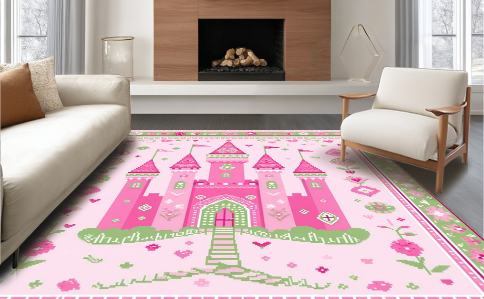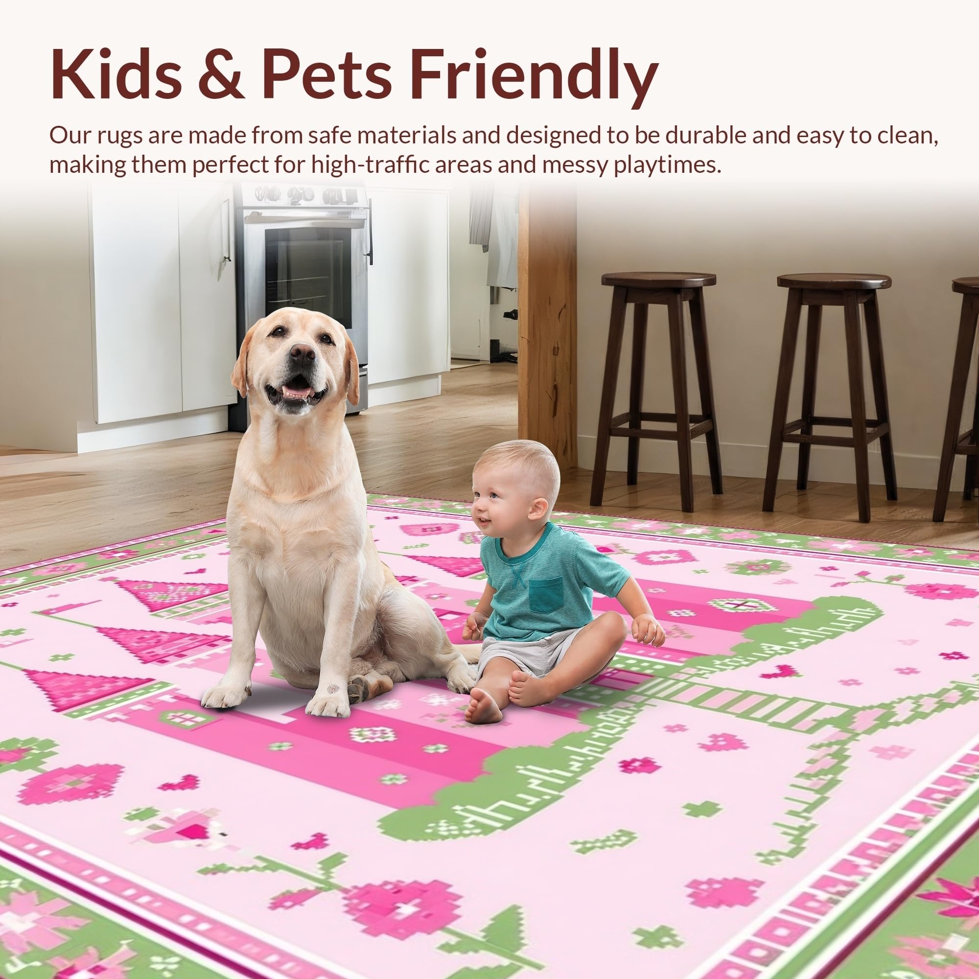 Ultra Soft Area Rug, Non Slip, Stain Resistant, Washable Area Rugs for Living Room, Bedroom, Joyful Pastel Dreamscape Design(Pink) Overview: