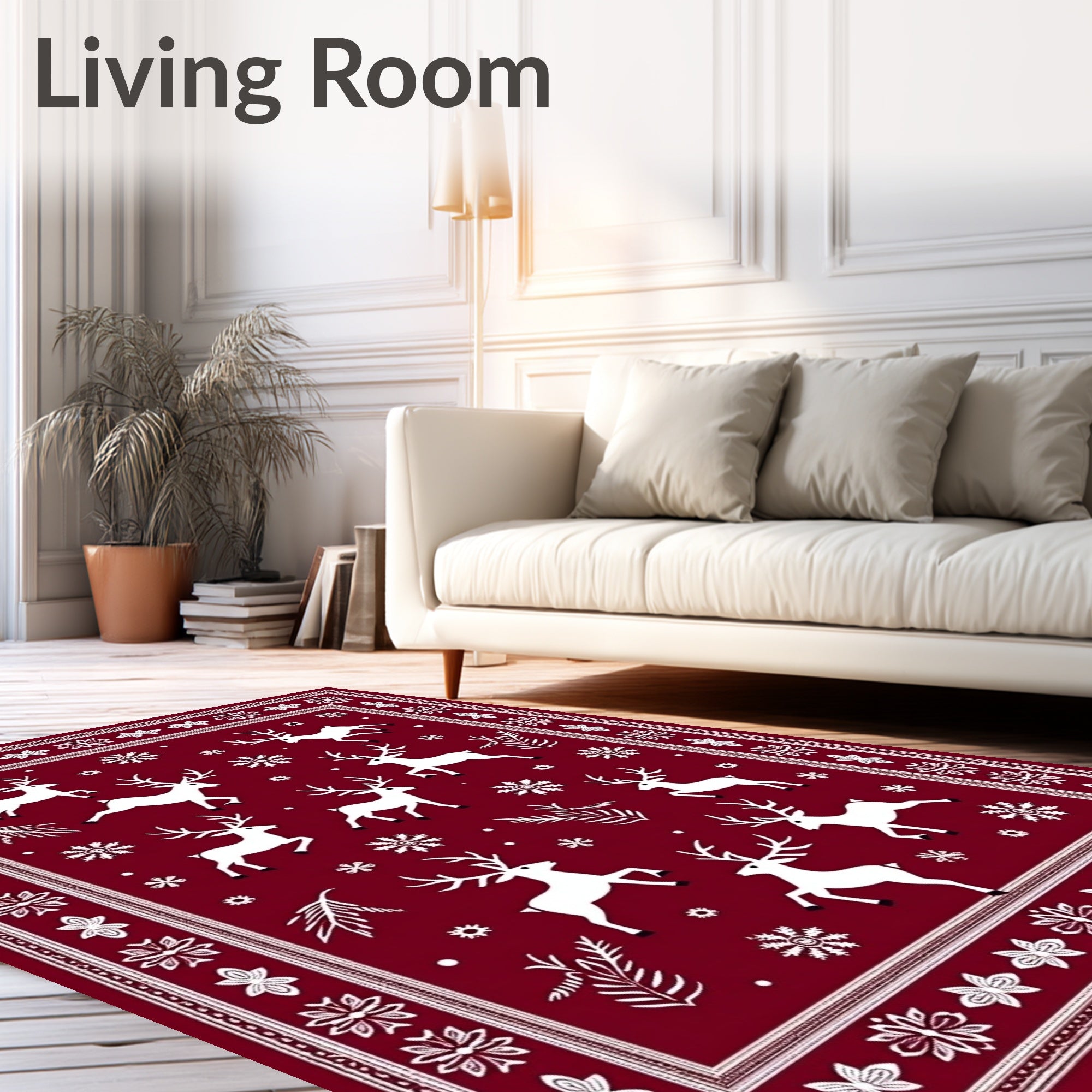 Ultra Soft Area Rug, Non Slip, Stain Resistant, Washable Area Rugs for Living Room, Bedroom, Joyful Reindeer Celebration Pathway(Red) Overview: