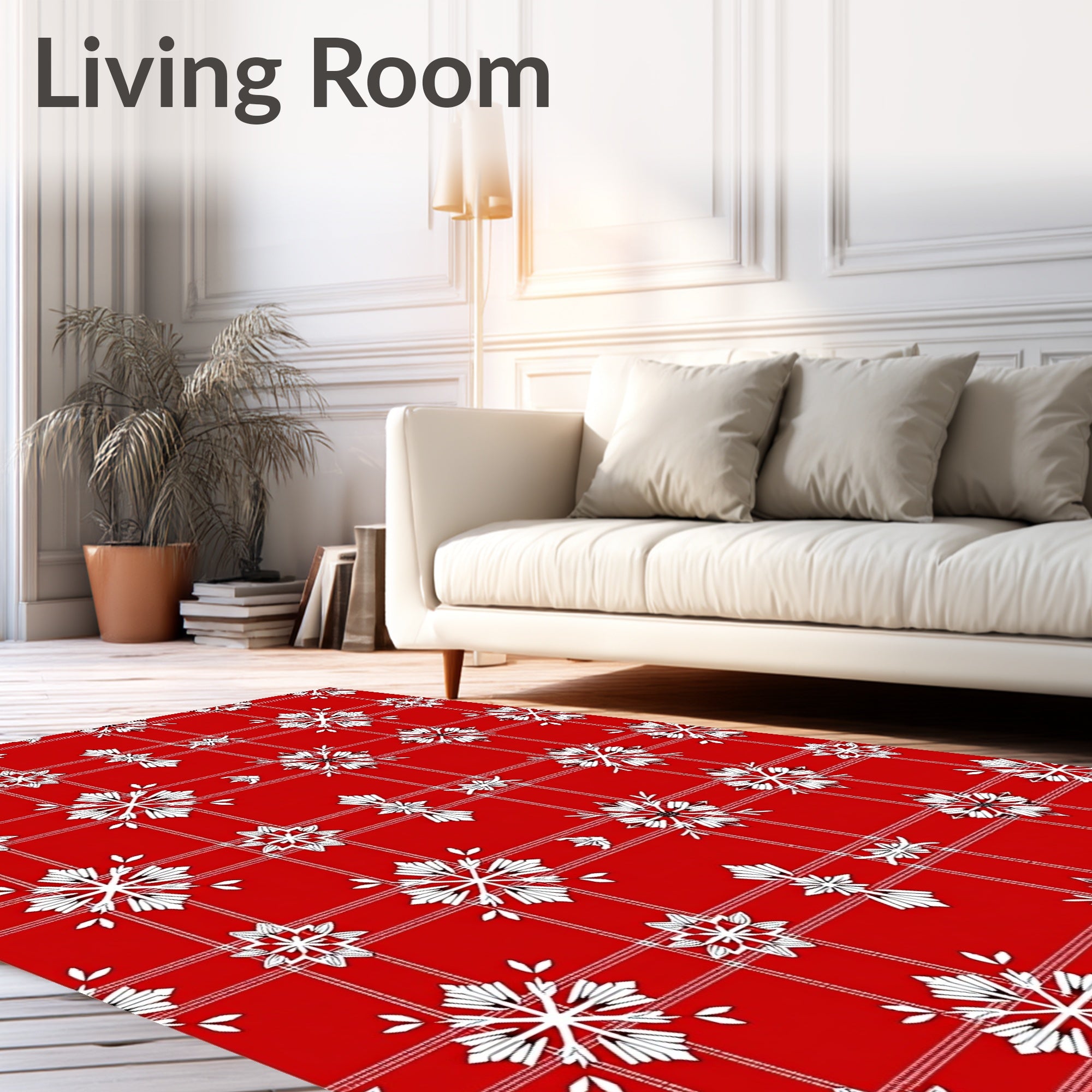 Ultra Soft Area Rug, Non Slip, Stain Resistant, Washable Area Rugs for Living Room, Bedroom, Joyful Tartan Crystal Wonderland(Red) Overview: