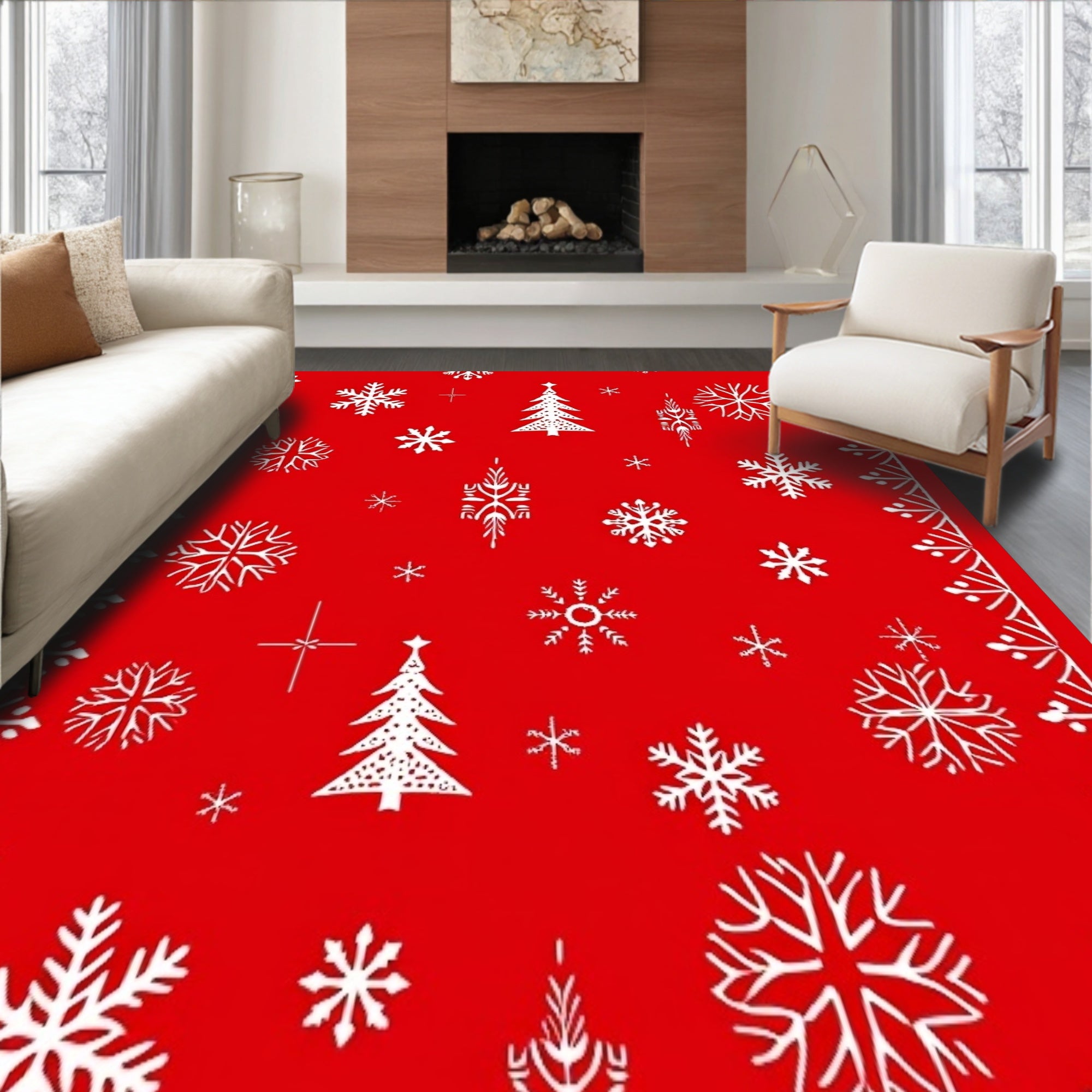 Ultra Soft Area Rug, Non Slip, Stain Resistant, Washable Area Rugs for Living Room, Bedroom, Joyful Winter Wonderland Celebration Path Adornment(Red) Overview: