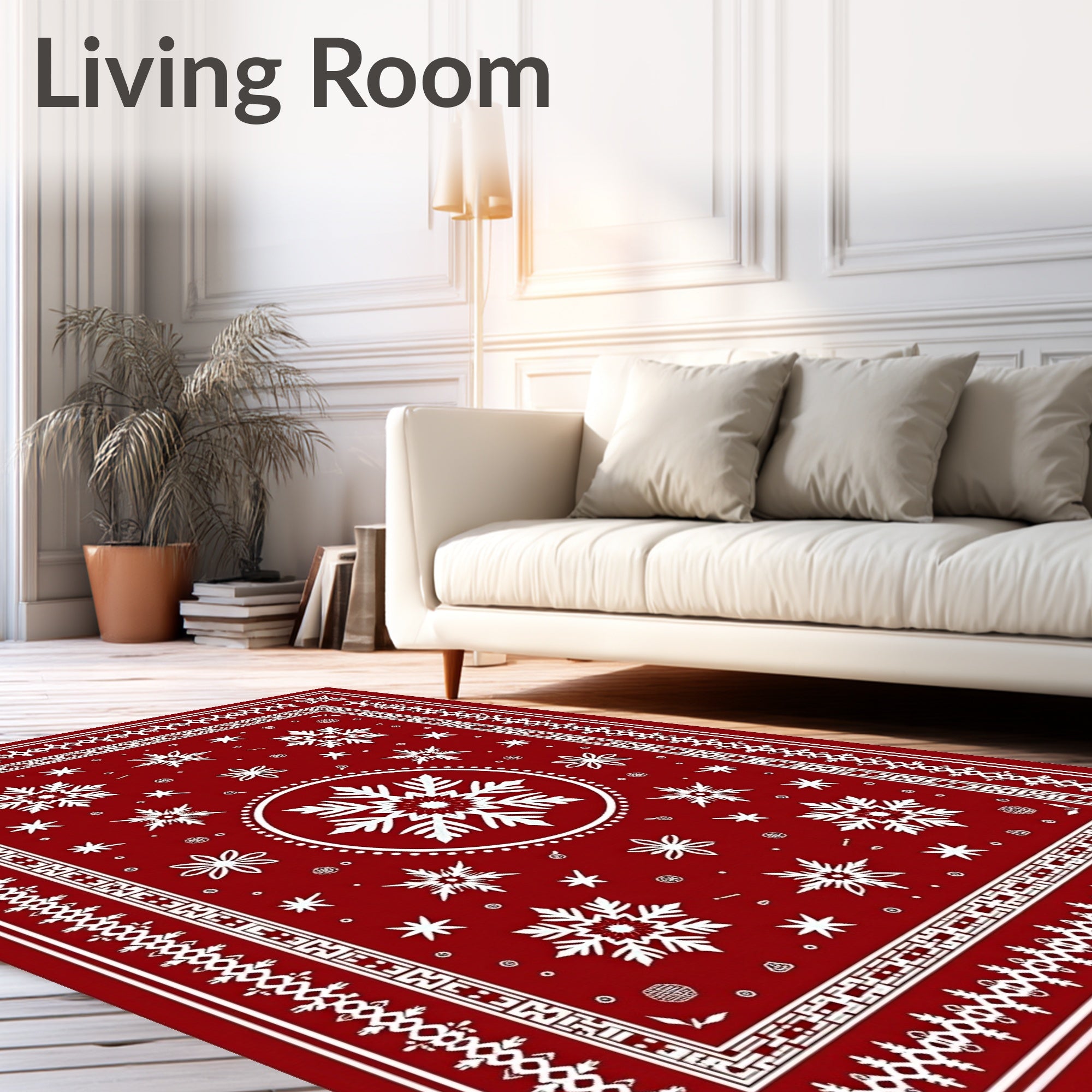 Ultra Soft Area Rug, Non Slip, Stain Resistant, Washable Area Rugs for Living Room, Bedroom, Joyful Winter Wonderland Decorative Surface(Red) Overview: