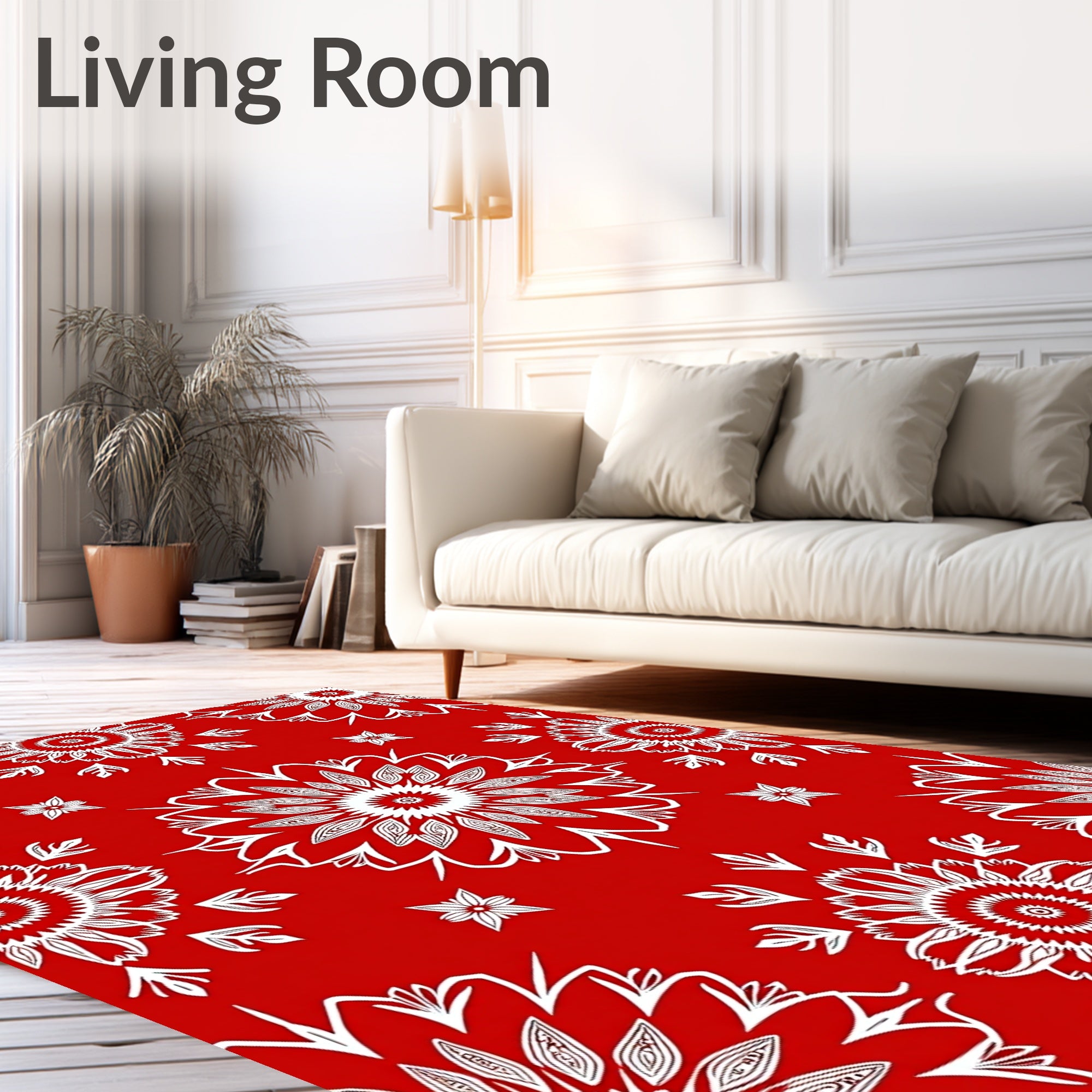 Ultra Soft Area Rug, Non Slip, Stain Resistant, Washable Area Rugs for Living Room, Bedroom, Jubilant Floral Kaleidoscope Radial Accent Throw(Red) Overview: