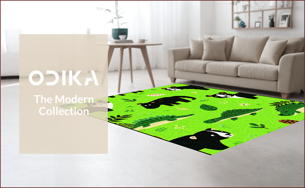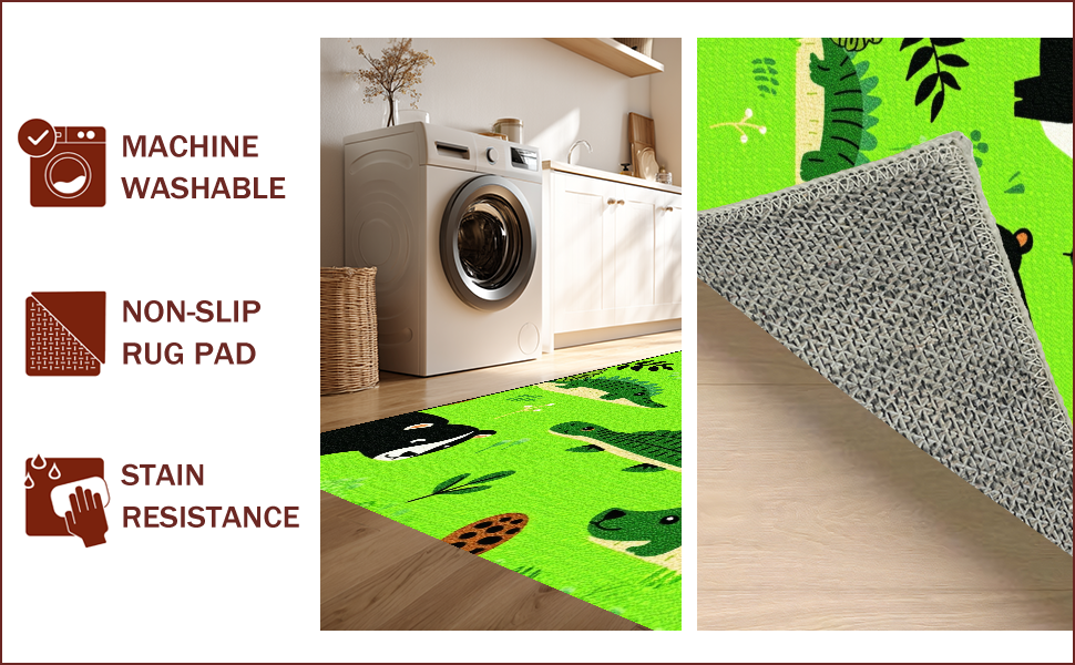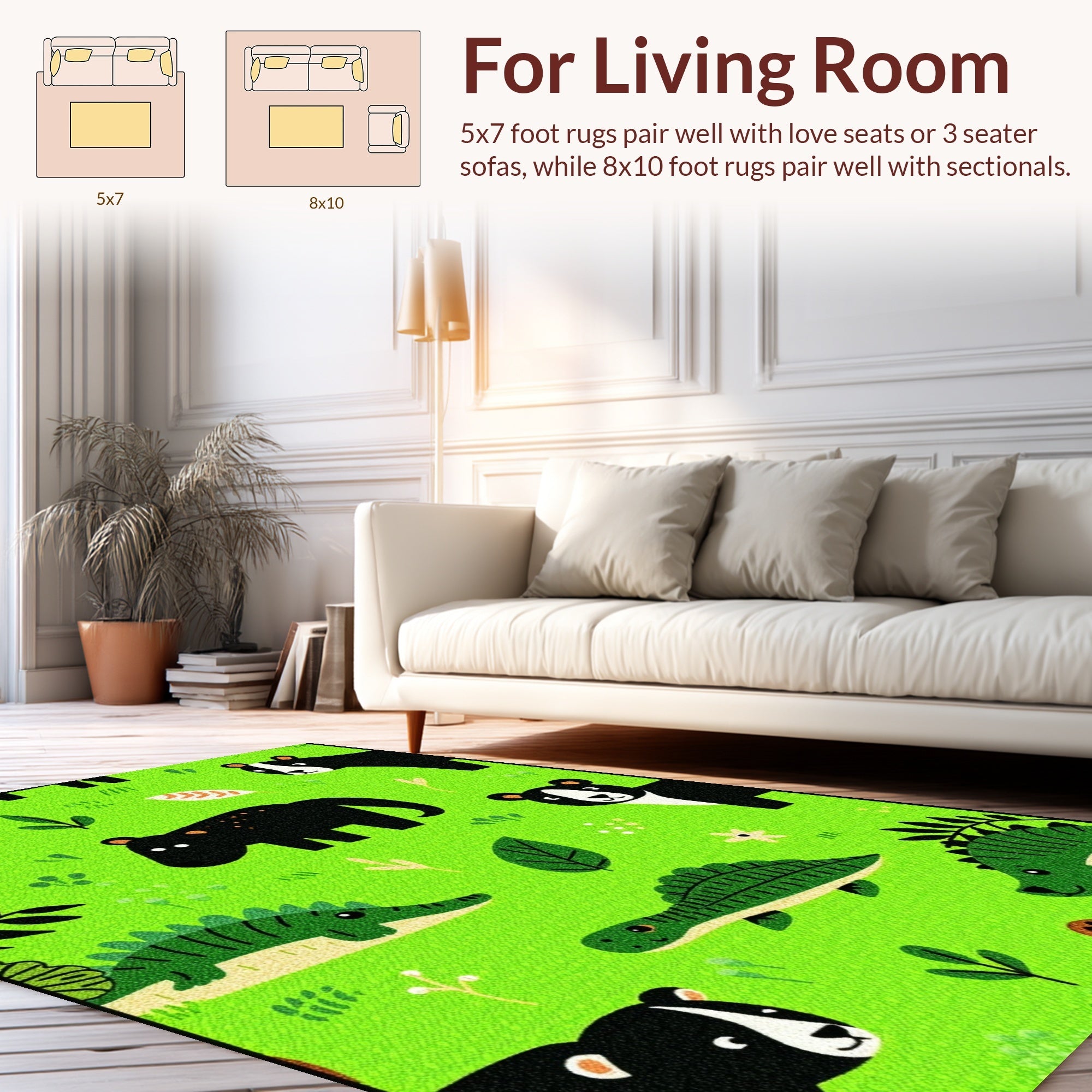 Ultra Soft Area Rug, Non Slip, Stain Resistant, Washable Area Rugs for Living Room, Bedroom, Jungle Animal Nursery(Green) Overview: