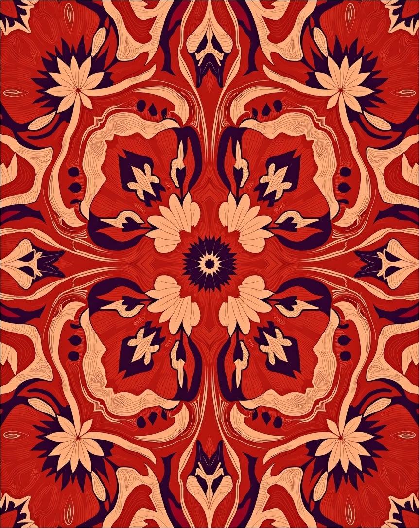 Kaleidoscope Bloom Textured with Symmetrical Petal Array(Red)