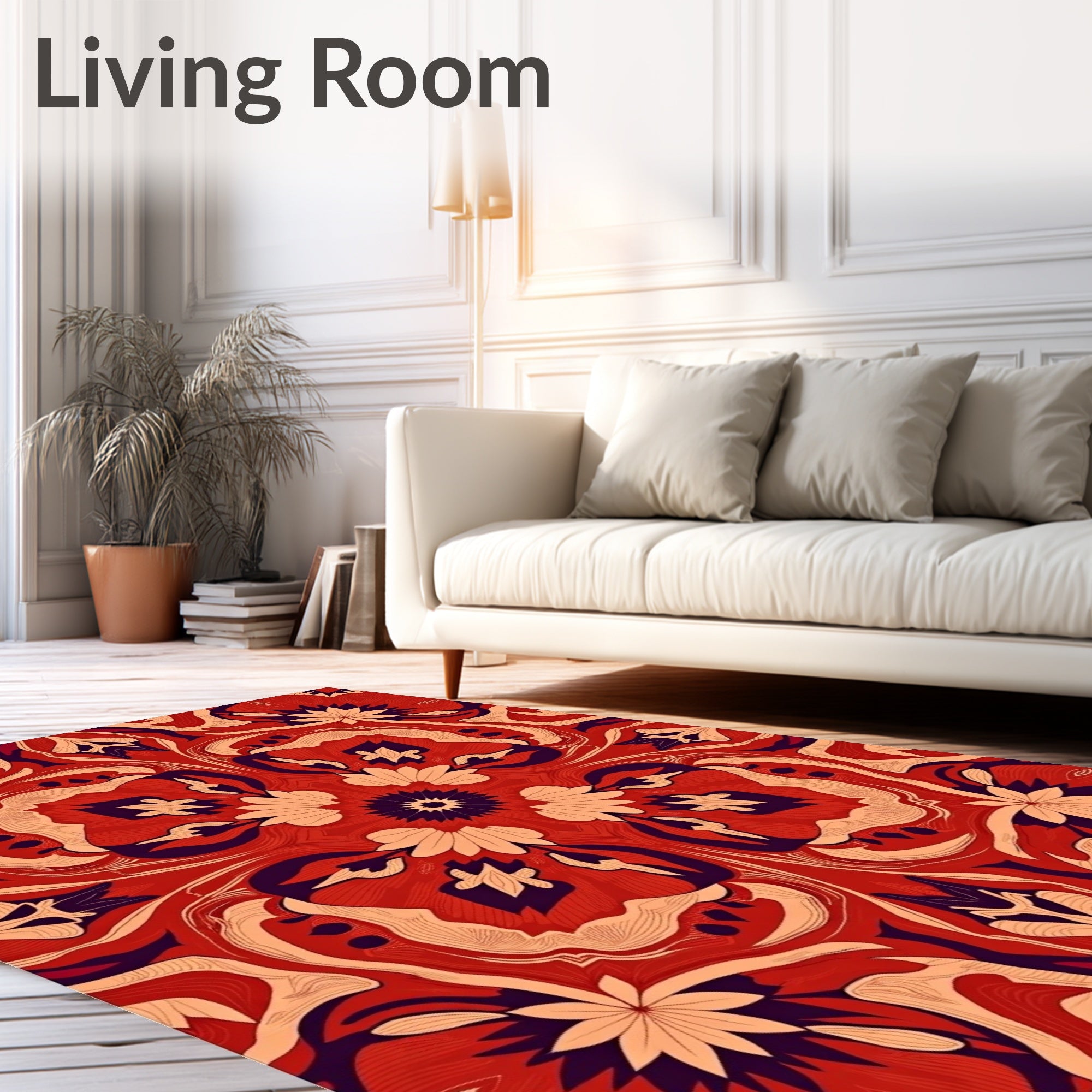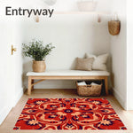 Ultra Soft Area Rug, Non Slip, Stain Resistant, Washable Area Rugs for Living Room, Bedroom, Kaleidoscope Bloom Textured with Symmetrical Petal Array(Red) Overview: