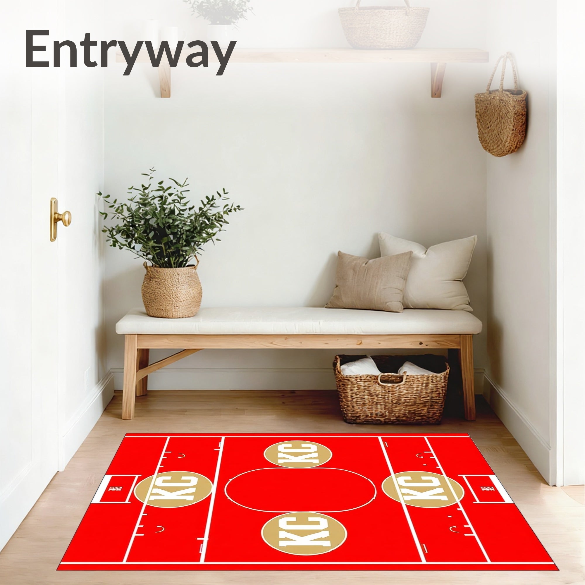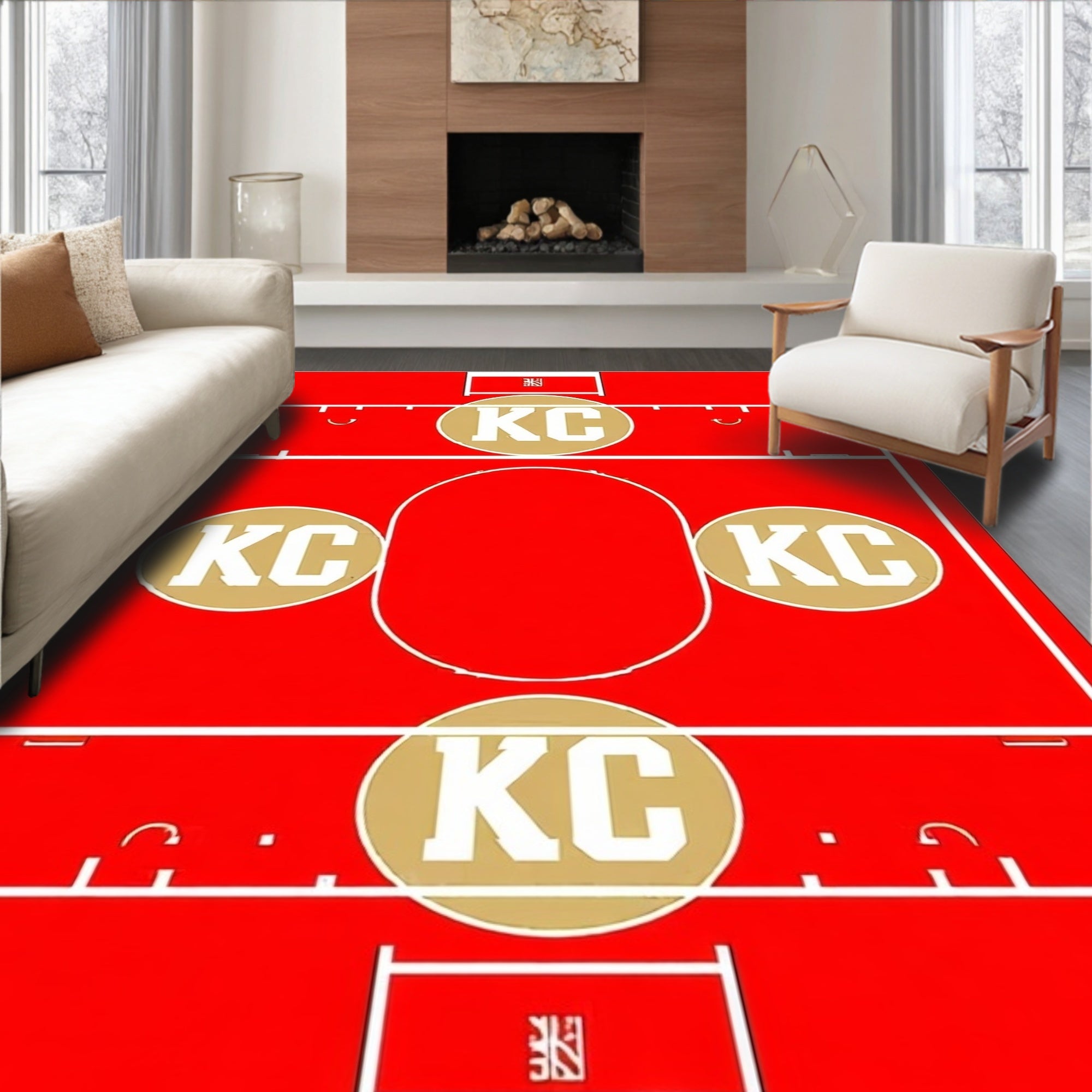 Flatwoven High Traffic Area Rug, Kansas City KC Emblem Bold Sports Themed, Non Slip, Stain Resistant, Washable Area Rugs for Living Room, Bedroom (Red) Overview: