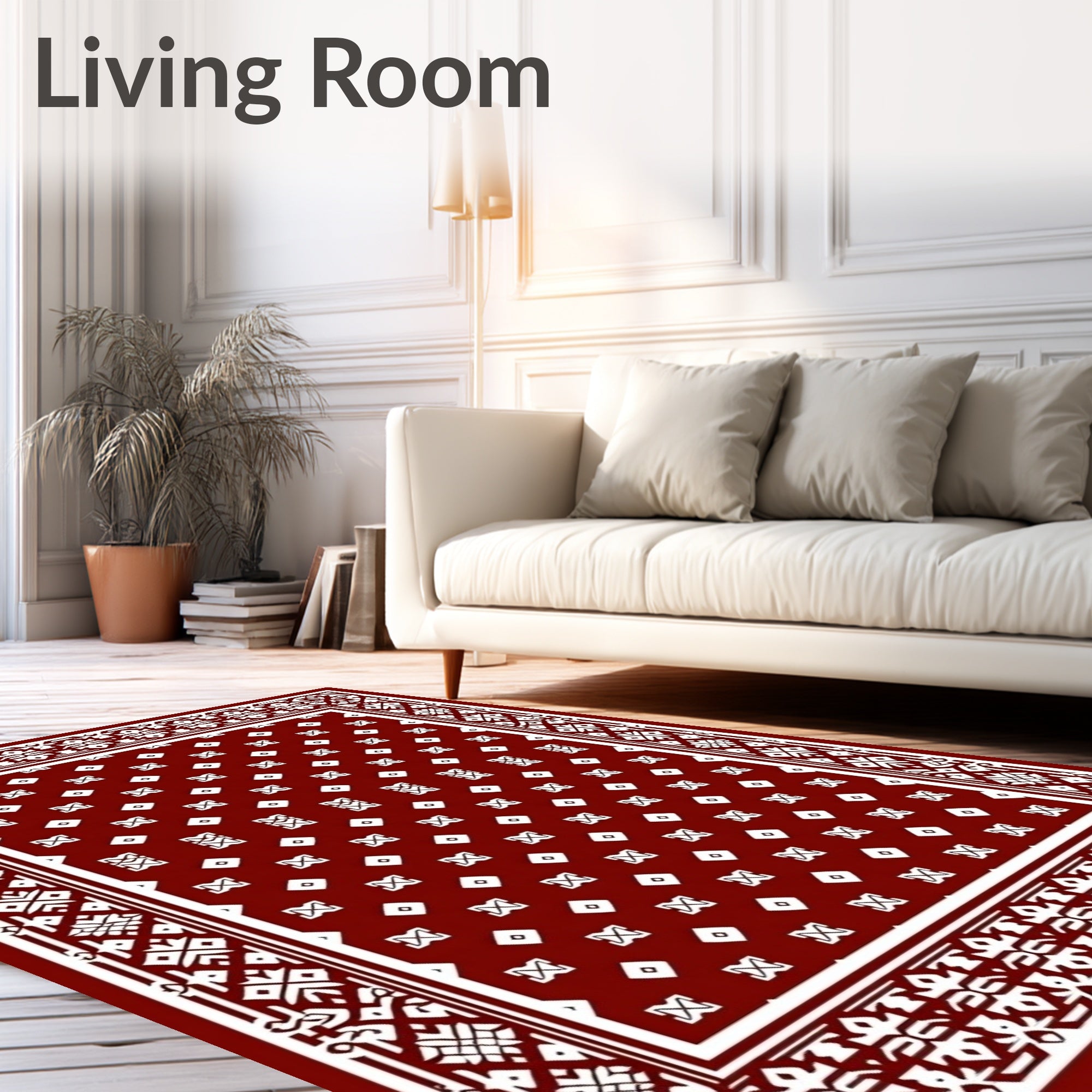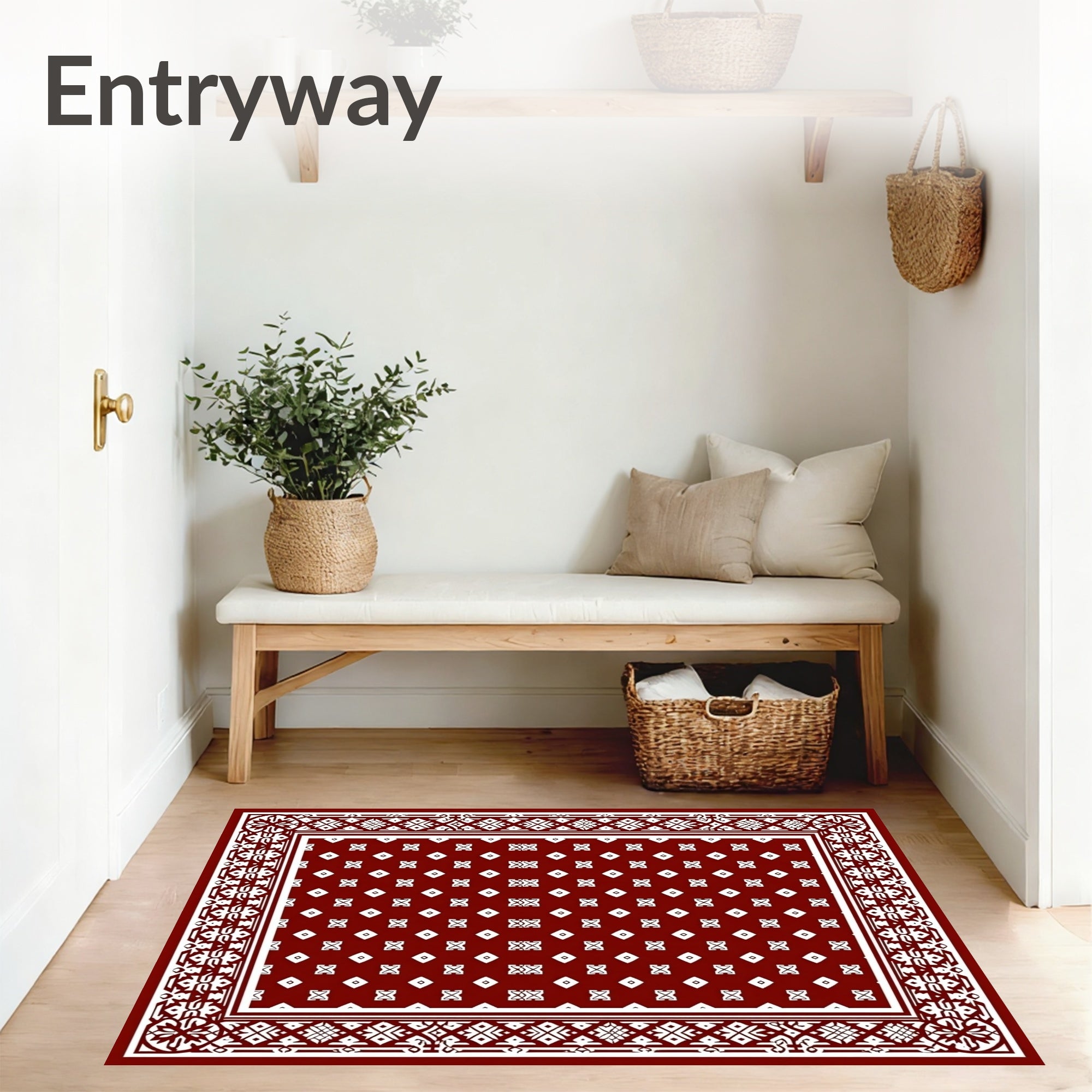 Ultra Soft Area Rug, Non Slip, Stain Resistant, Washable Area Rugs for Living Room, Bedroom, Lattice Framework Boundary Exquisite Handsome Trim(Red) Overview: