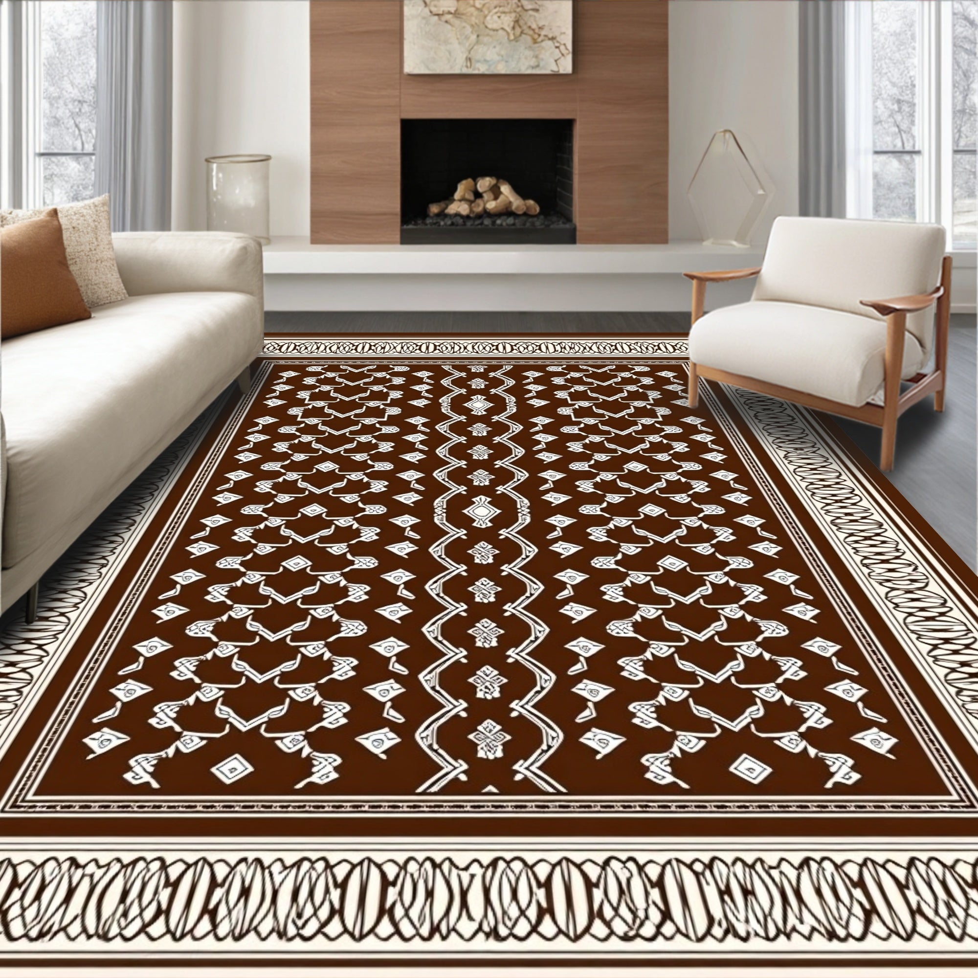 Flatwoven High Traffic Area Rug, Lattice with Interlocking Framework, Non Slip, Stain Resistant, Washable Area Rugs for Living Room, Bedroom (Brown) Overview: