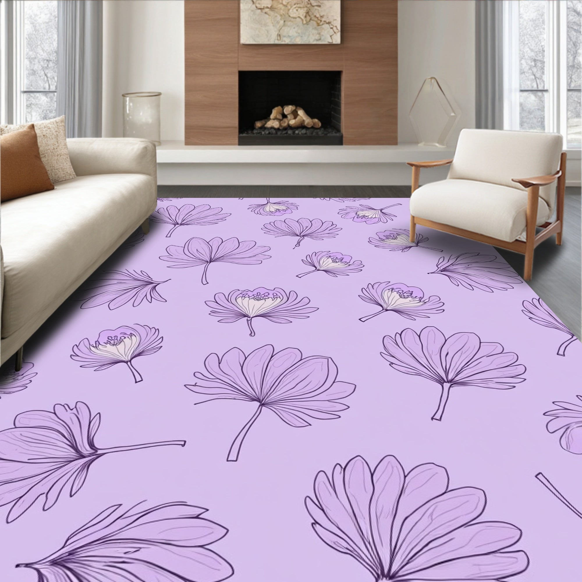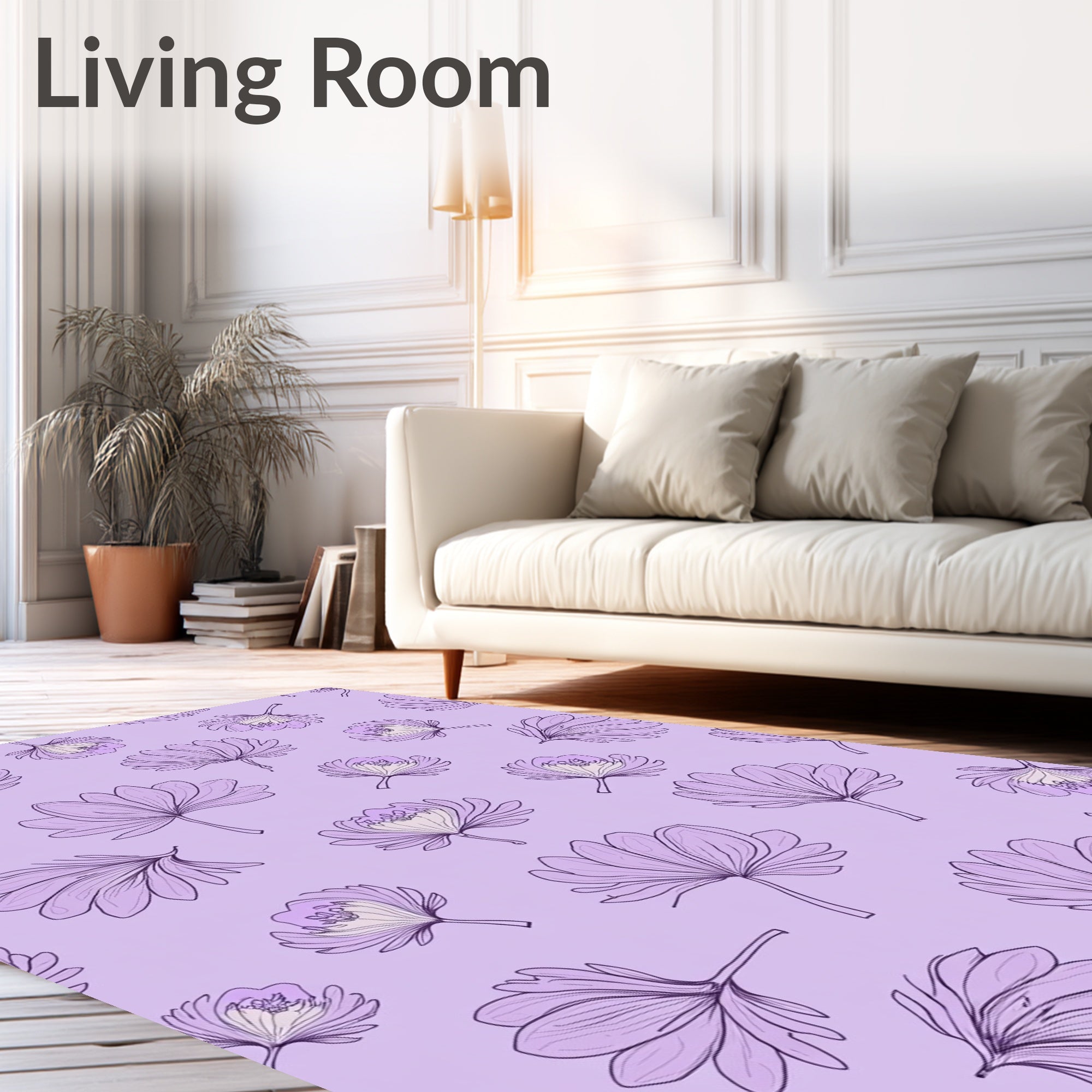 Flatwoven High Traffic Area Rug, Lavender Bloom Floral Tapestry Collection Accent, Non Slip, Stain Resistant, Washable Area Rugs for Living Room, Bedroom (Purple) Overview: