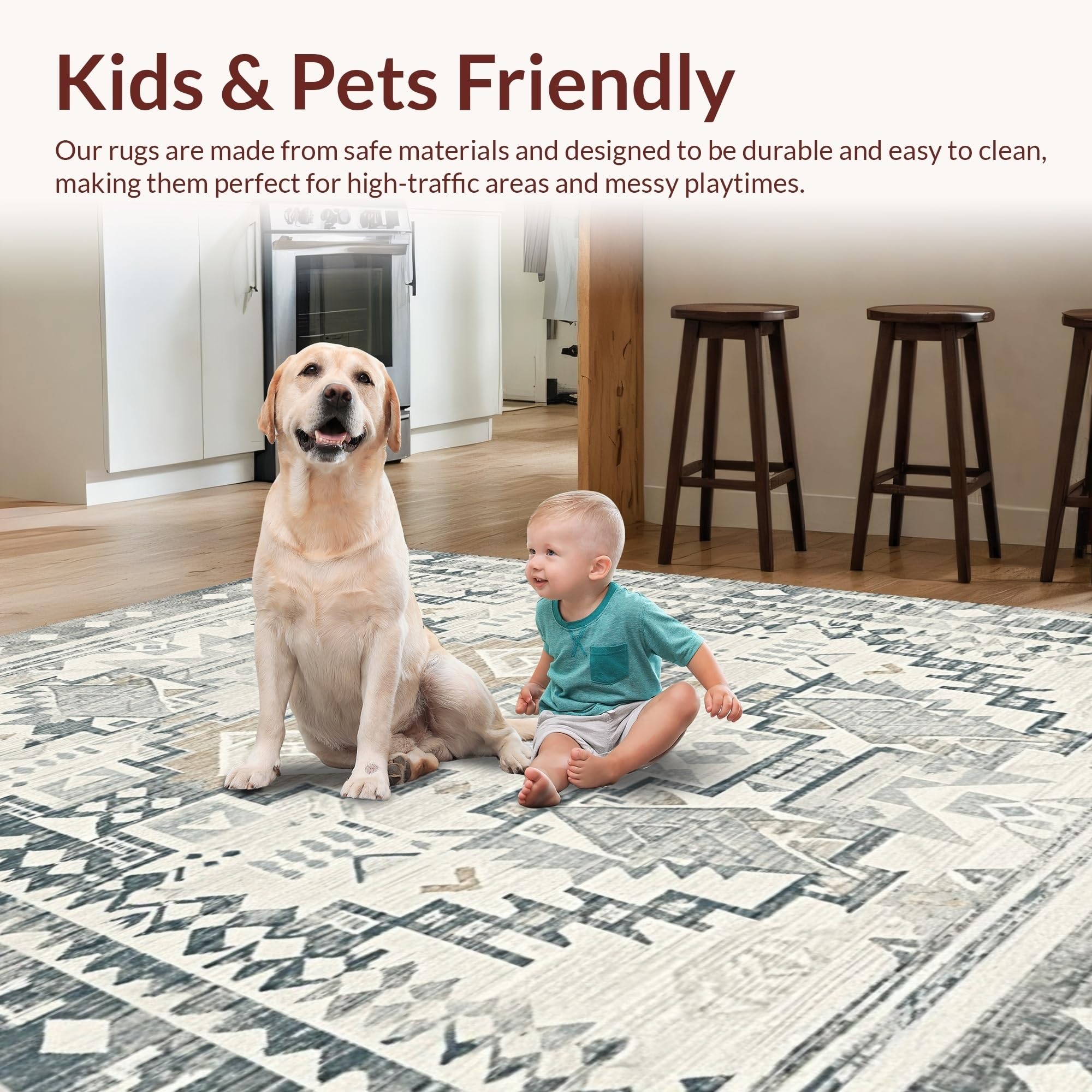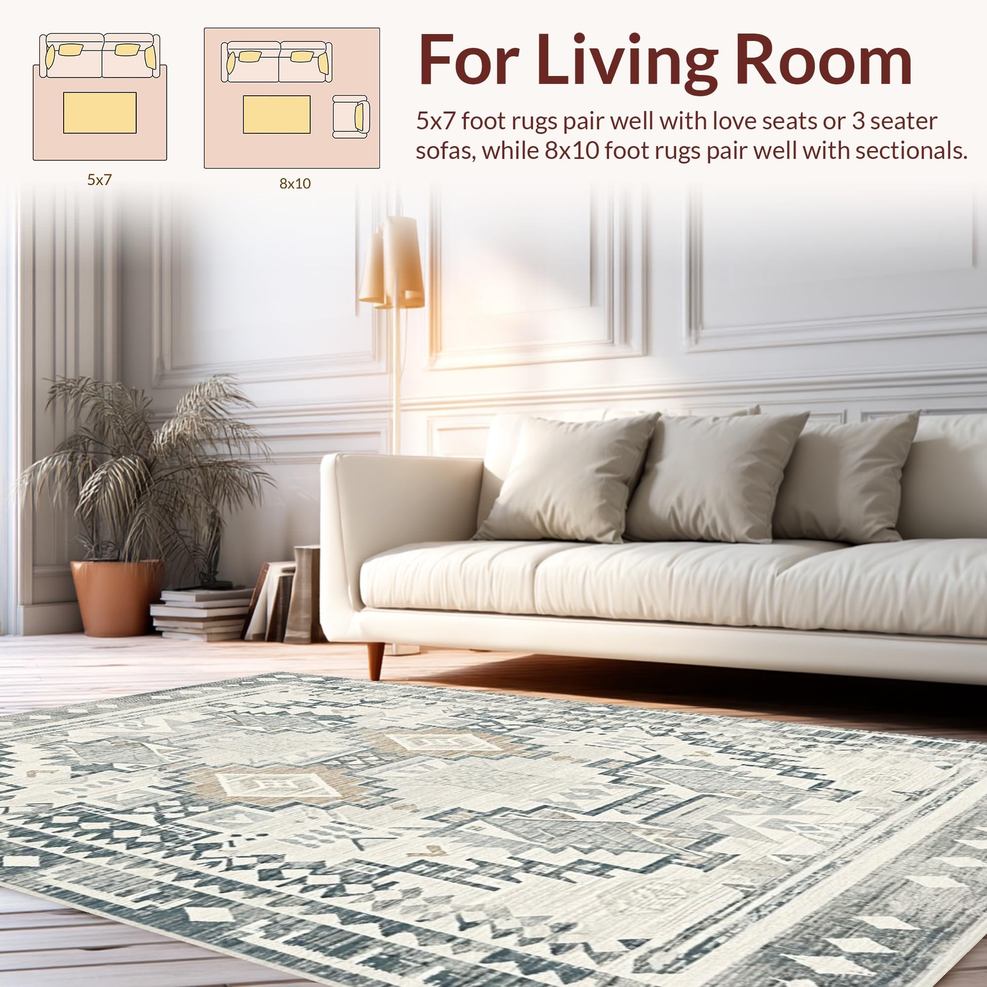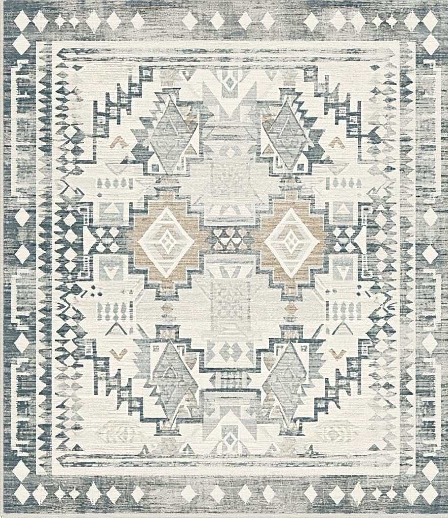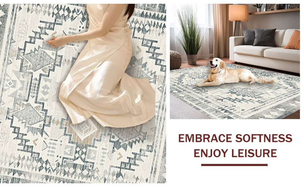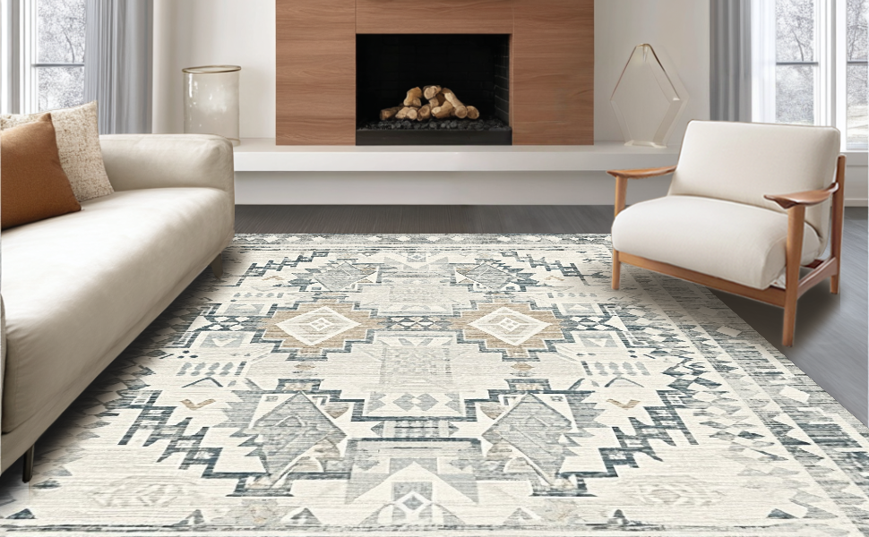 Ultra Soft Area Rug, Non Slip, Stain Resistant, Washable Area Rugs for Living Room, Bedroom, Lavish Earthy Geometric Vibes(Gray) Overview: