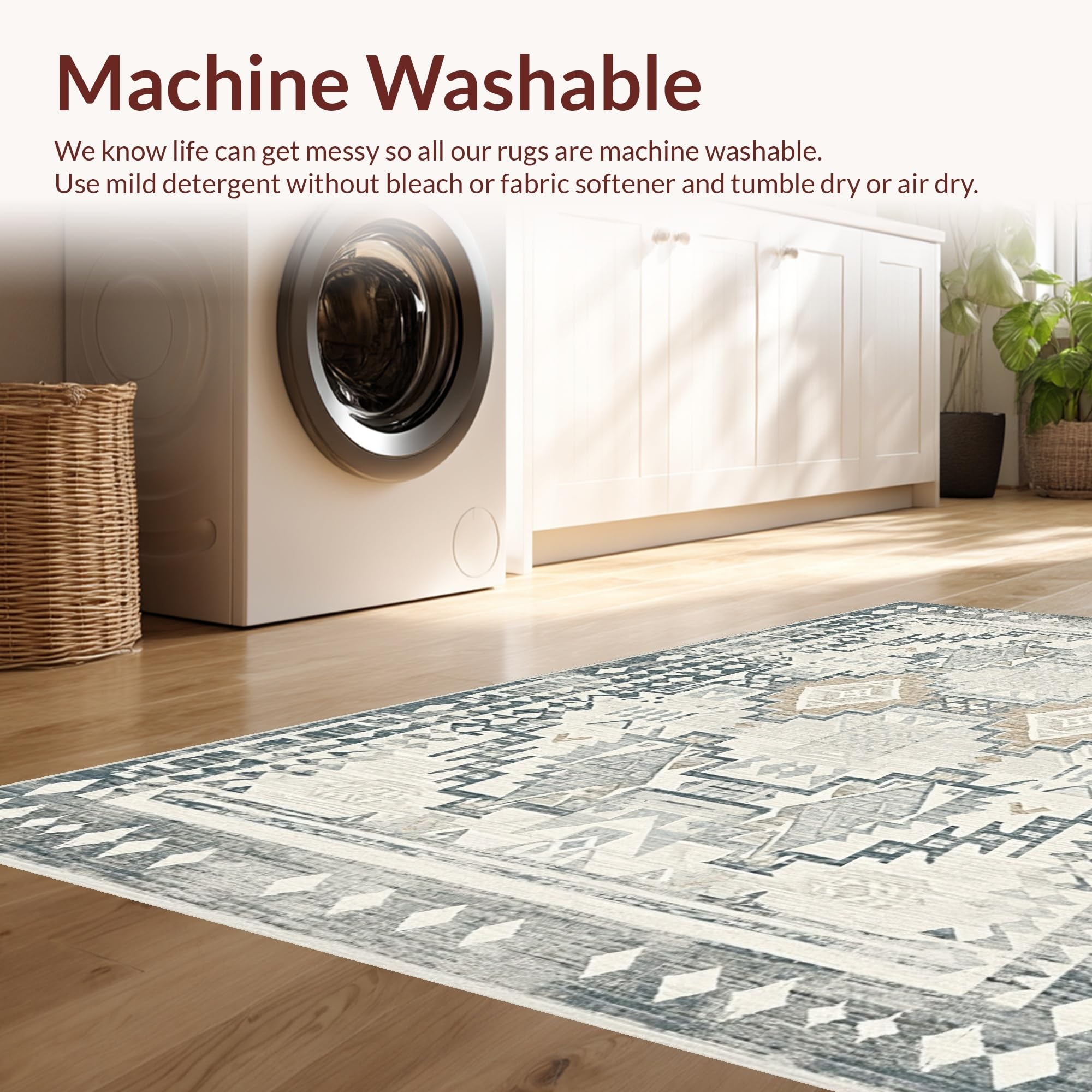 - Machine Washable: Our rugs can be easily thrown in the wash machine.