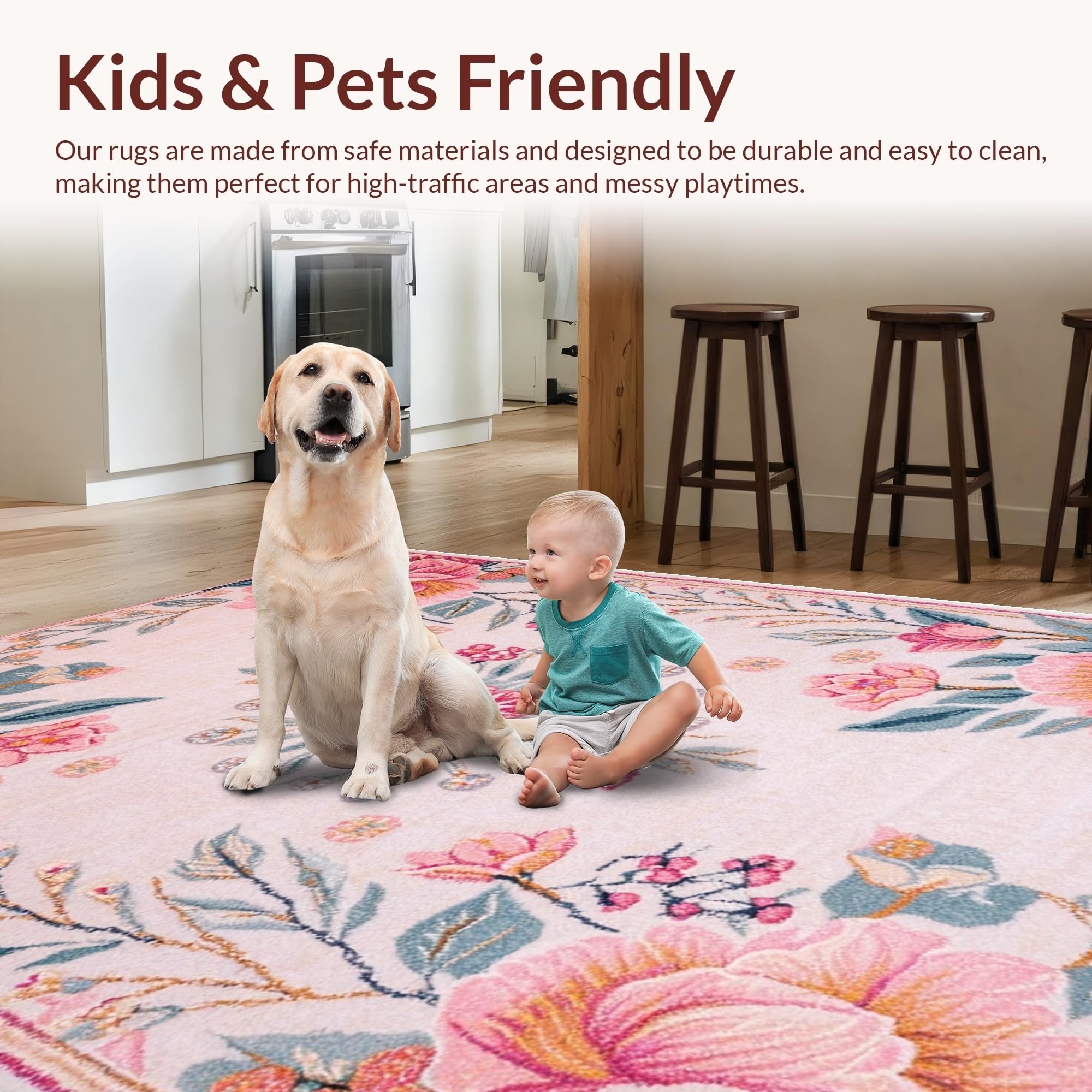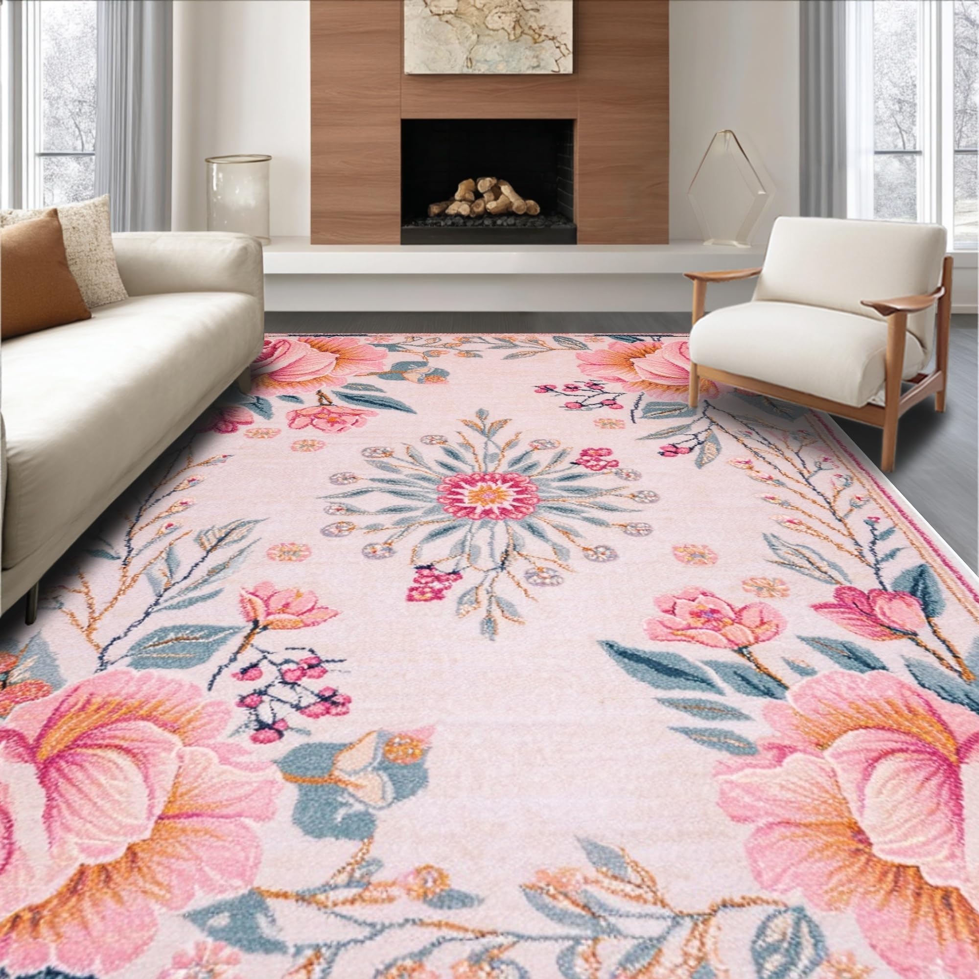 Ultra Soft Area Rug, Non Slip, Stain Resistant, Washable Area Rugs for Living Room, Bedroom, Light Pink Non-Slip Nursery Playroom Carpet(Pink) Overview: