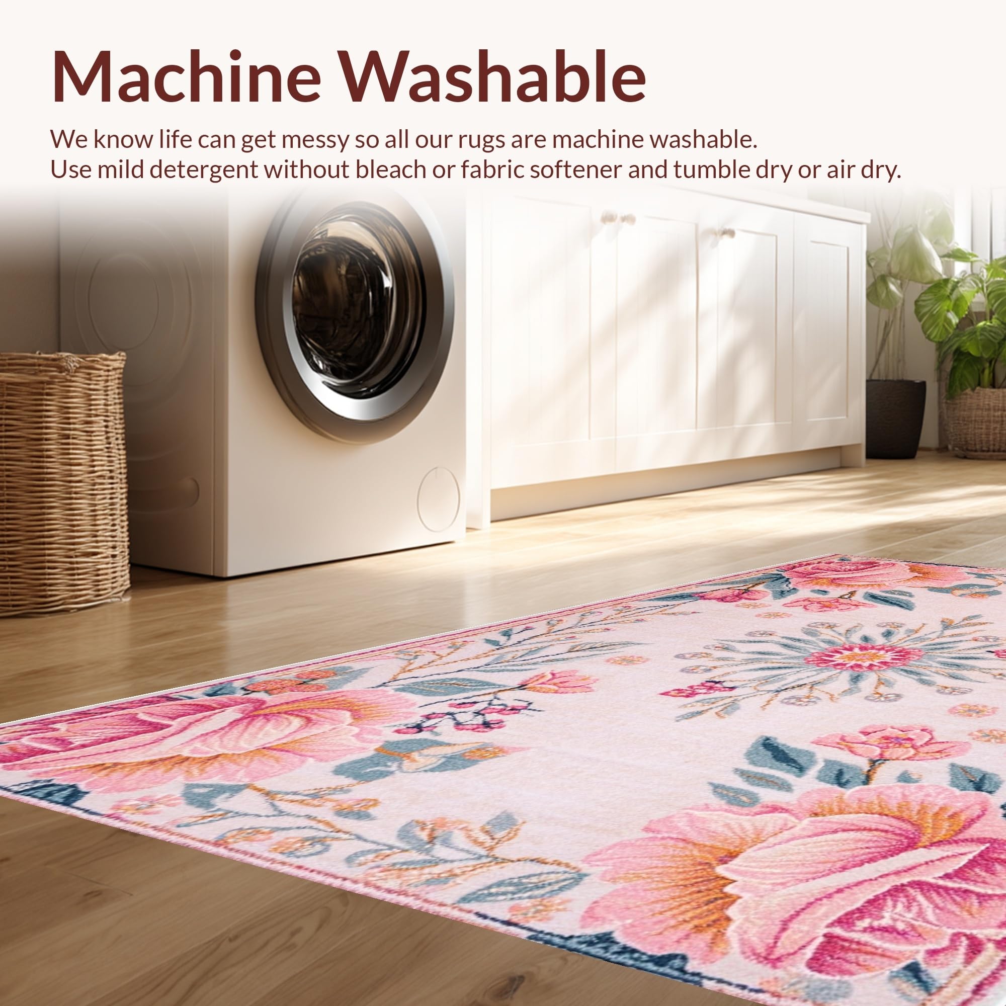 - Machine Washable: Our rugs can be easily thrown in the wash machine.