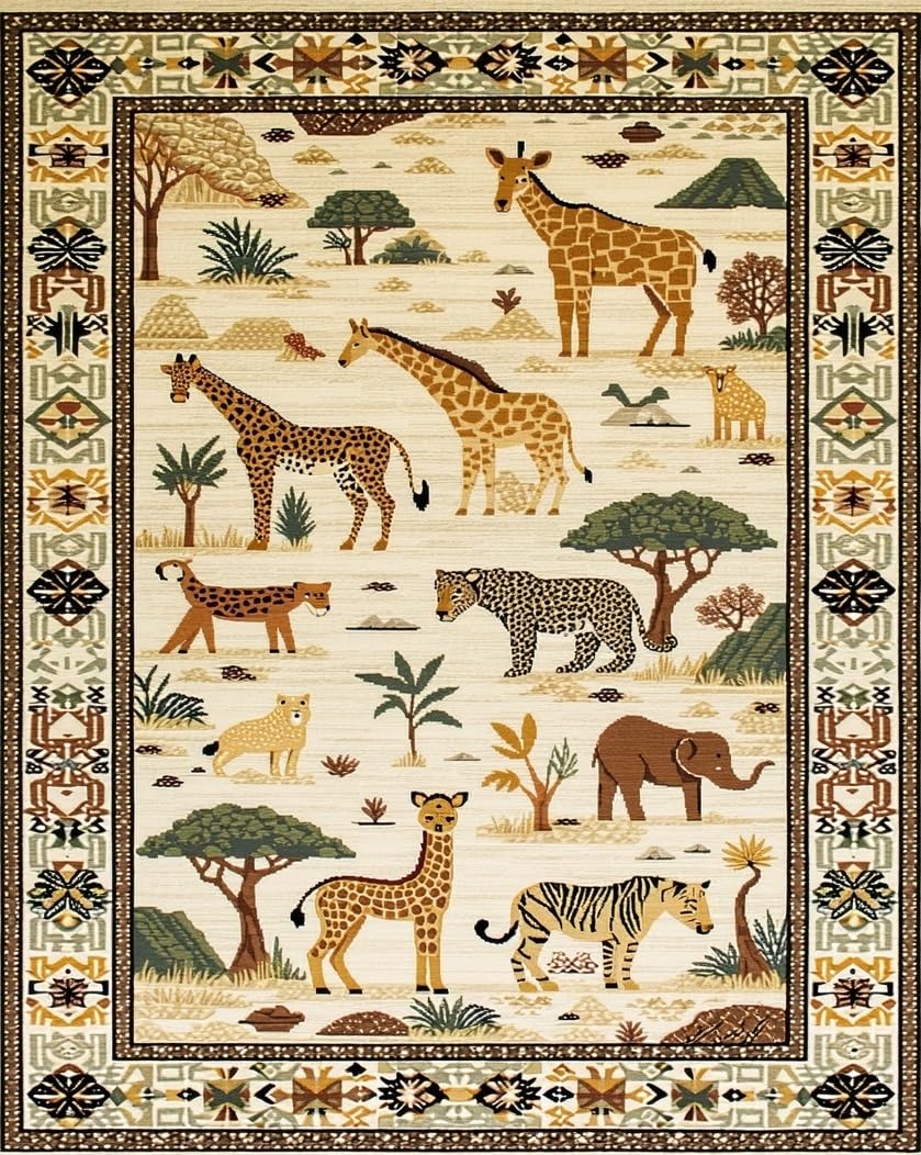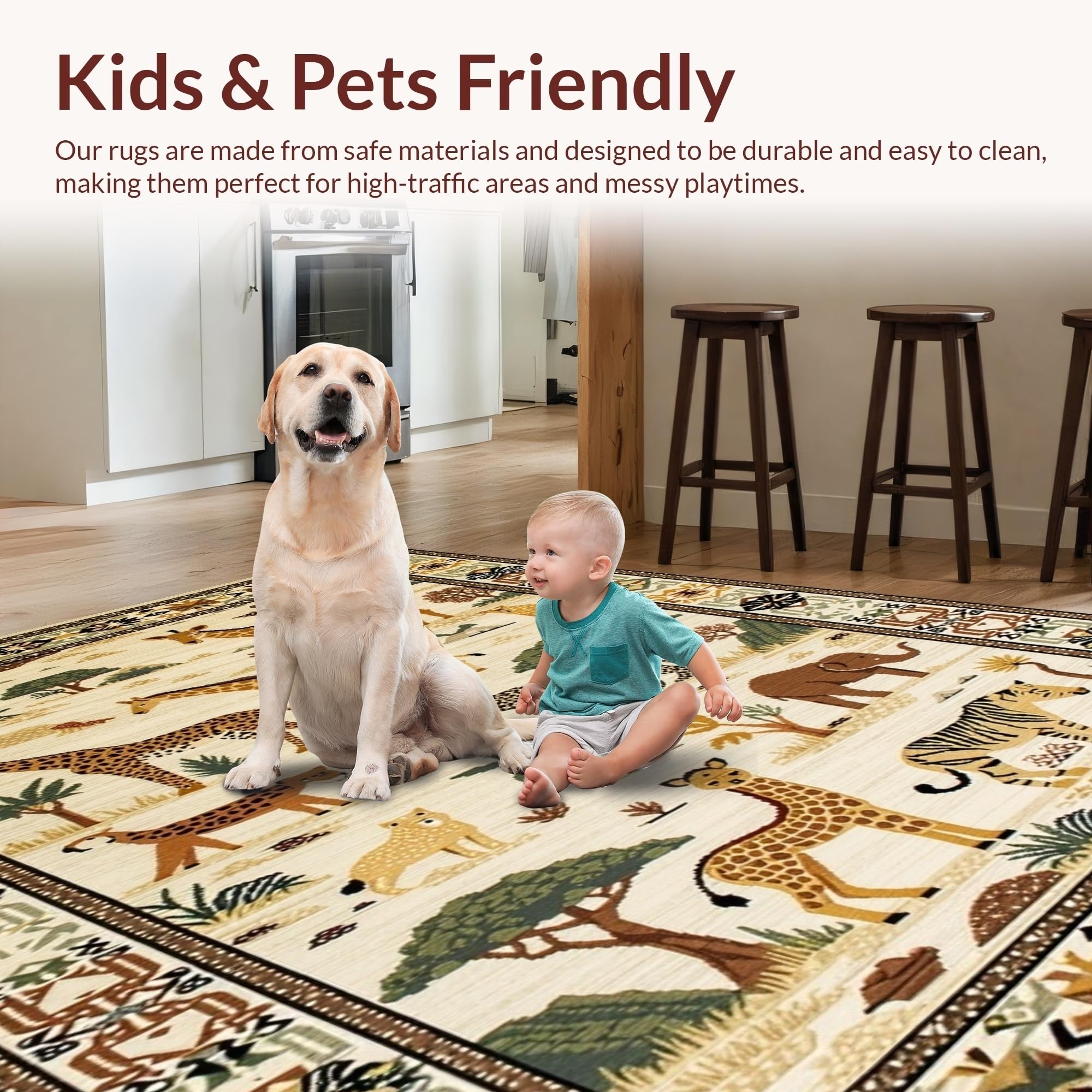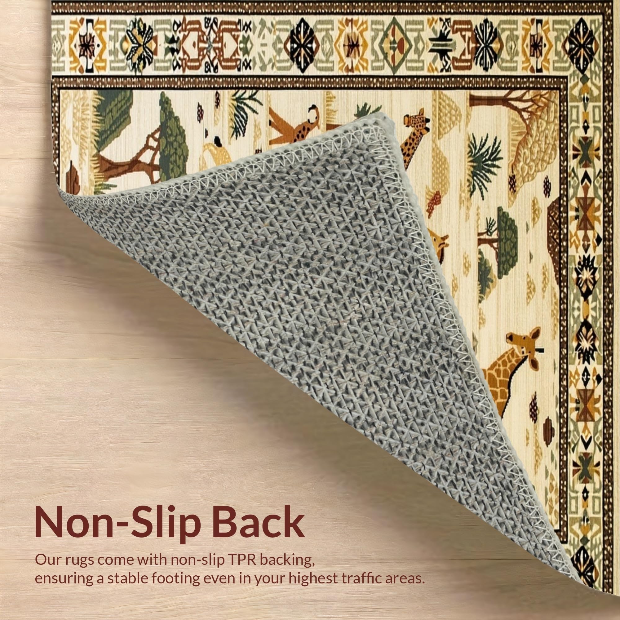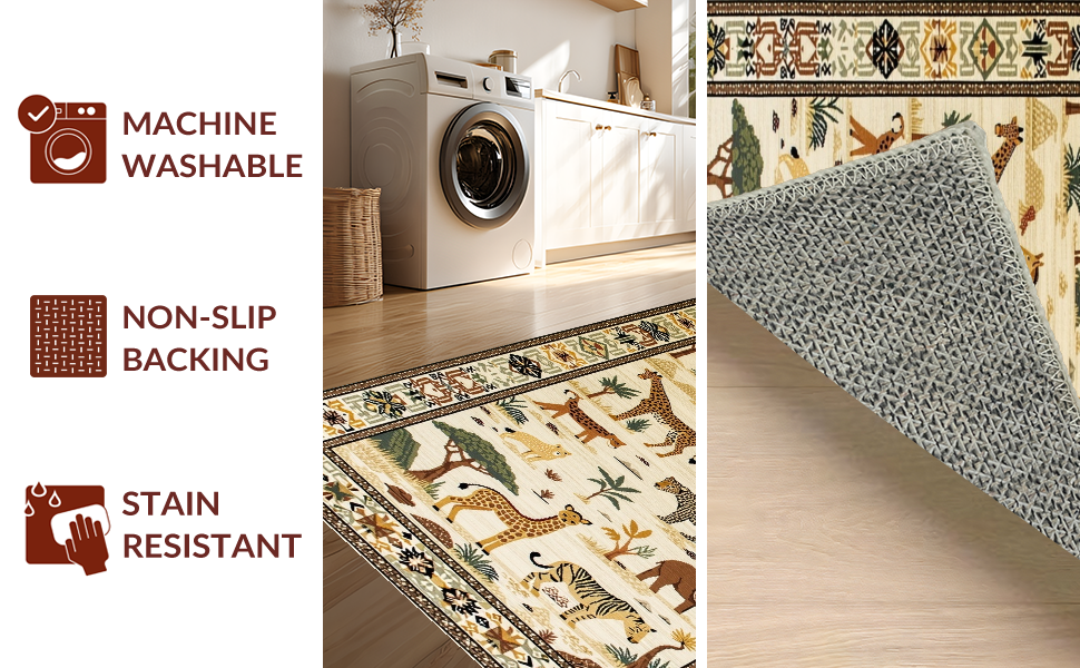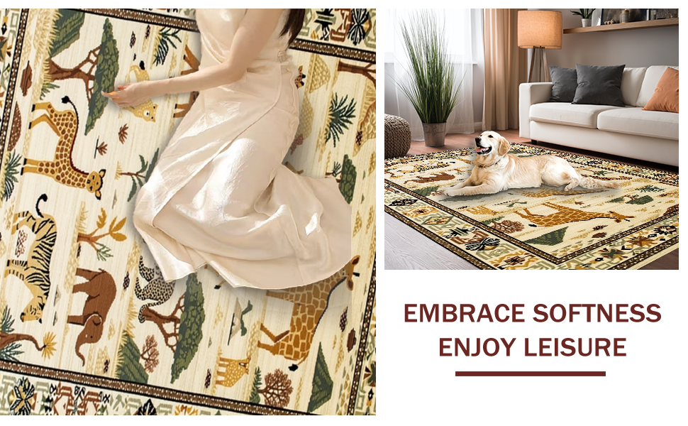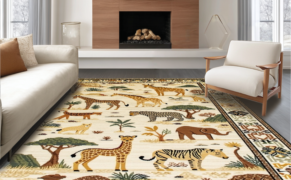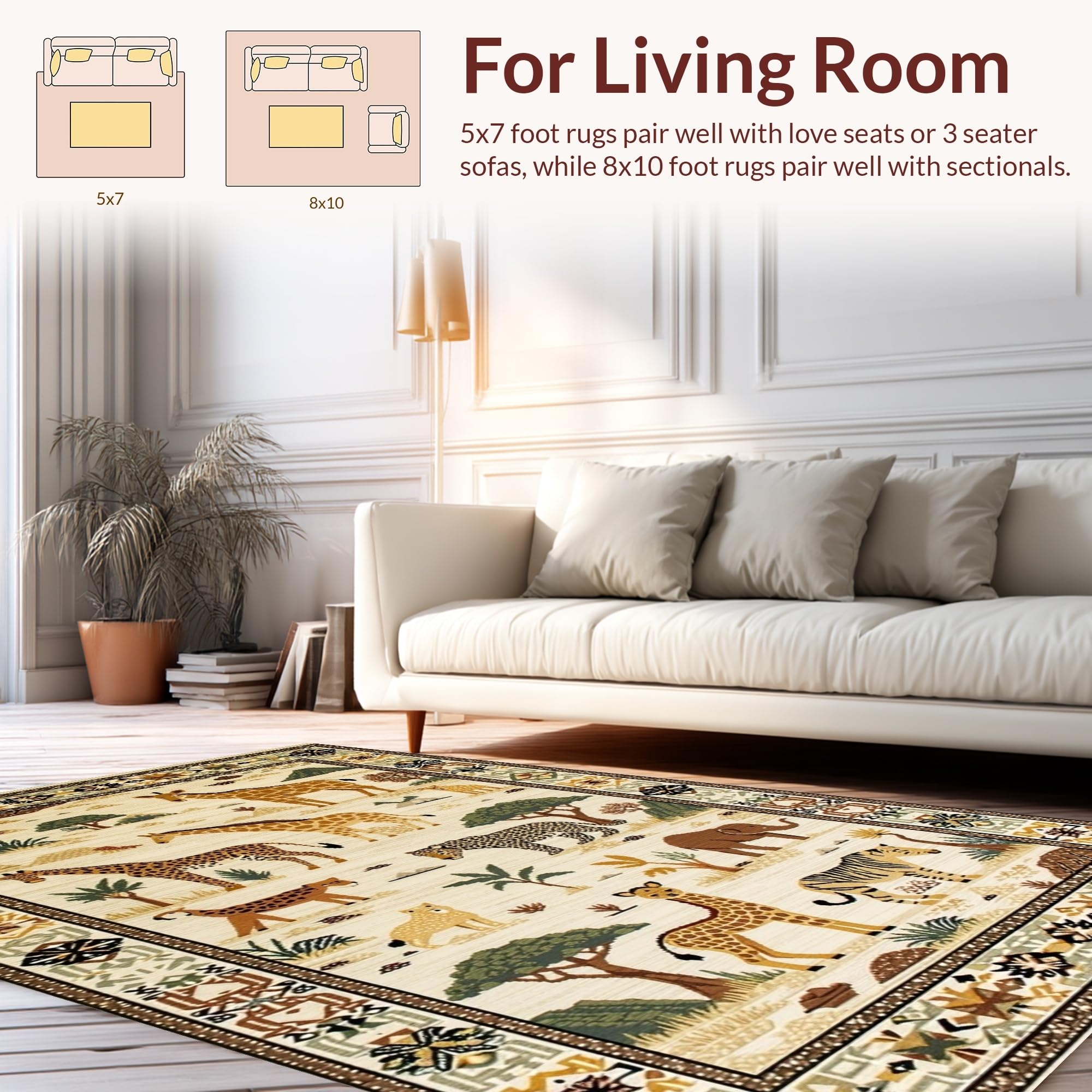 Ultra Soft Area Rug, Non Slip, Stain Resistant, Washable Area Rugs for Living Room, Bedroom, Lightweight Travel-Friendly Jungle Aesthetic(Beige) Overview: