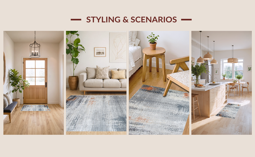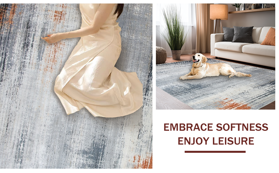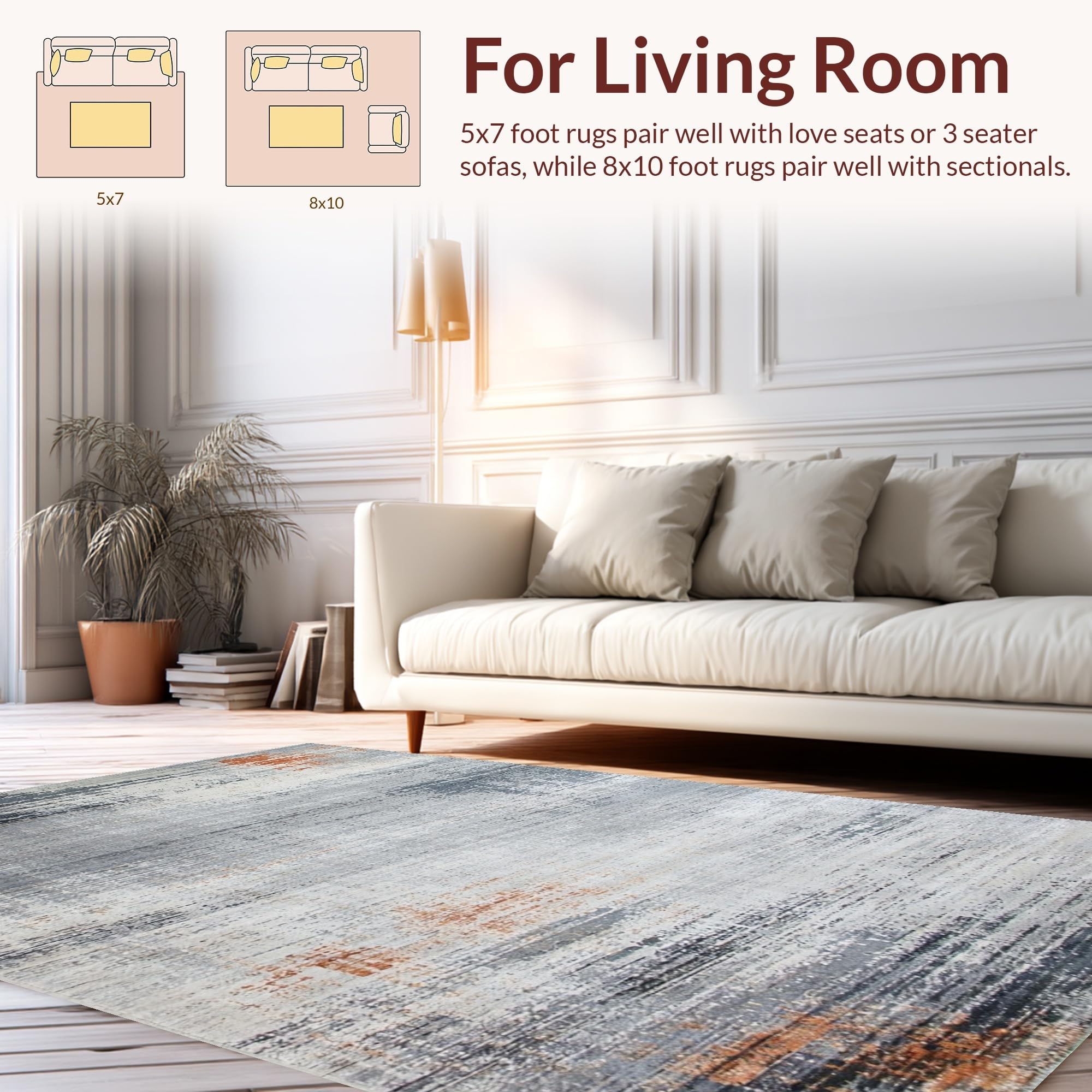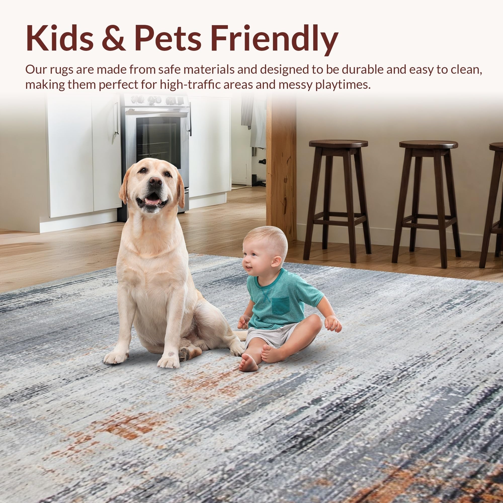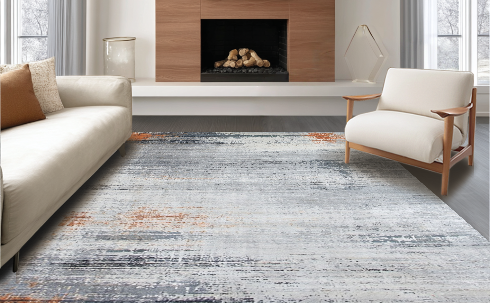 Ultra Soft Area Rug, Non Slip, Stain Resistant, Washable Area Rugs for Living Room, Bedroom, Lively Abstract Brushstroke Ensemble(Gray) Overview: