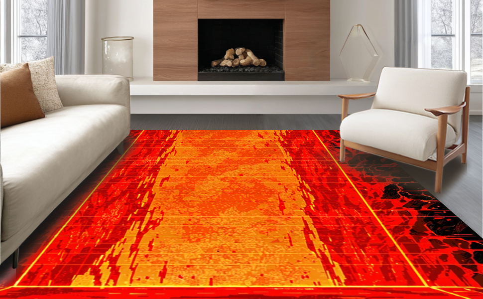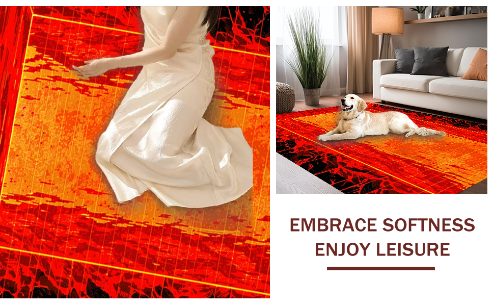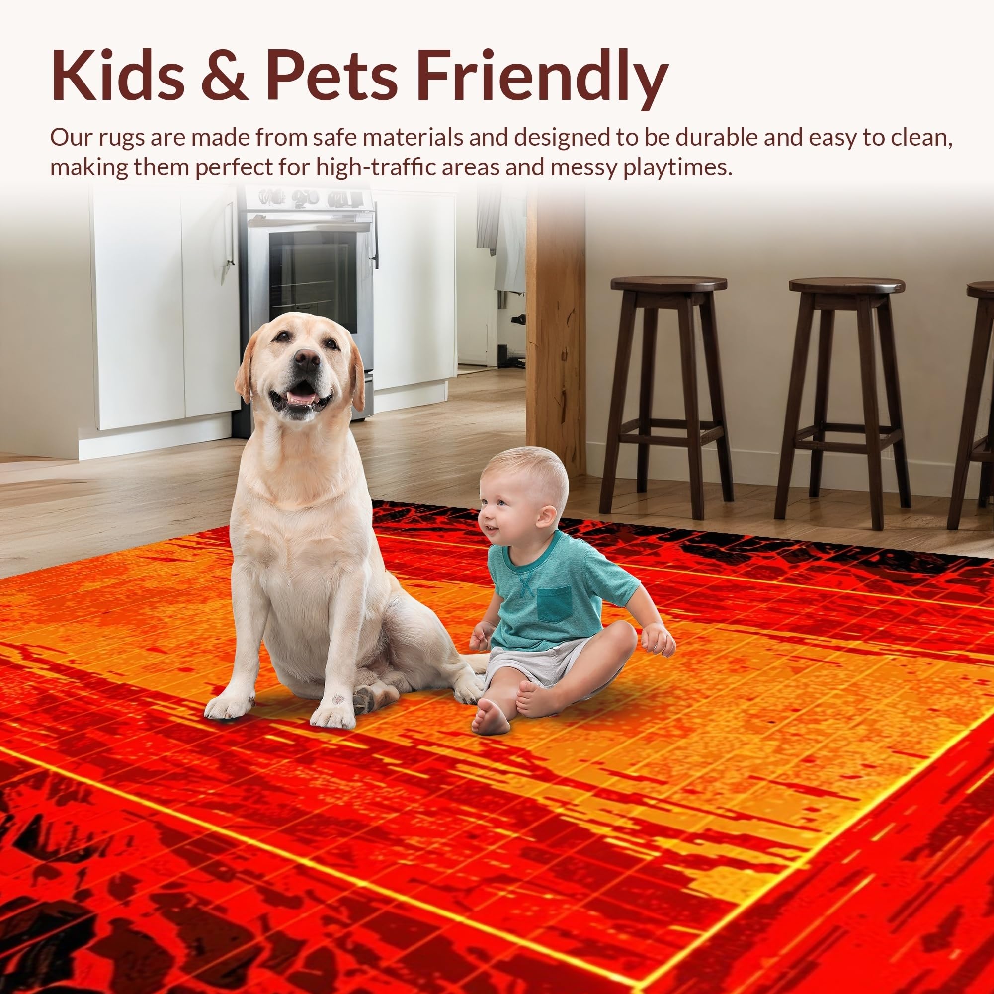 Ultra Soft Area Rug, Non Slip, Stain Resistant, Washable Area Rugs for Living Room, Bedroom, Lively Abstract Shapes Ensemble(Red) Overview: