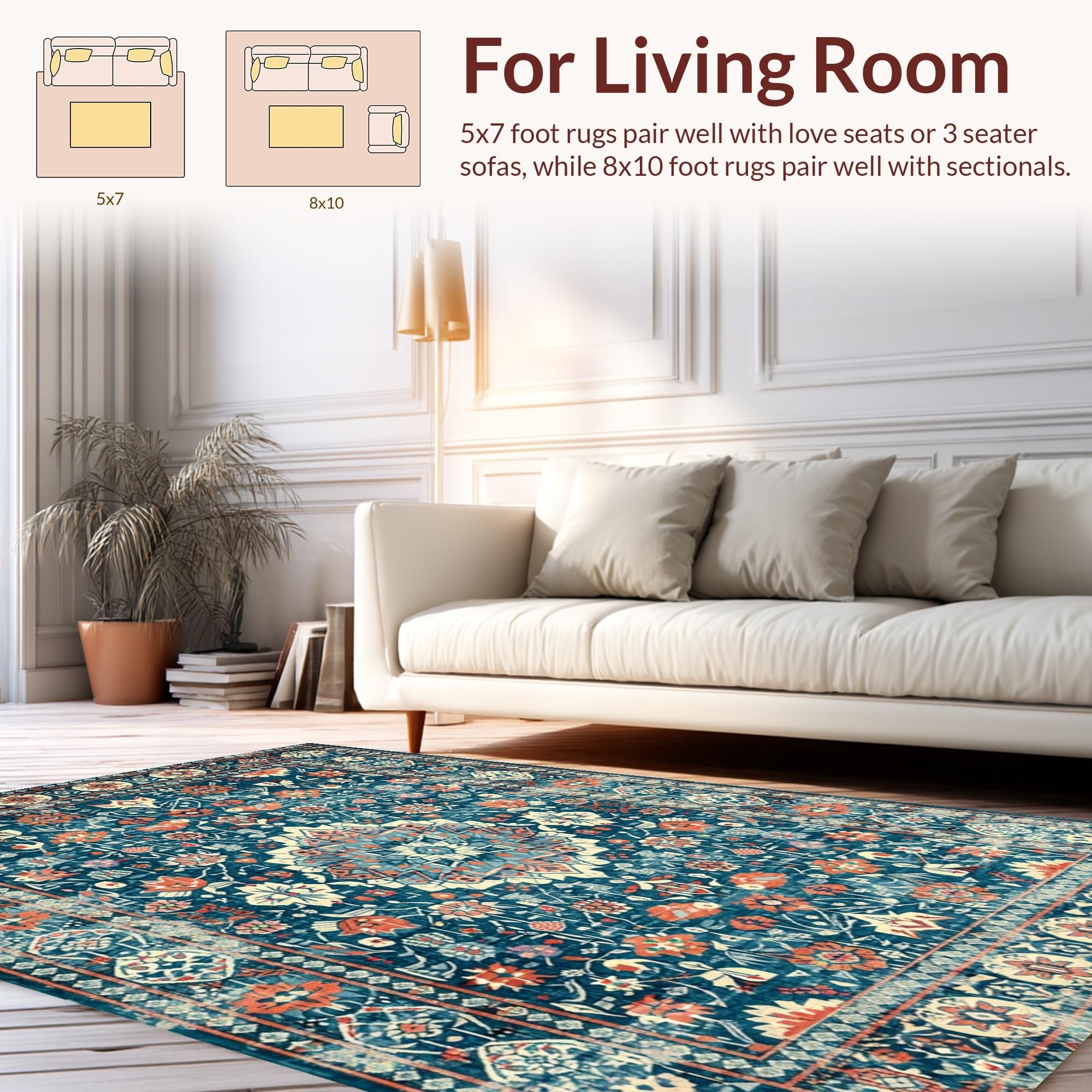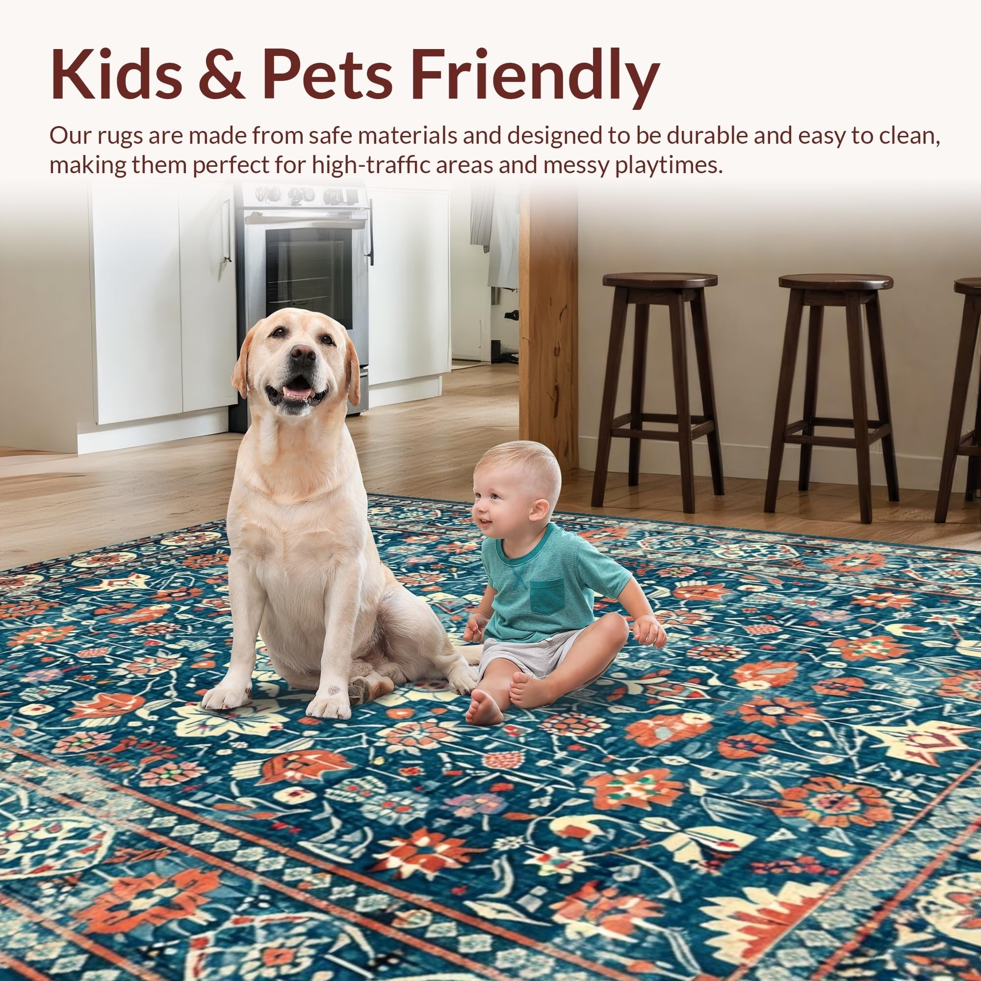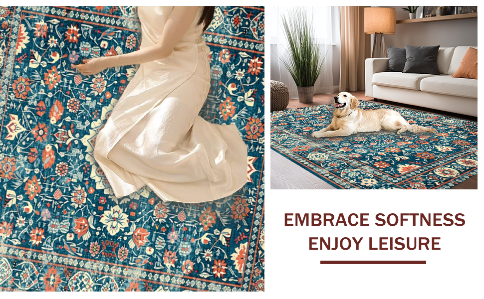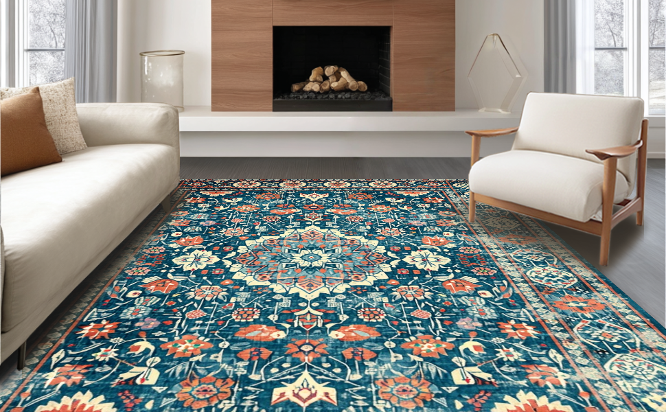 Ultra Soft Area Rug, Non Slip, Stain Resistant, Washable Area Rugs for Living Room, Bedroom, Lively Abstract Trellis Aesthetic(Blue) Overview: