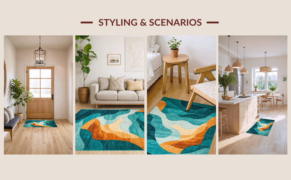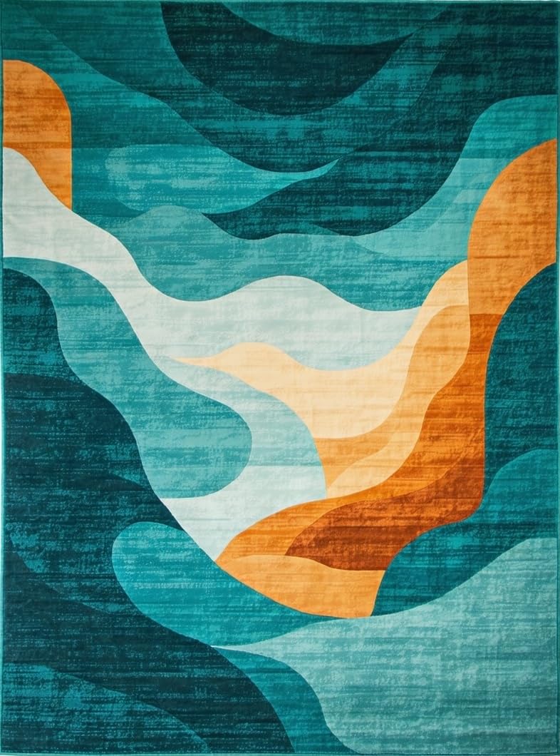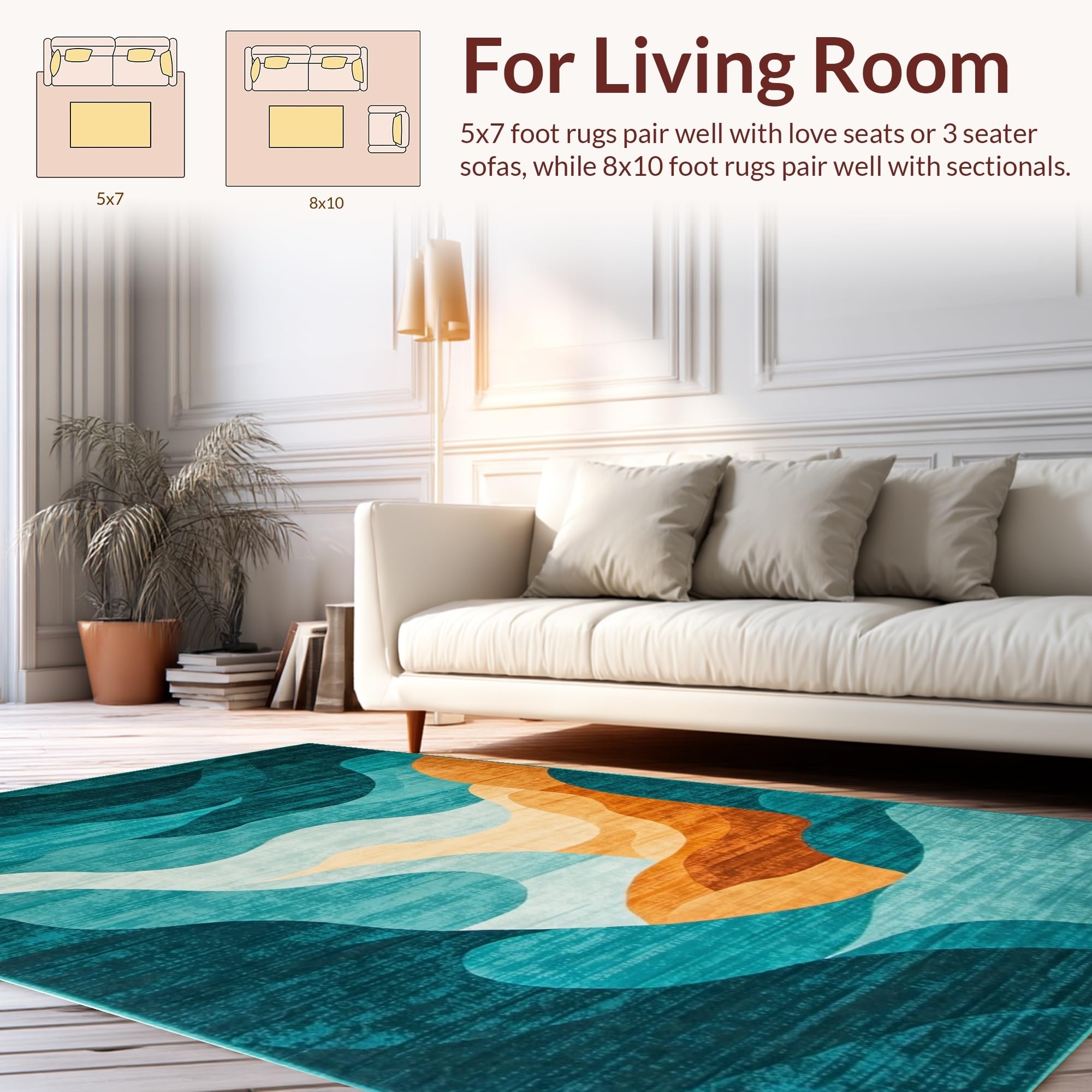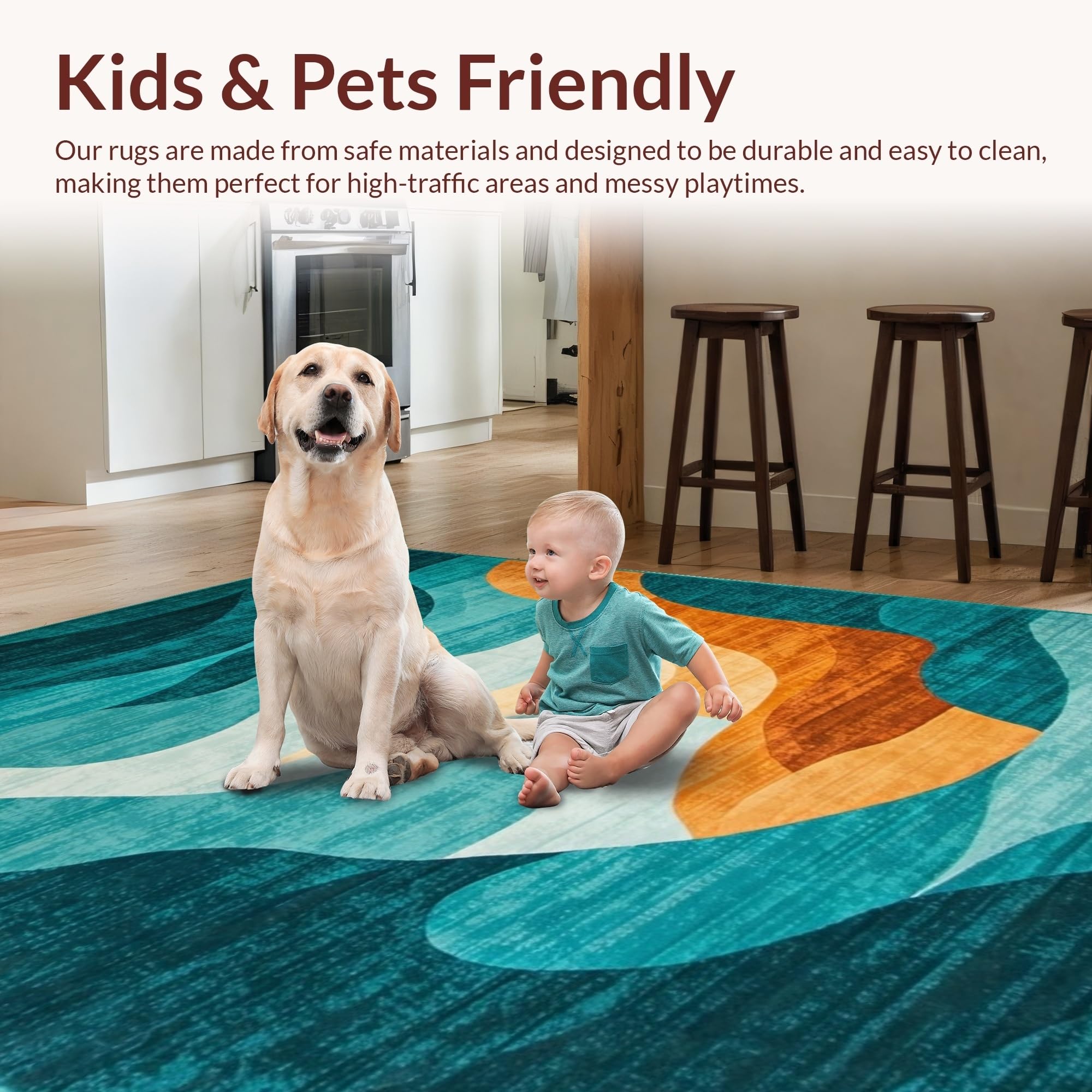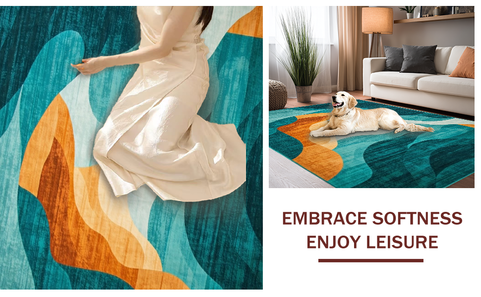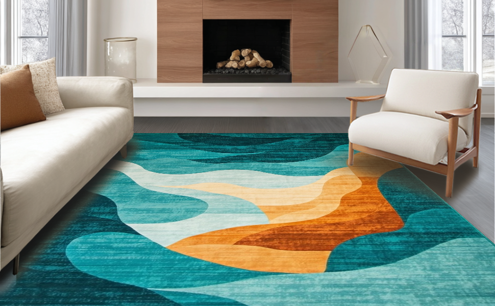 Ultra Soft Area Rug, Non Slip, Stain Resistant, Washable Area Rugs for Living Room, Bedroom, Lively Abstract Wave Composition(Blue) Overview: