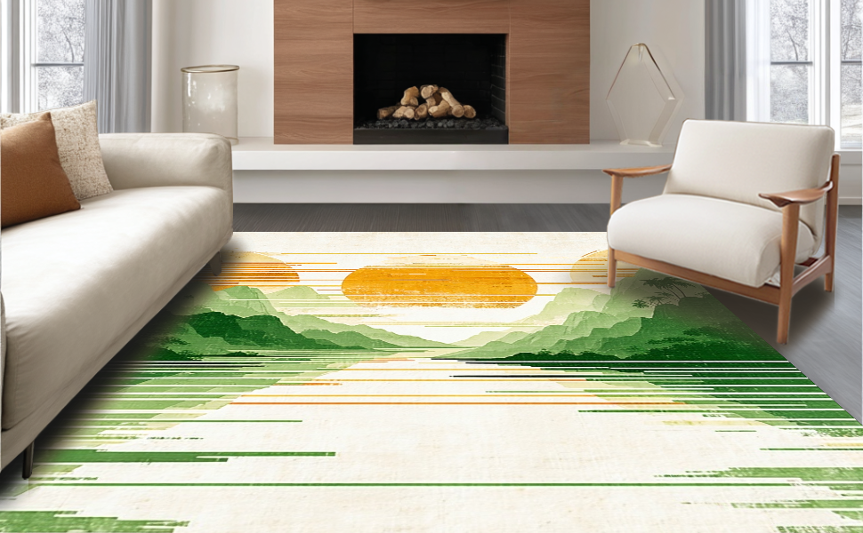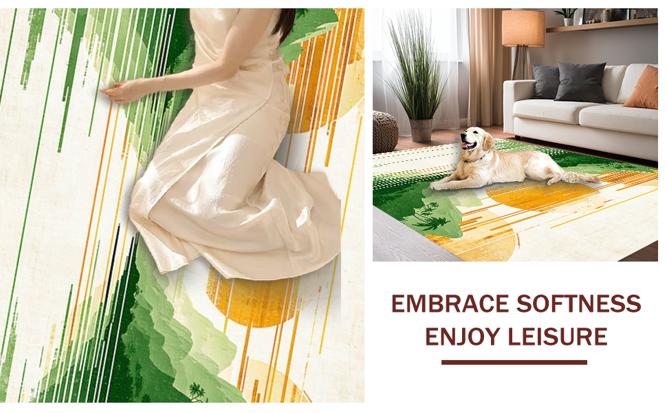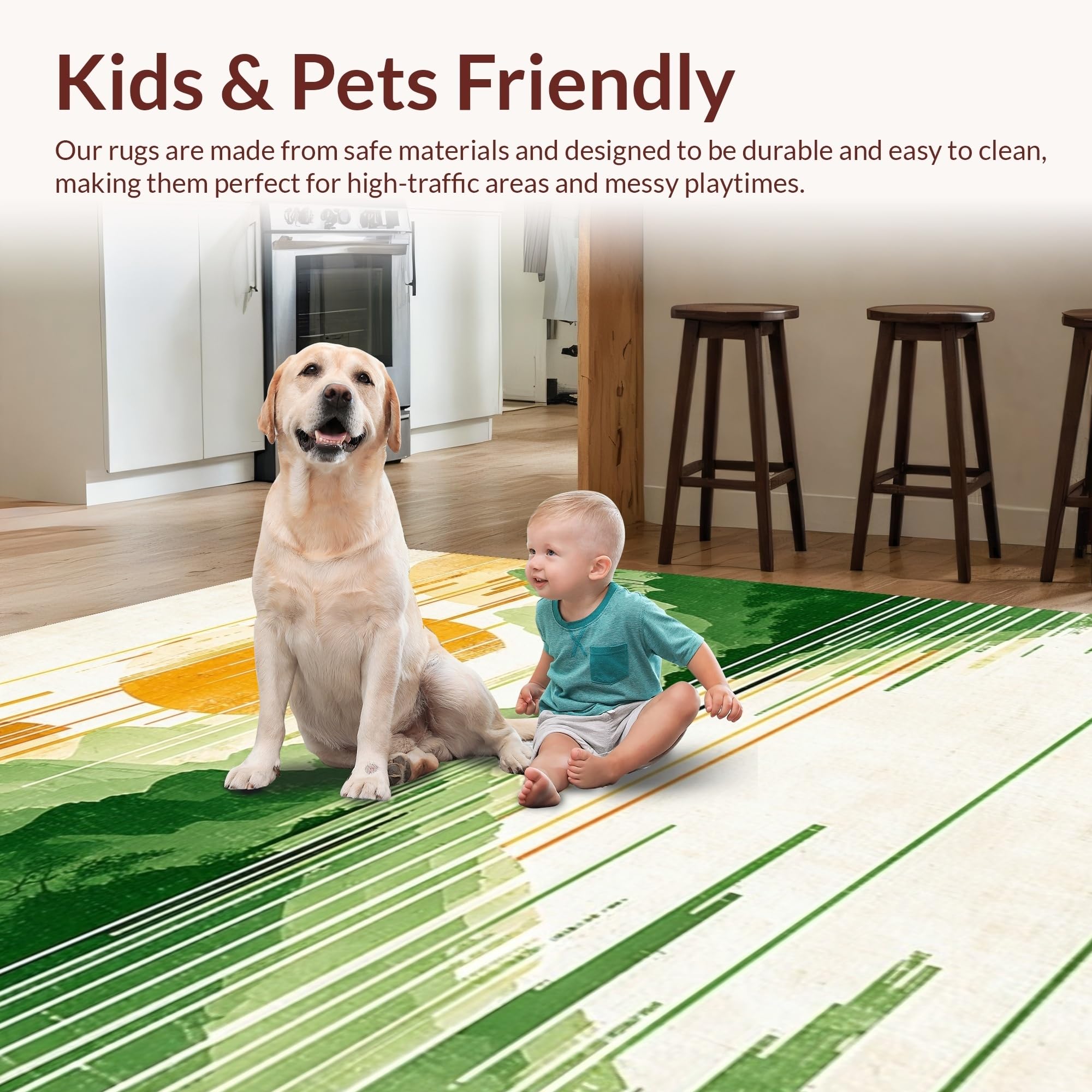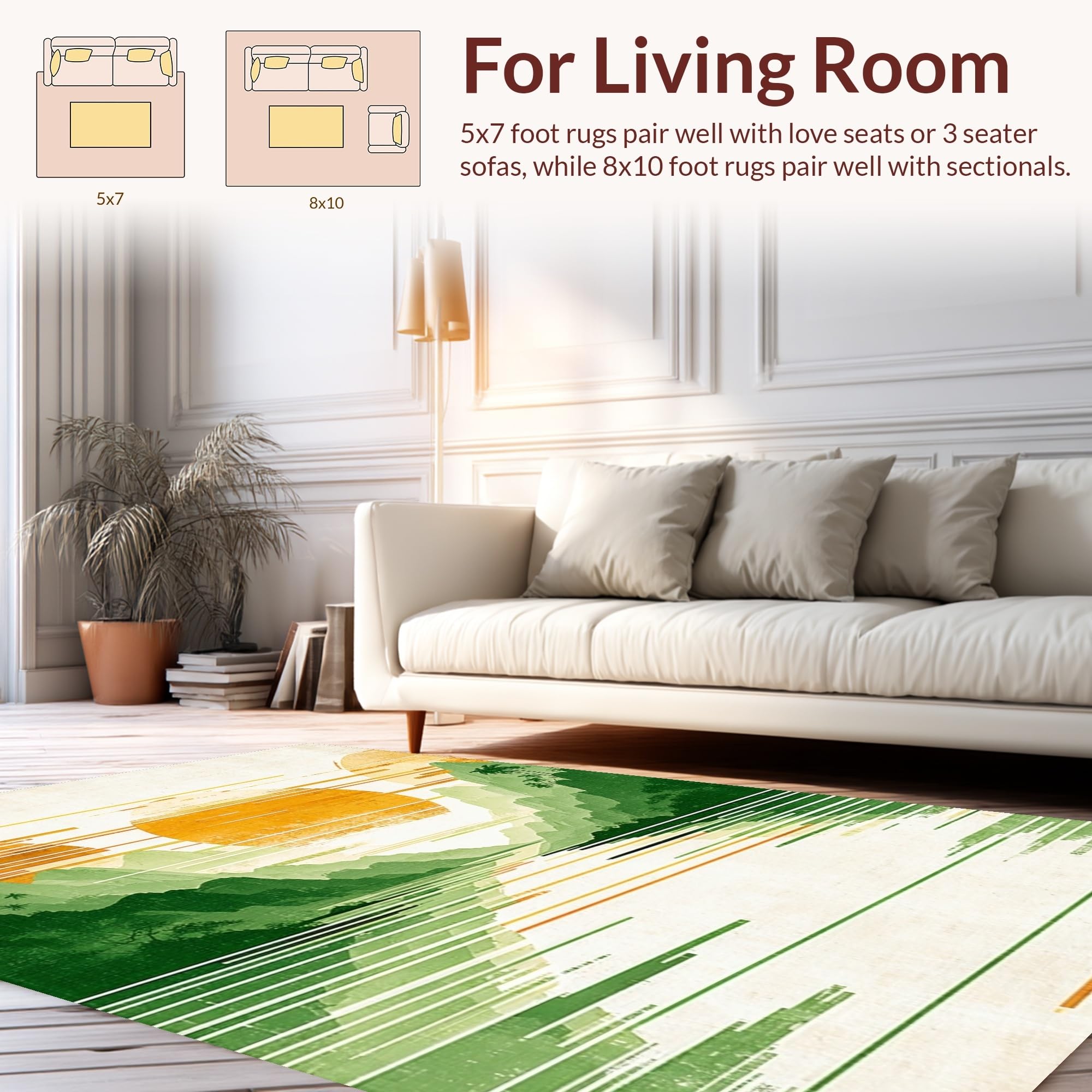 Ultra Soft Area Rug, Non Slip, Stain Resistant, Washable Area Rugs for Living Room, Bedroom, Lively Abstract Waveform Aesthetic(Green) Overview: