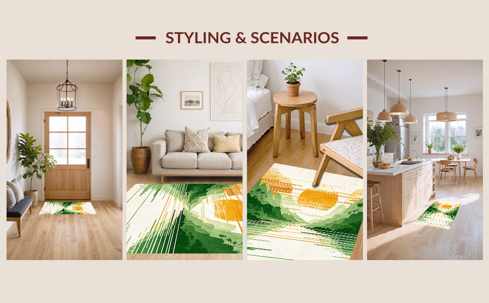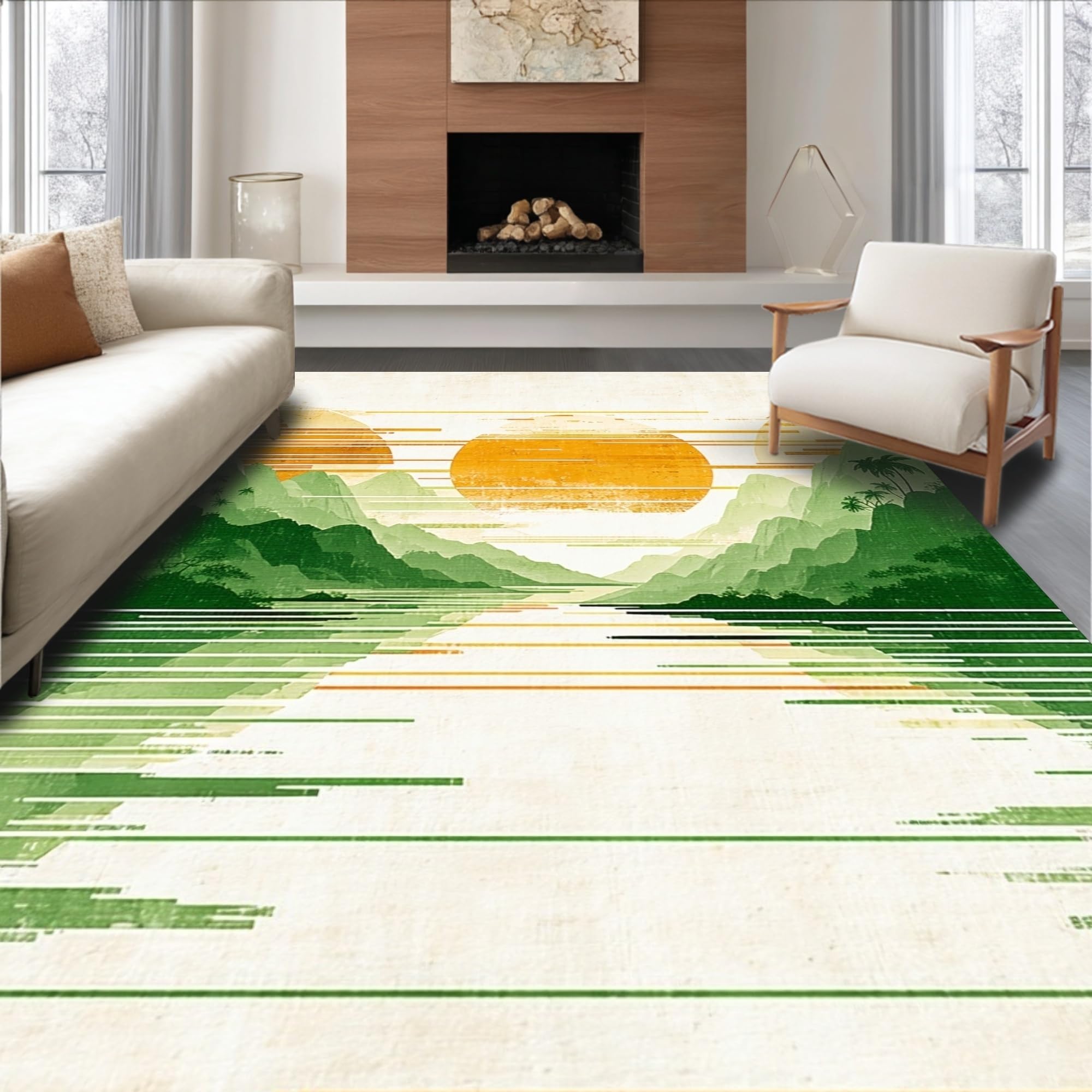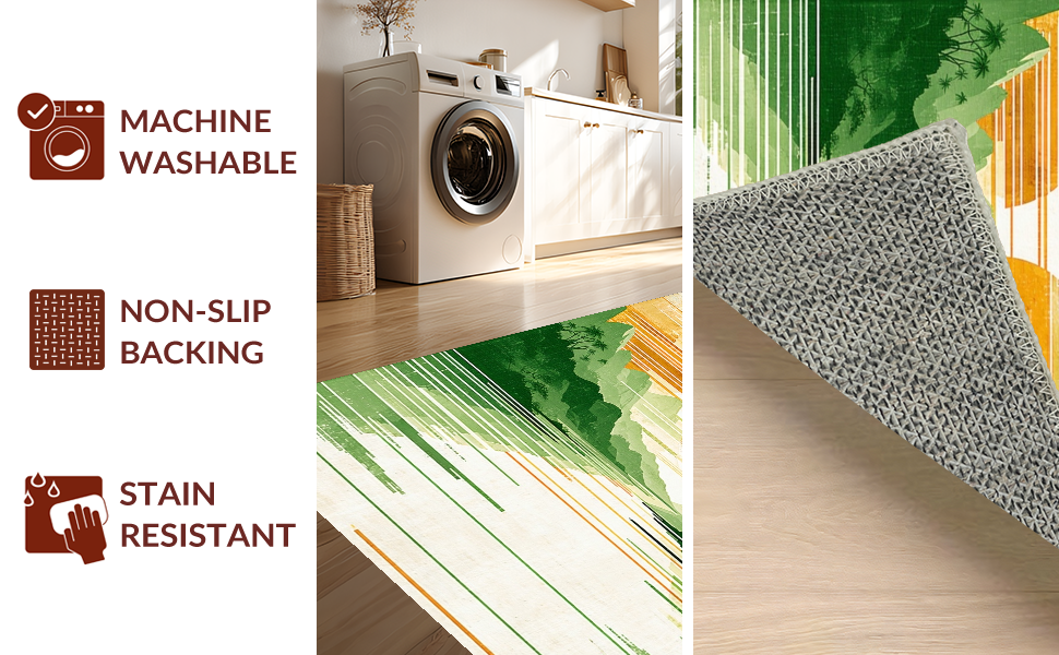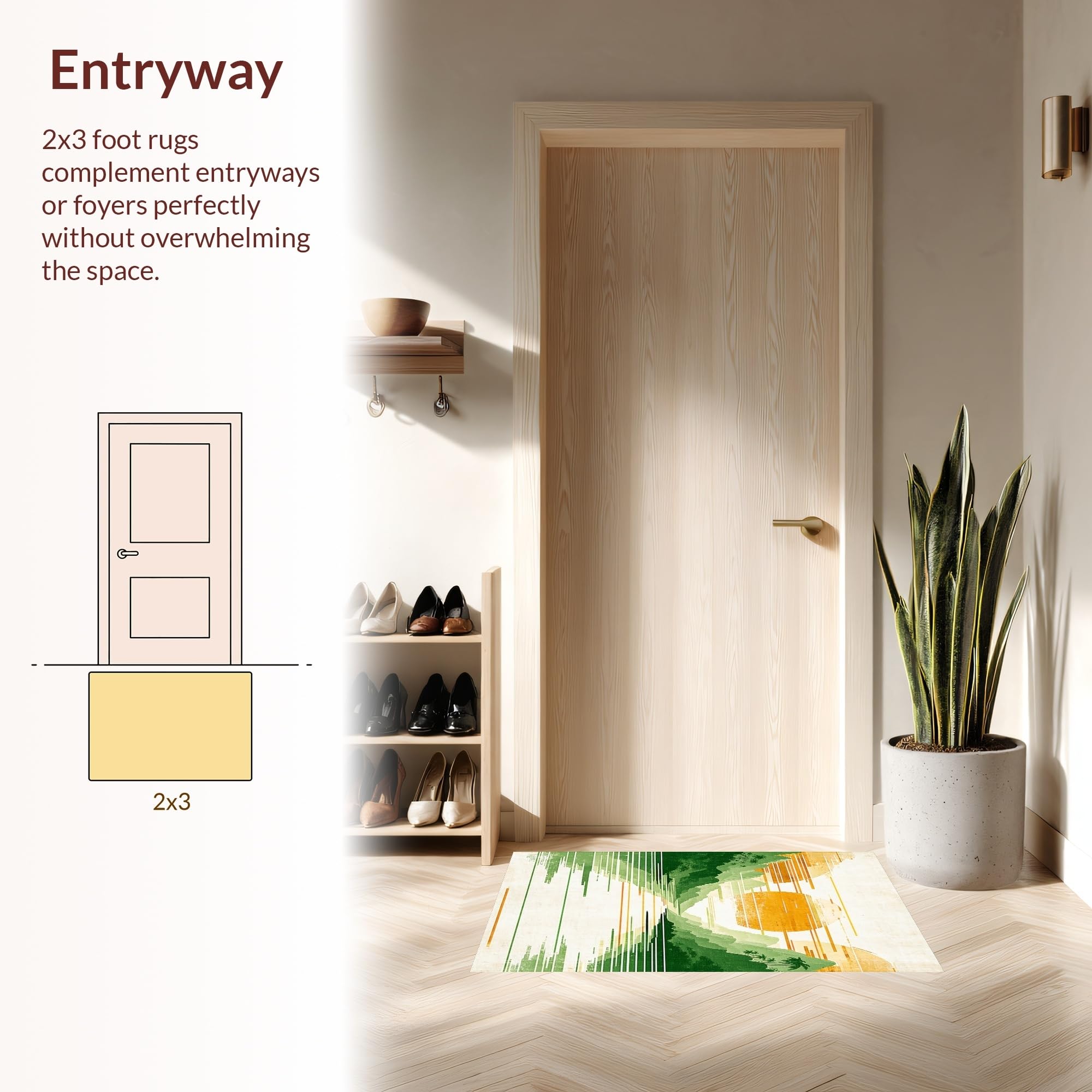 Ultra Soft Area Rug, Non Slip, Stain Resistant, Washable Area Rugs for Living Room, Bedroom, Lively Abstract Waveform Aesthetic(Green) Overview: