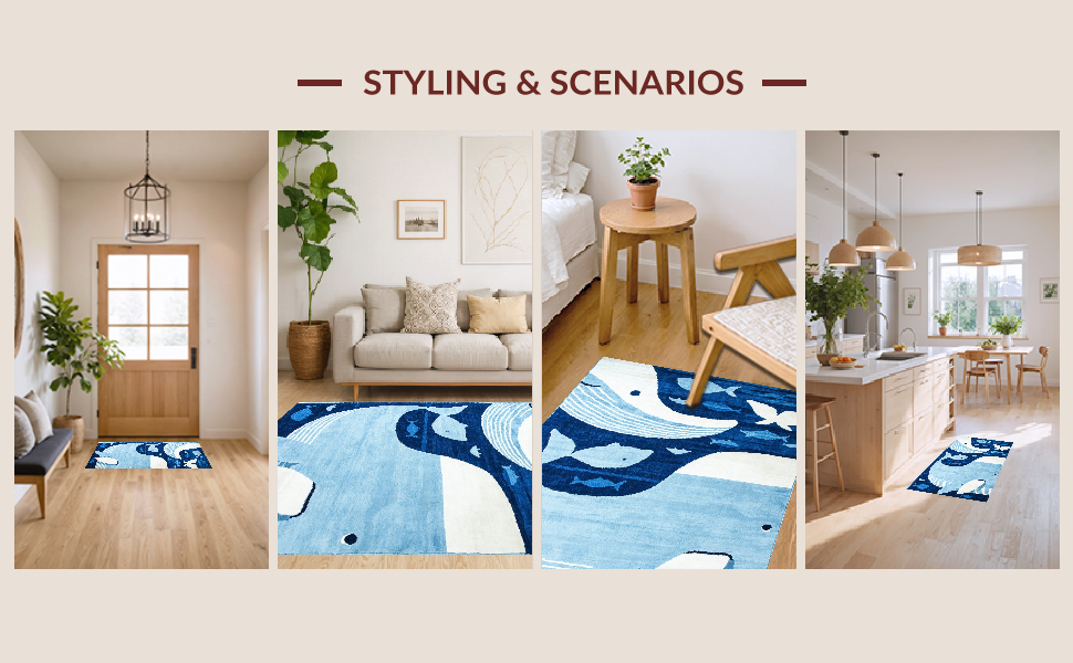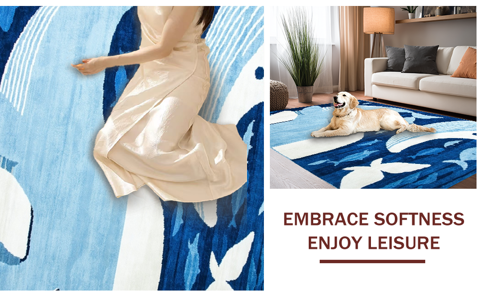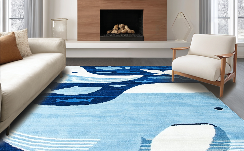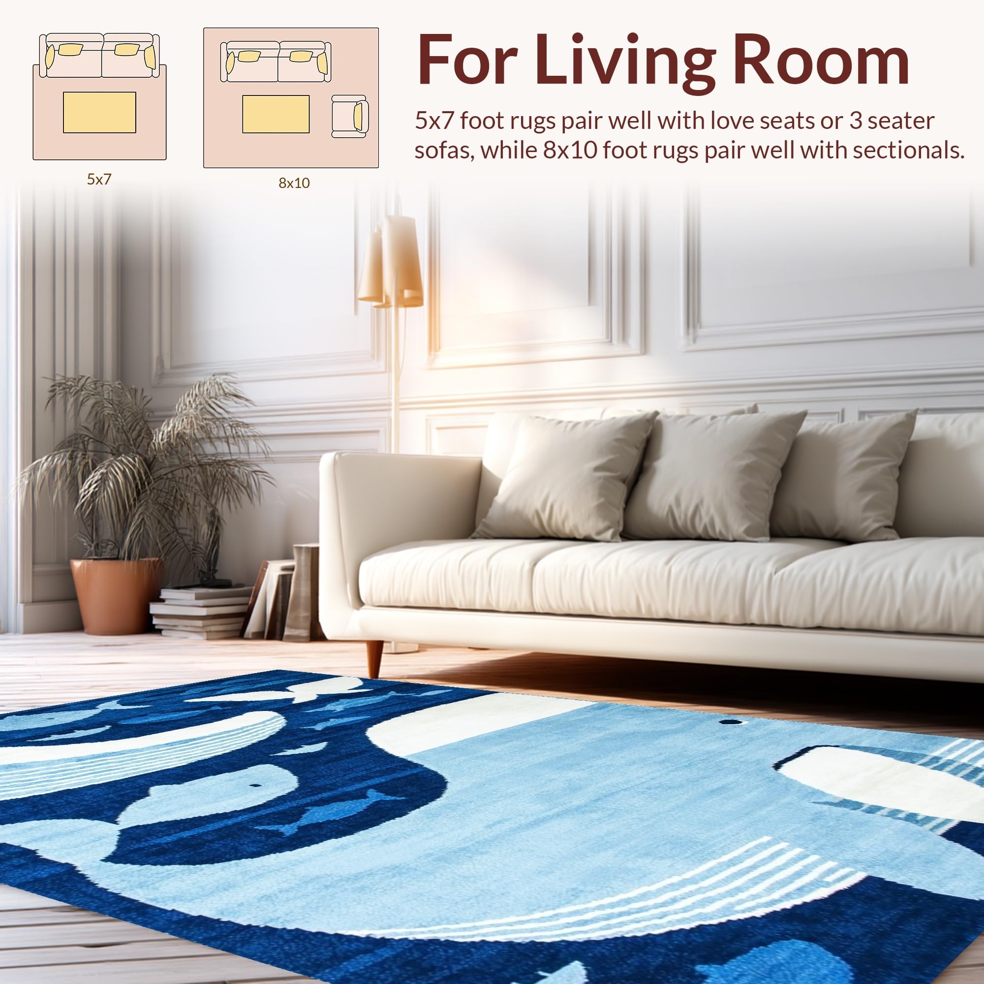 Ultra Soft Area Rug, Non Slip, Stain Resistant, Washable Area Rugs for Living Room, Bedroom, Lively Aqua Marine Decor(Blue) Overview: