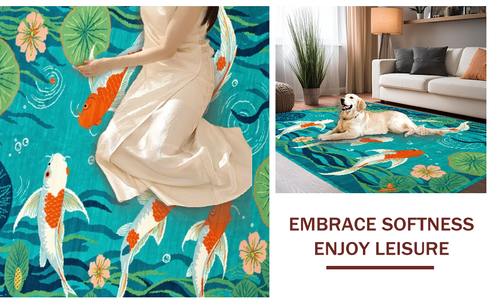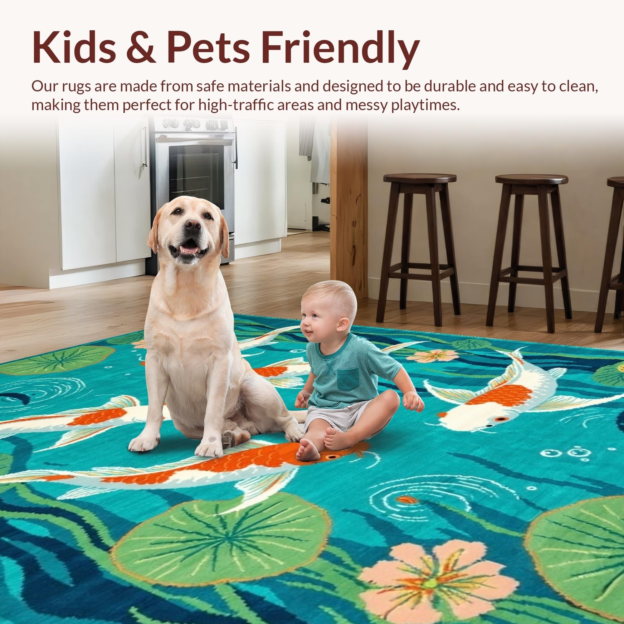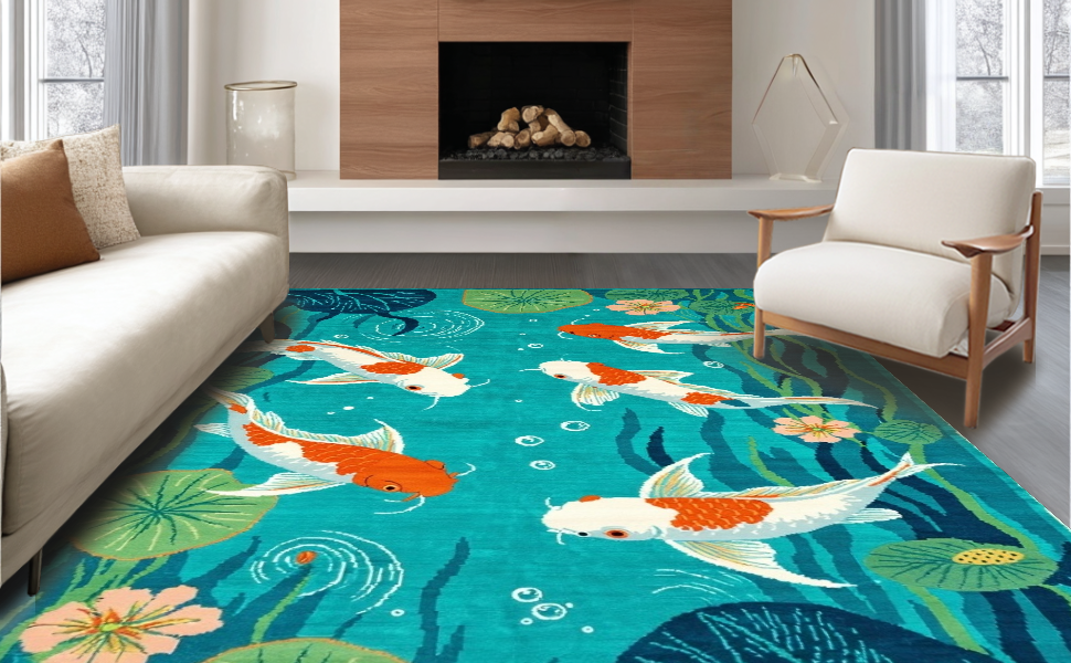 Ultra Soft Area Rug, Non Slip, Stain Resistant, Washable Area Rugs for Living Room, Bedroom, Lively Aqua-Toned Decorative Scene(Blue) Overview: