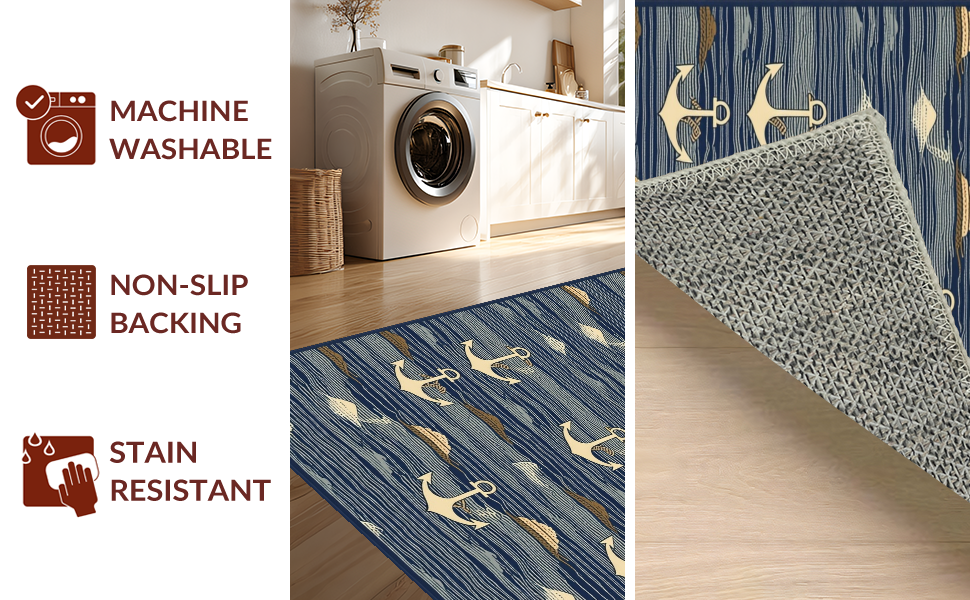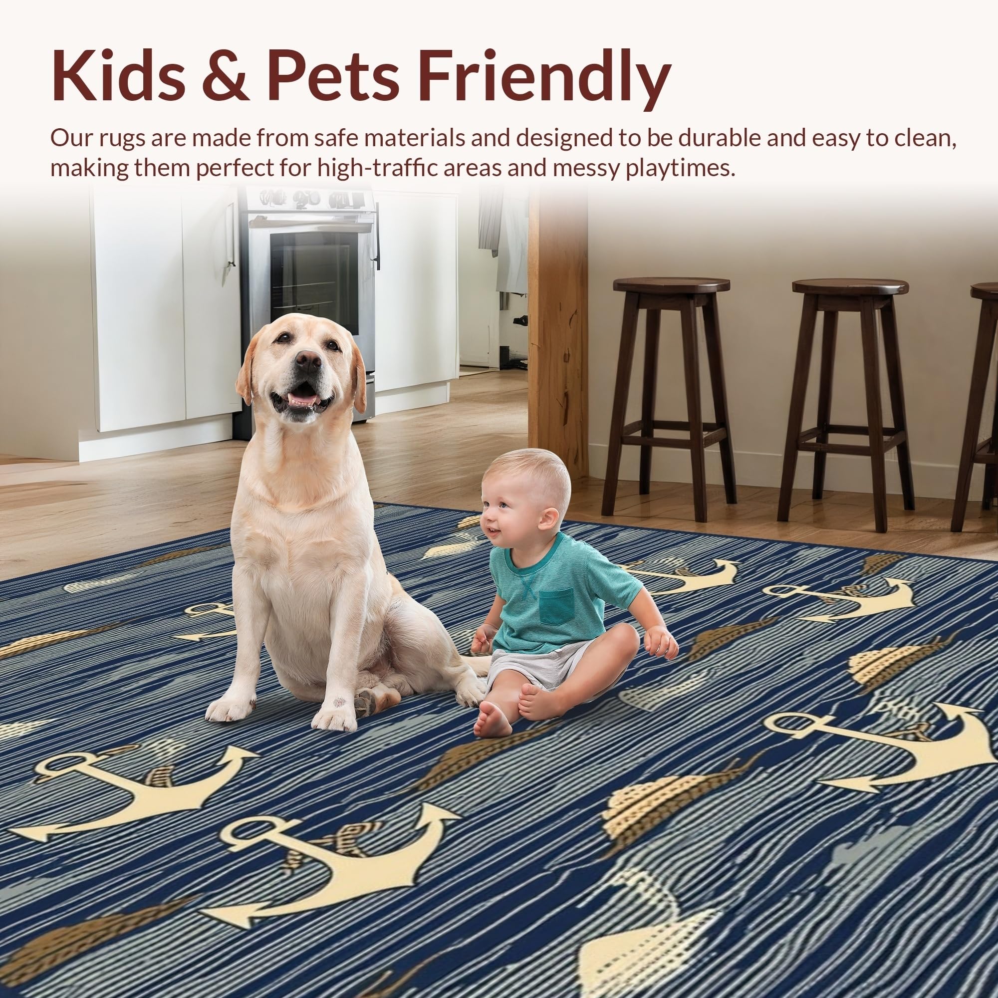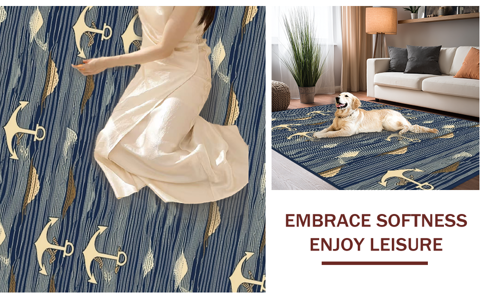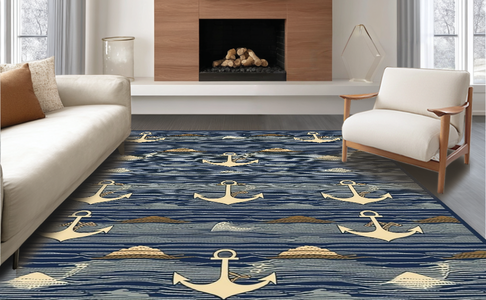 Ultra Soft Area Rug, Non Slip, Stain Resistant, Washable Area Rugs for Living Room, Bedroom, Lively Beach Vibe Decorative Welcome(Blue) Overview: