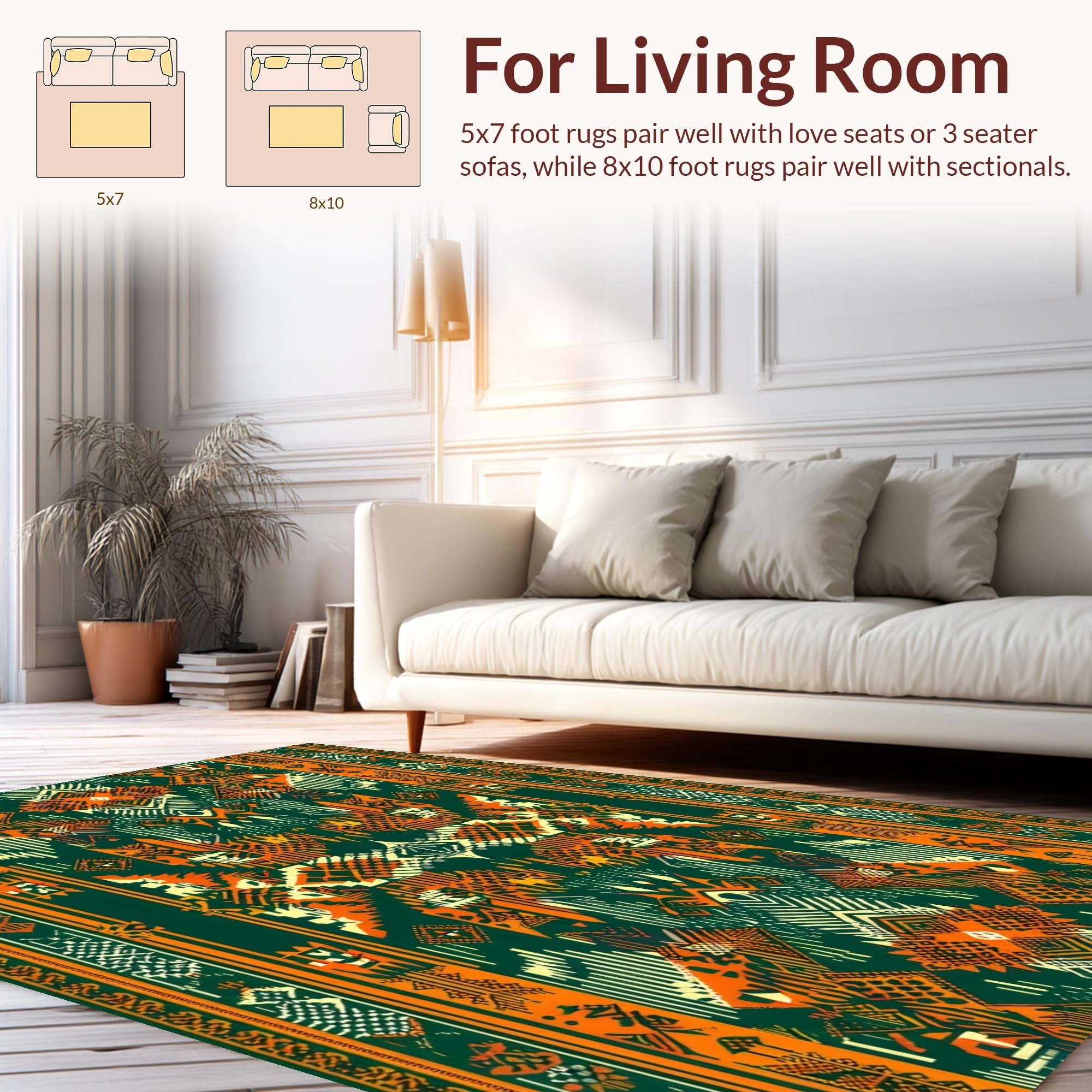 Ultra Soft Area Rug, Non Slip, Stain Resistant, Washable Area Rugs for Living Room, Bedroom, Lively Botanical Inspired Look(Green) Overview: