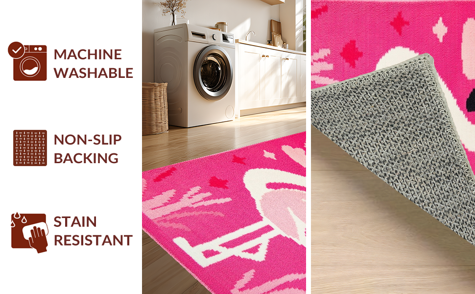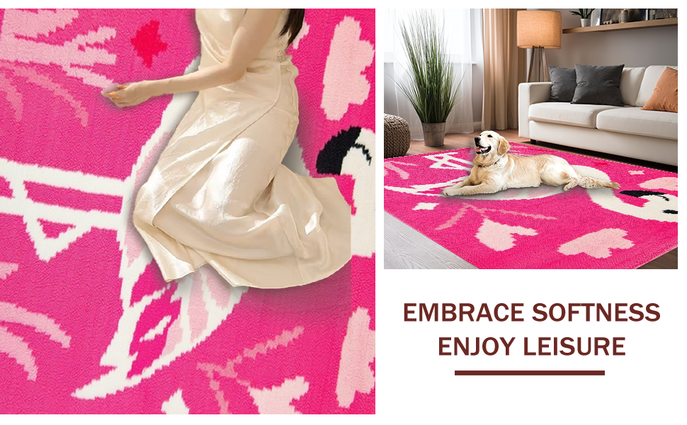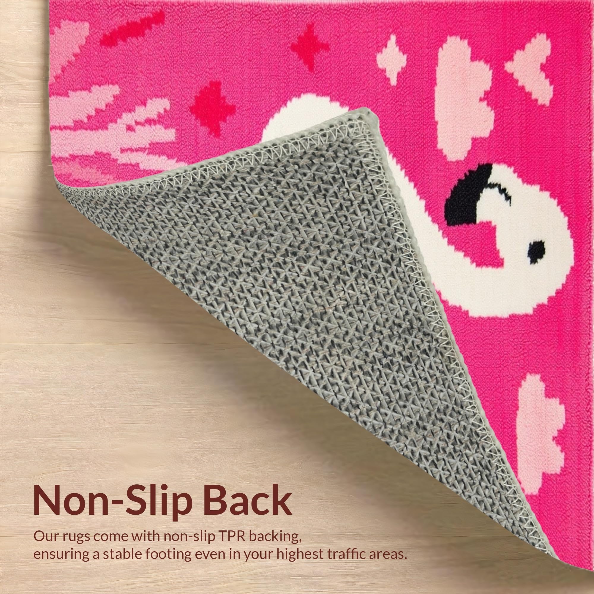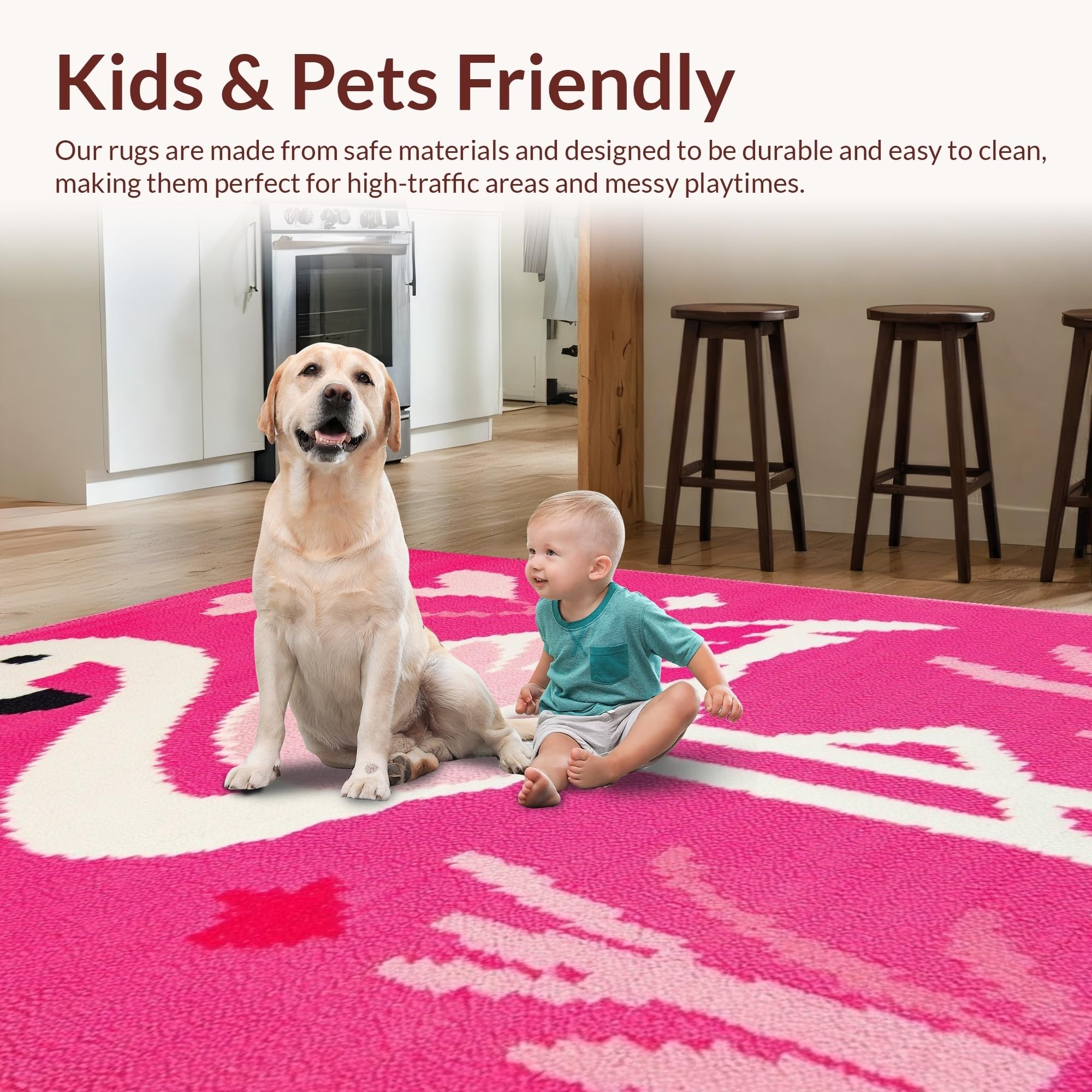 Ultra Soft Area Rug, Non Slip, Stain Resistant, Washable Area Rugs for Living Room, Bedroom, Lively Cartoon Flamingo Illustration(Pink) Overview: